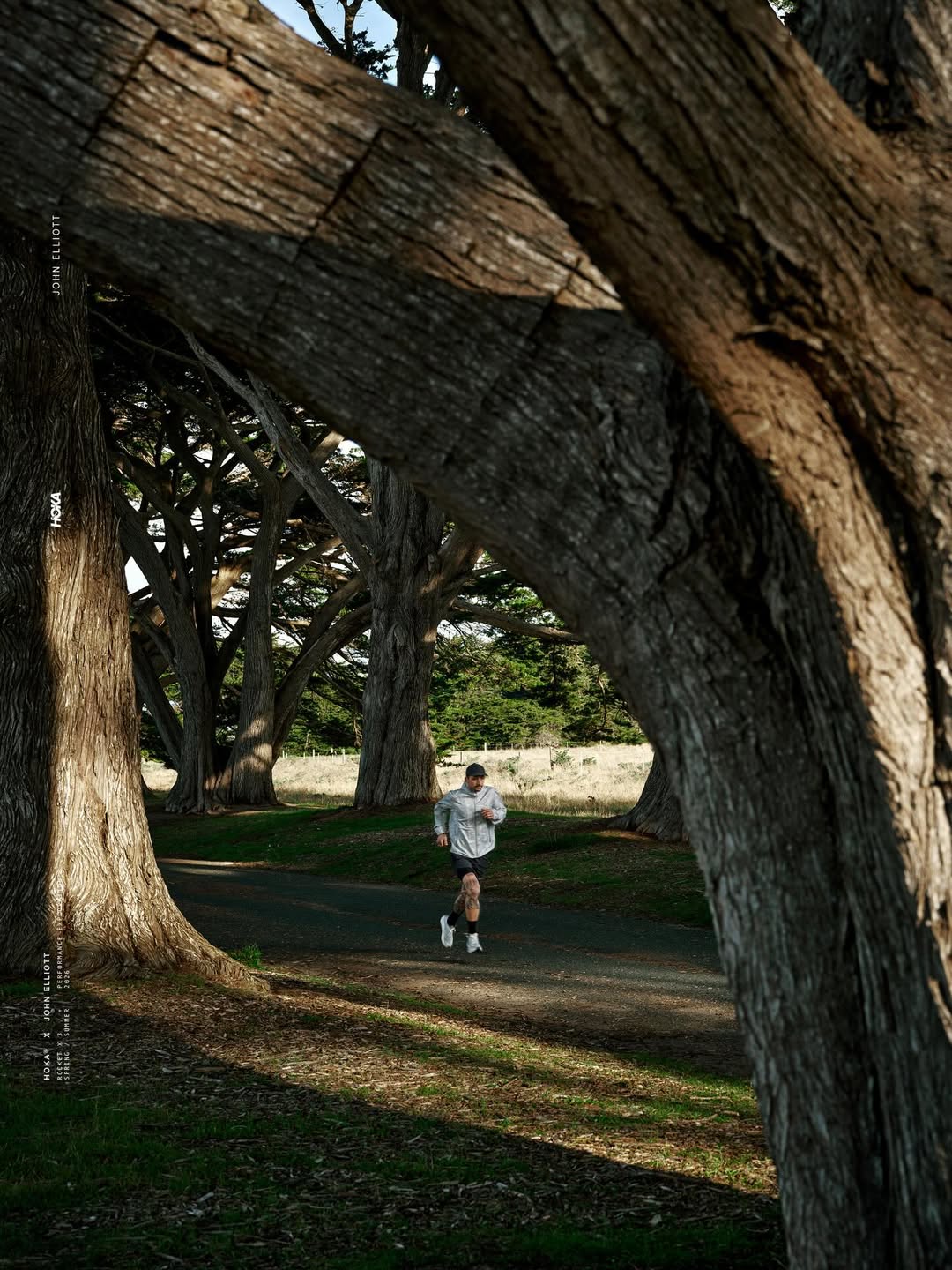 但相比 inline 的普通版本,这一联名显然要更加强调设计风格上的表达——灵感来自北加州湾区的海岸雾气和城市景观。John Elliott 剥离了专业跑鞋常见的繁复色彩,将低饱和度的配色方案和若隐若现的丛林迷彩纹理被融入鞋面视觉中,呈现出一种克制、静谧的极简气质。换句话说,如果你试图在运动的性能属性与日常穿搭的时尚之间找到平衡,那么这一双跑鞋值得留意。