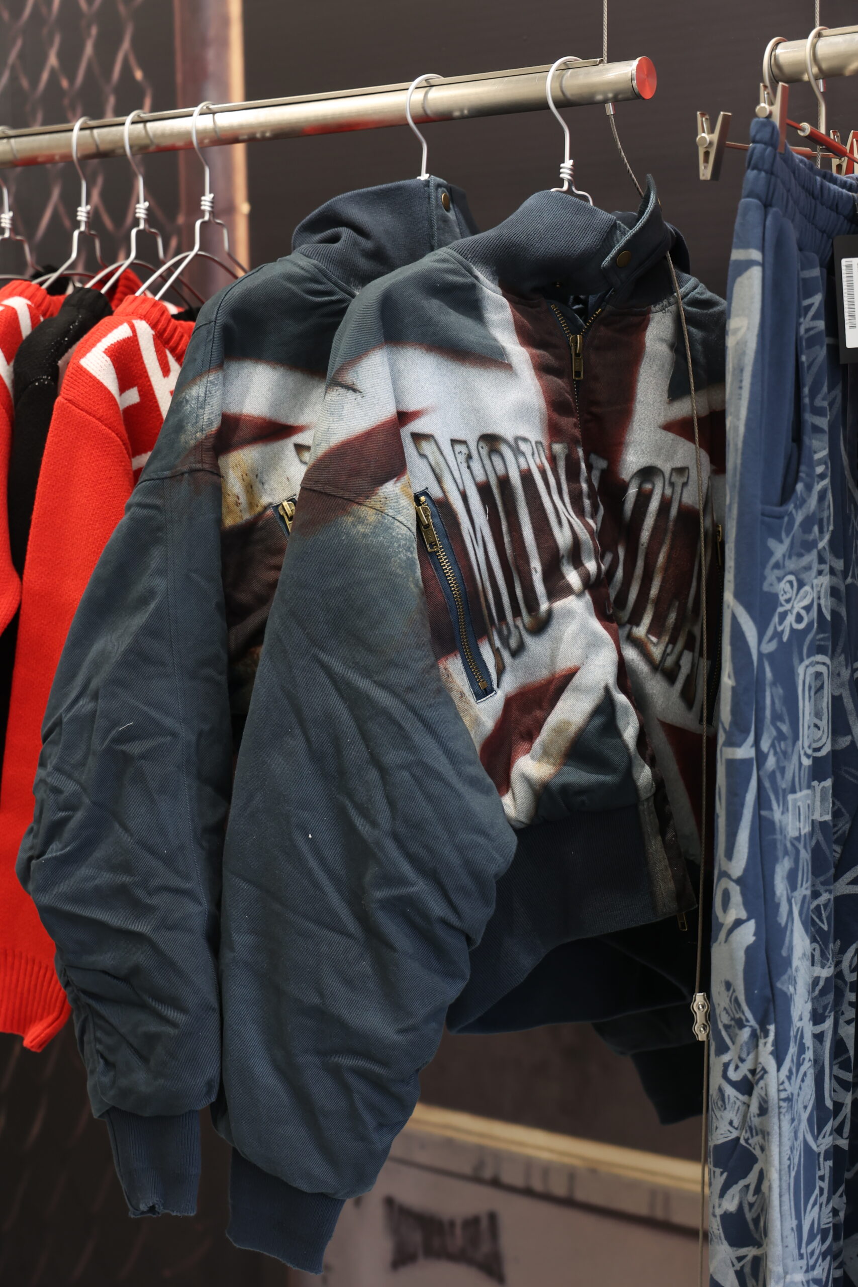 这季作品有两个灵感来源。第一,是我看了一部叫《Crash》的电影后的反应。第二,是我希望向真正喜欢我作品的不同群体表达一种关爱,几乎像一封写给他们的「情书」。所以系列中融入了不同国家的旗帜与图案。当时我的平面设计师 Freddie 做了那个图案,我看到后觉得很喜欢。我对中国有特殊的情感,每次来这里都能感受到满满的热情,也让我与不同城市和人建立了联系。