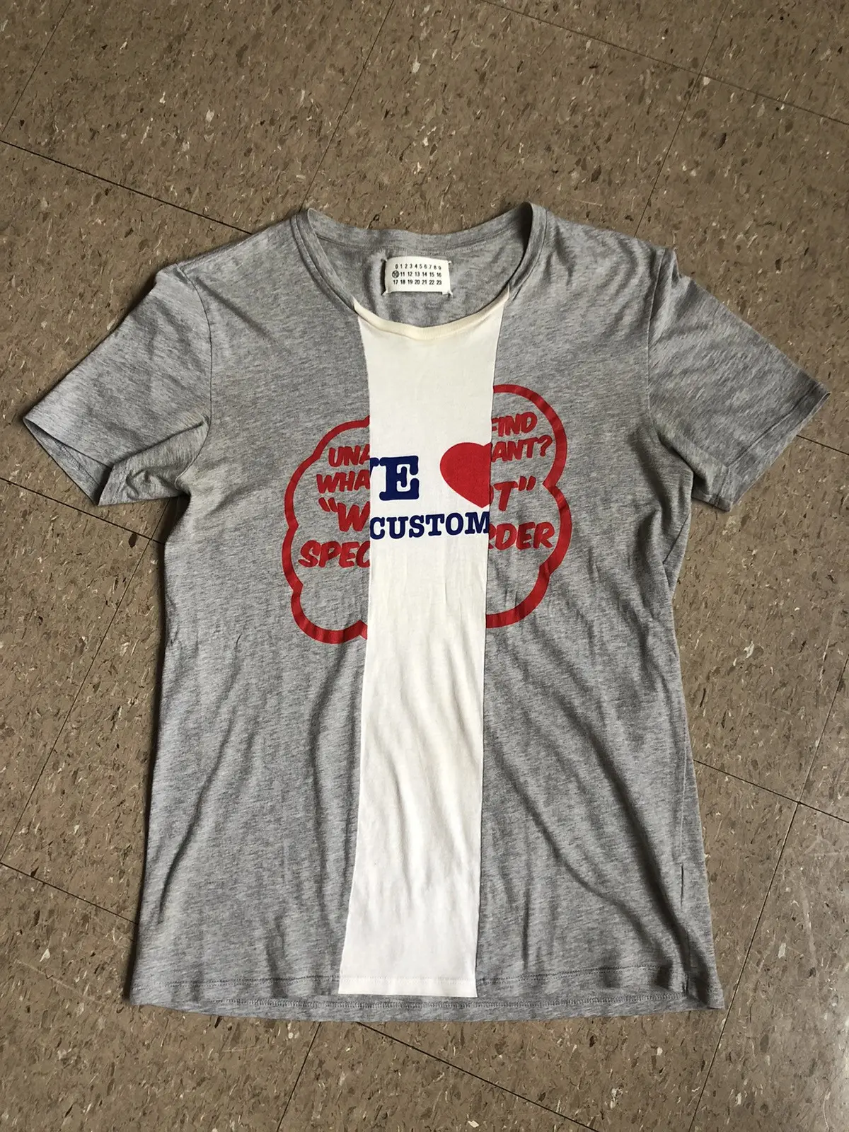 通常来说,在潮流领域这种「首次出现」的设计,很大程度成为了消费者入手的最大驱动力。而这次 T 恤的拼接设计,则似乎致敬了 Maison Margiela 早期的手工拼接短袖。