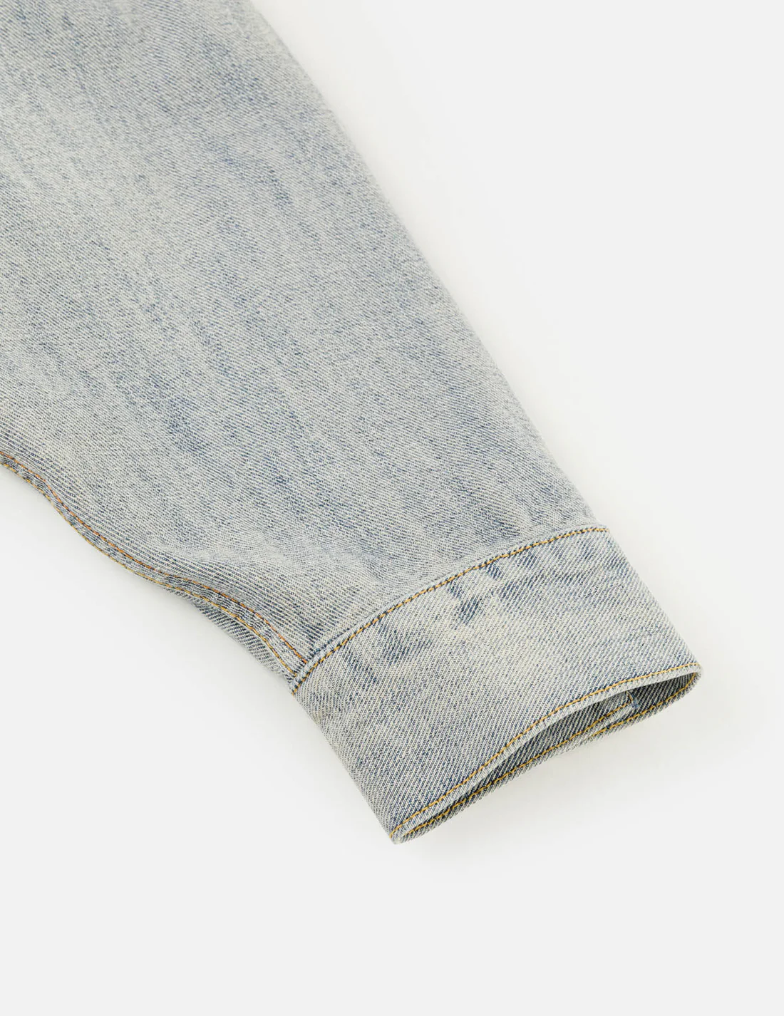 此次联名中还有一款值得注意的是具有解构意味的 Reverse 丹宁系列,采用靛蓝色的牛仔布反面,通过反面缝合工艺,于袖子接缝处露出的别致赤耳,也是用赤耳演变的樱花色布边。