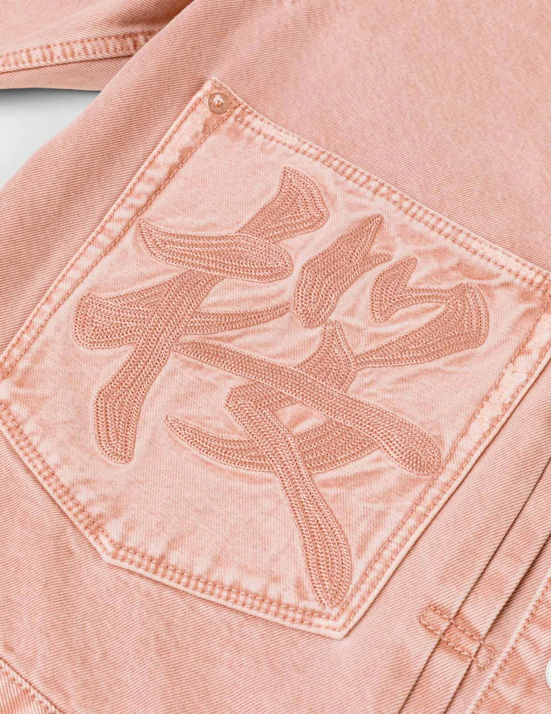 在本次联名系列中,视觉焦点无疑集中在那件粉红色的丹宁单品上,它不仅是一件反映季节性的商品,更是双方设计团队在传统与现代、东方与西方审美之间寻找平衡点的实证。