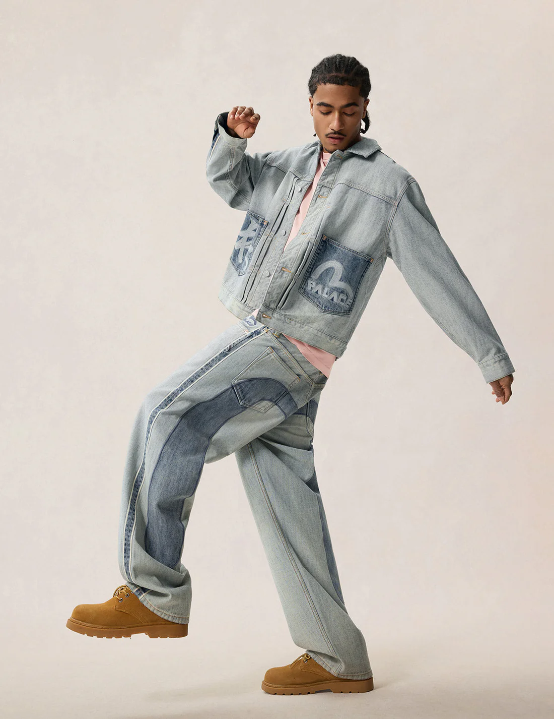 在与 PALACE 联合创始人 Gareth Skewis 和 EVISU 设计团队的交流中,他们向我们透露这种持续不断的生命力和创造力源于一种跨越地理边界的「文化共振」,将 PALACE 源自伦敦地下的幽默感与亚文化视觉,精准地植入到以东方丹宁工艺著称的 EVISU 语境中,完成了一次又一次的文化重组。