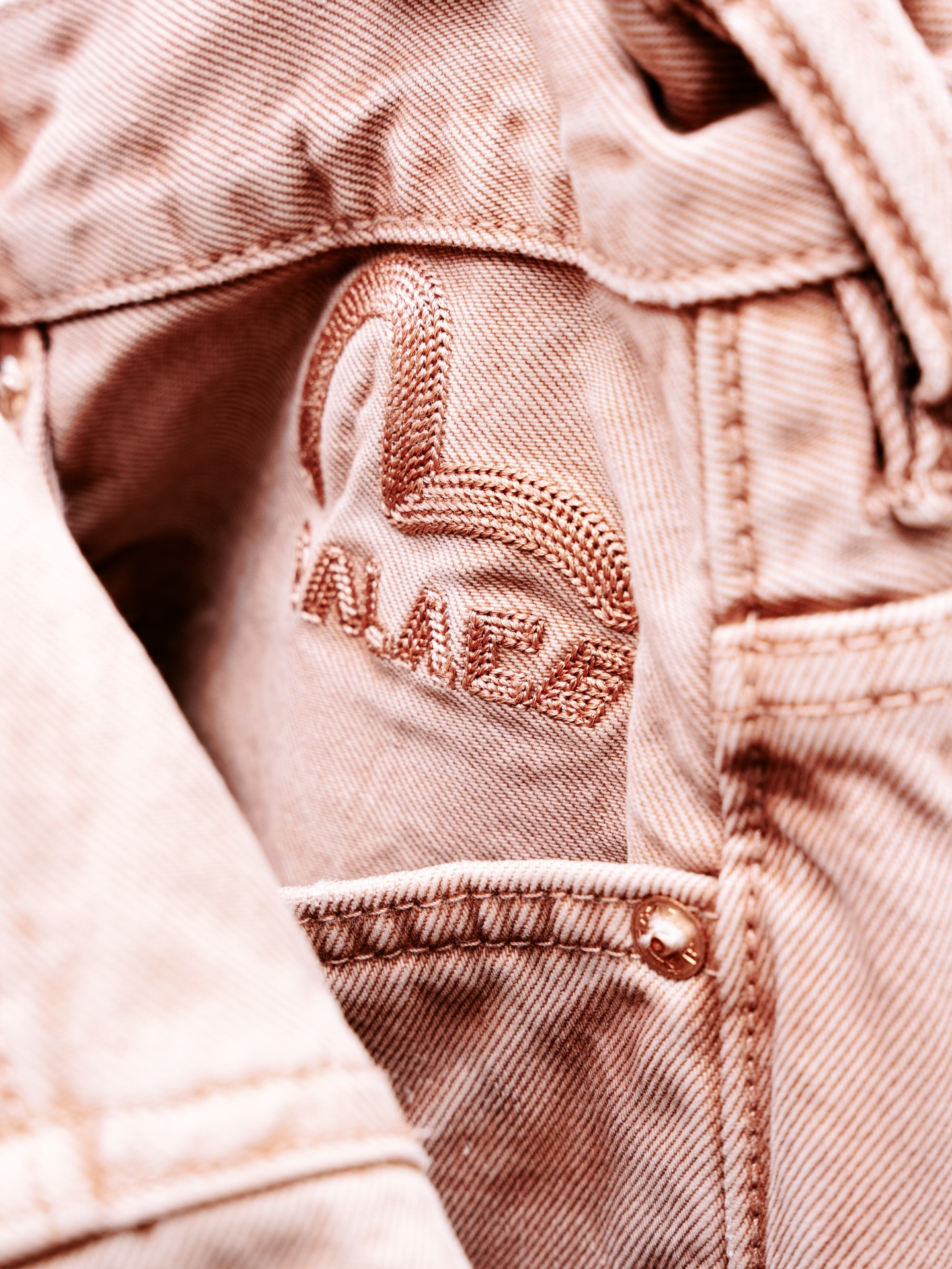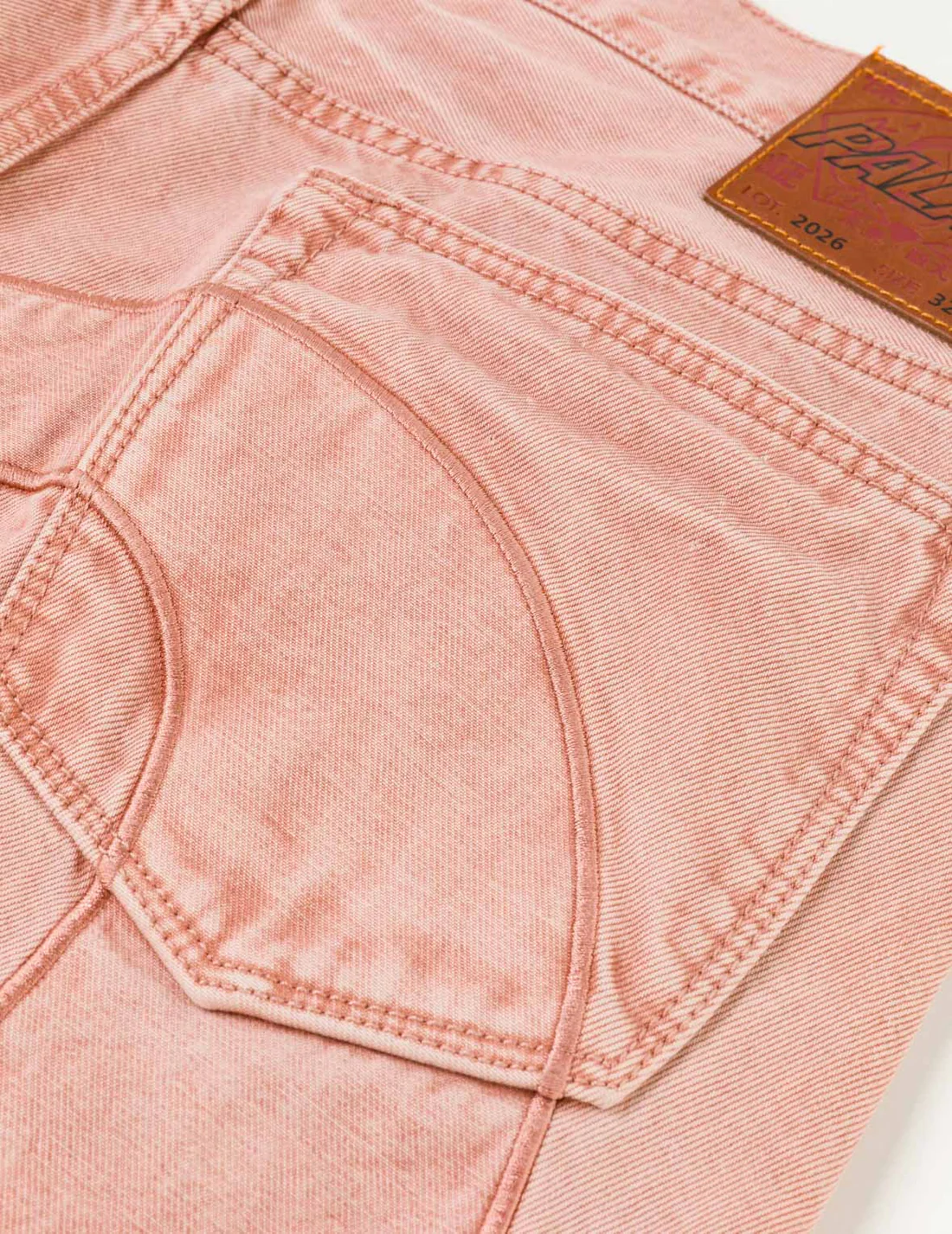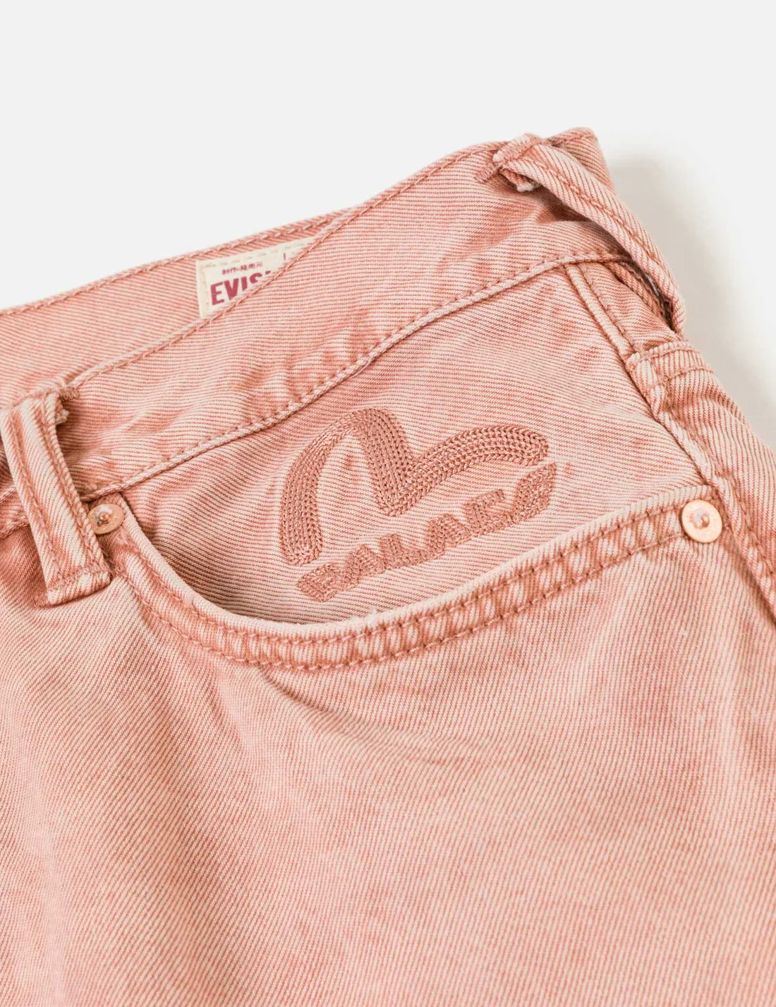 在丹宁这种粗犷、硬朗的面料上呈现出娇嫩的樱花粉色调(或称小桃色),在工艺上是一次不小的挑战。EVISU 设计师们回忆道,在打样阶段,第二个样品的色准曾一度远远偏离预期效果。