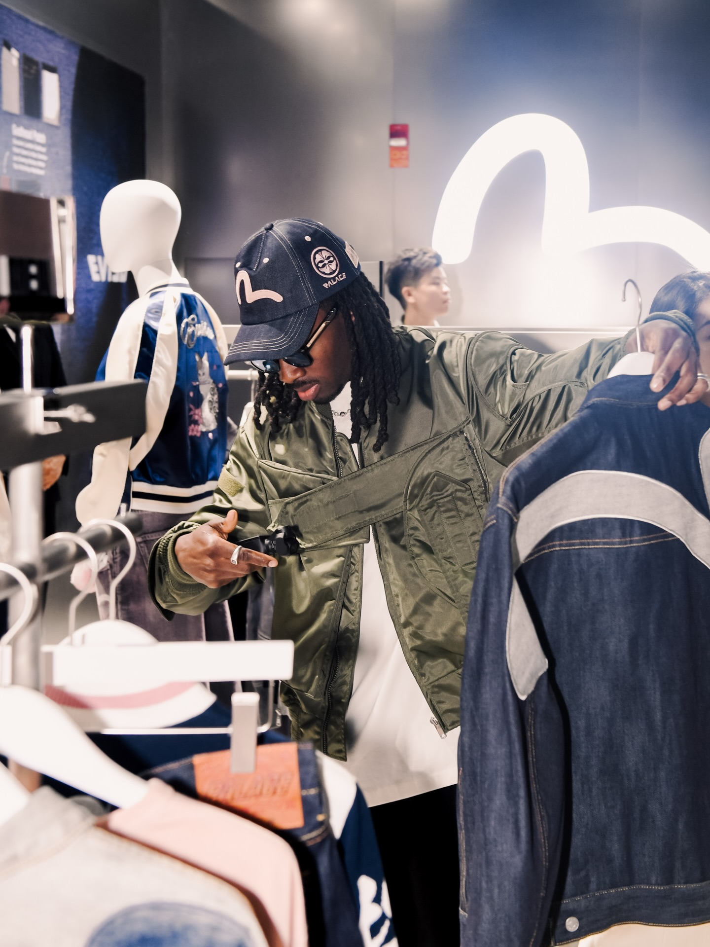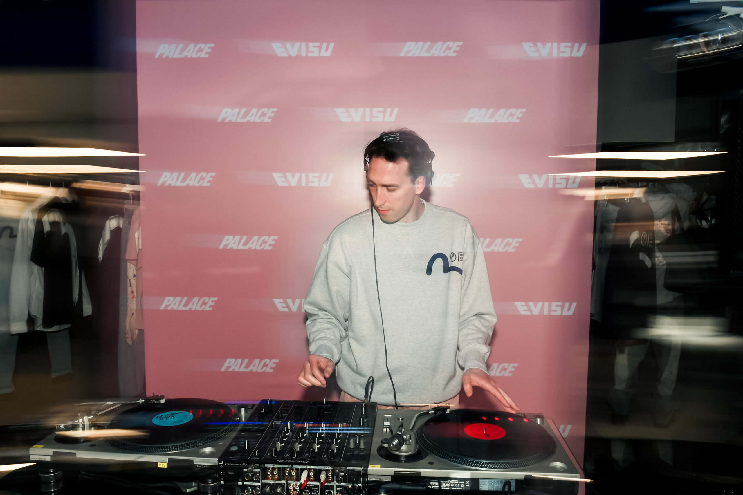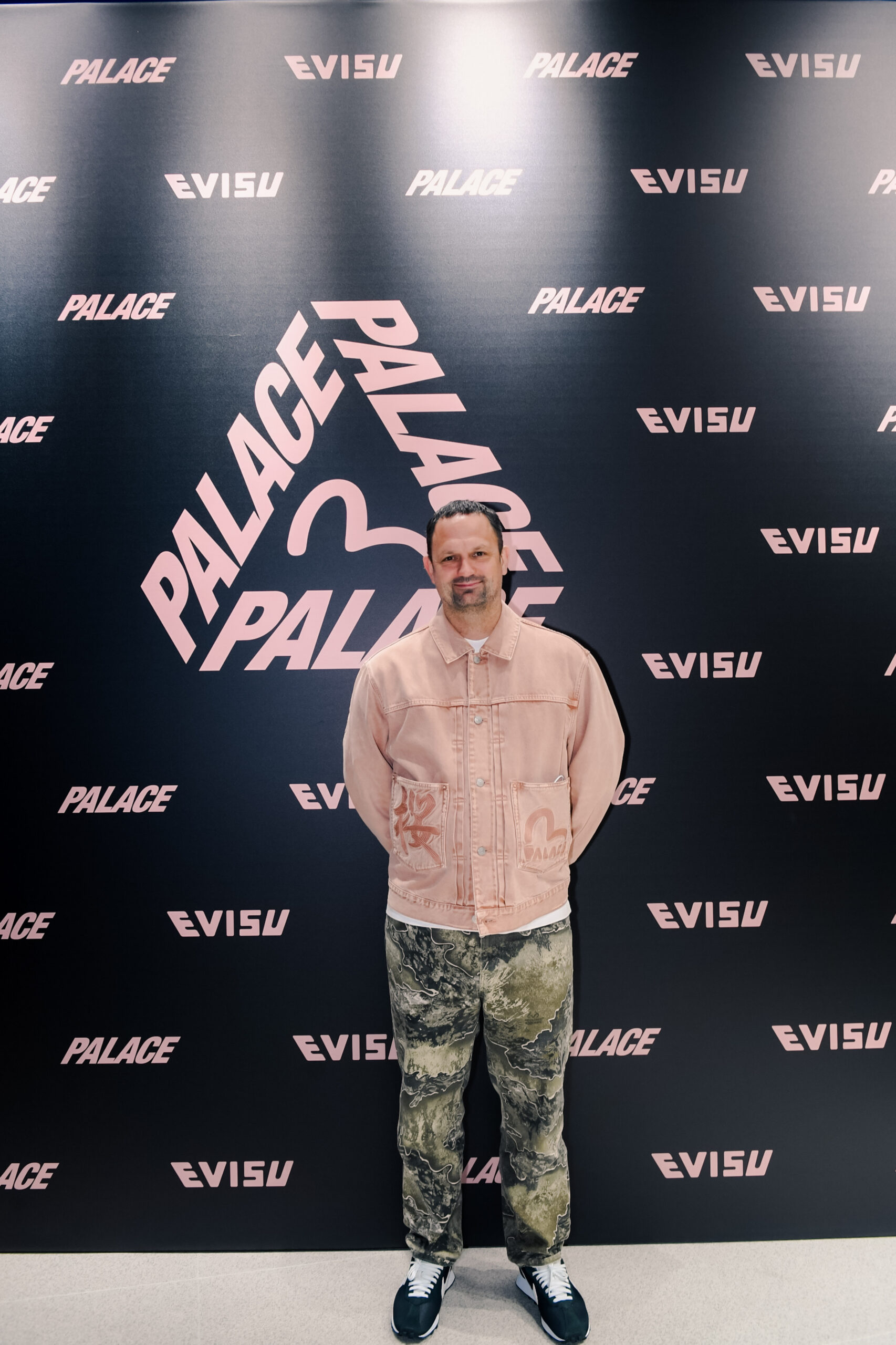 PALACE 联合创始人 Gareth Skewis 在与 EVISU 的联名预览活动上 | Via EVISU