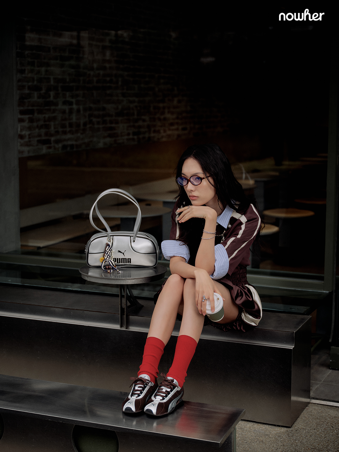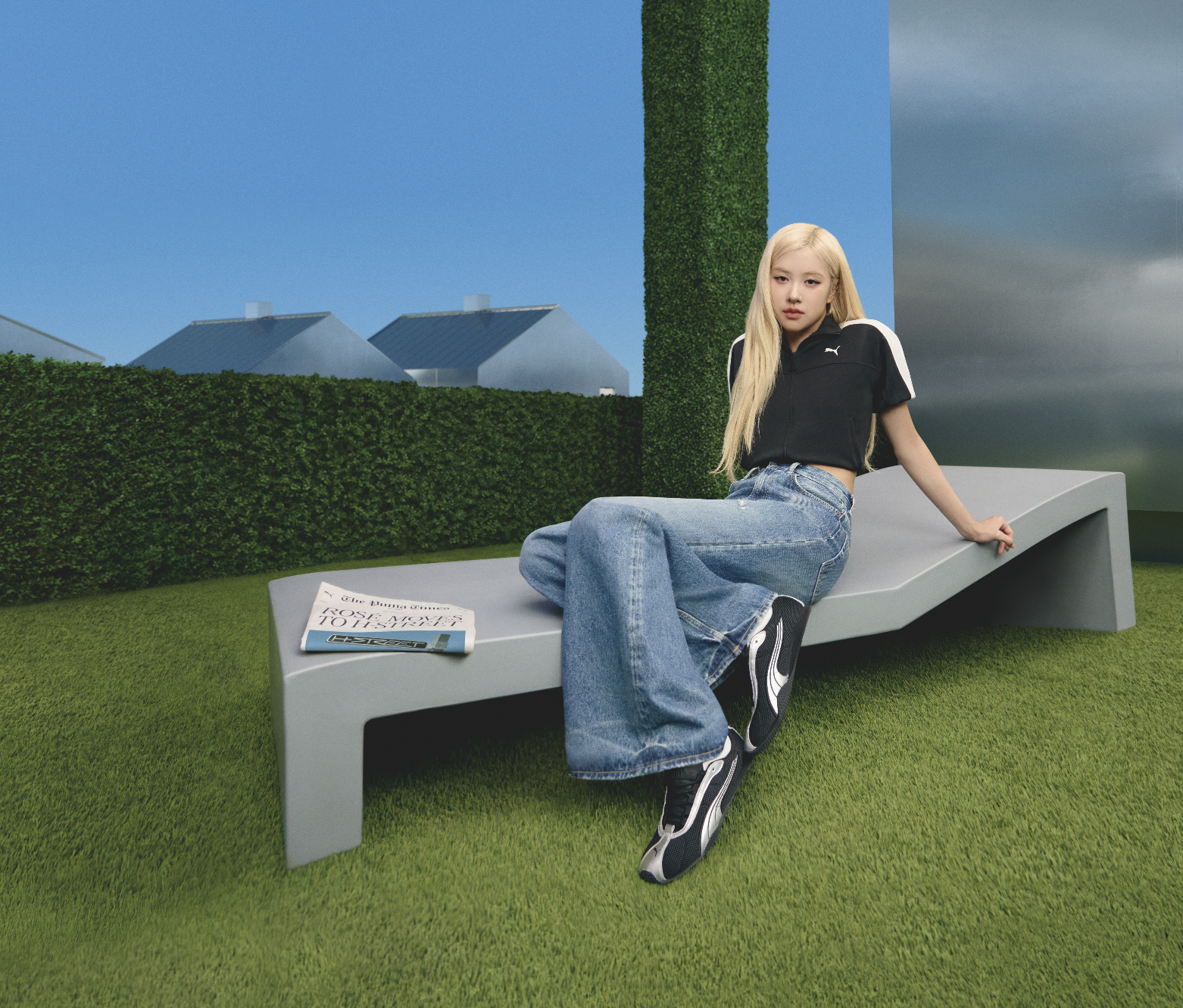 再来看看 ROSÉ 是怎么用它玩转千禧风的。她采用了上短下长的搭配方式,黑白配色的 PUMA T7 系列短上衣,勾勒出曼妙的身材曲线,搭配慵懒随性的宽松水洗牛仔裤,自带街头的松弛感。而修长轮廓的 H-Street,化解了下身的臃肿,让整个人看起来轻盈挺拔,同时鞋身的黑银配色,刚好和上衣的拼接相呼应,色彩的连贯性,在视觉上极度舒适。