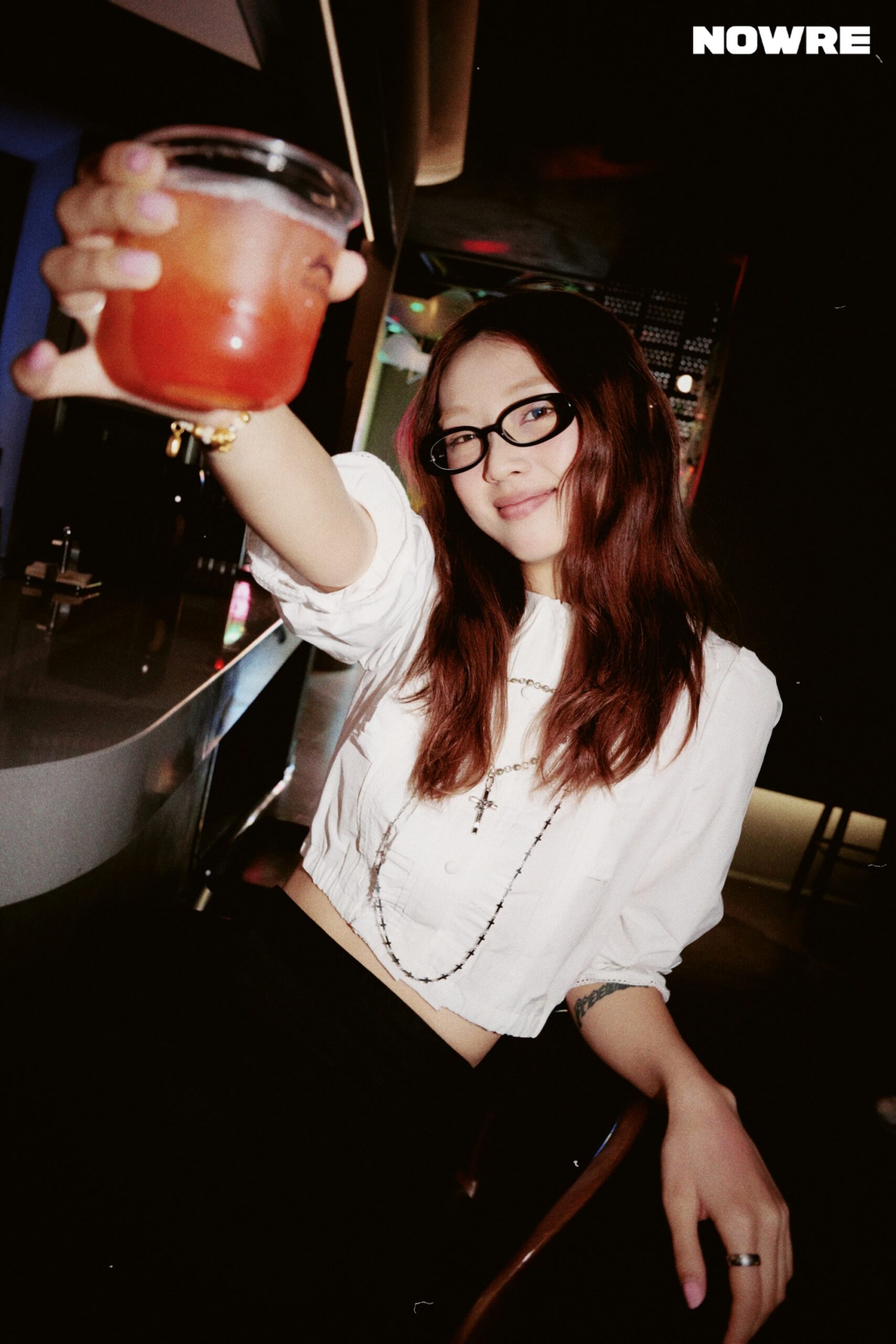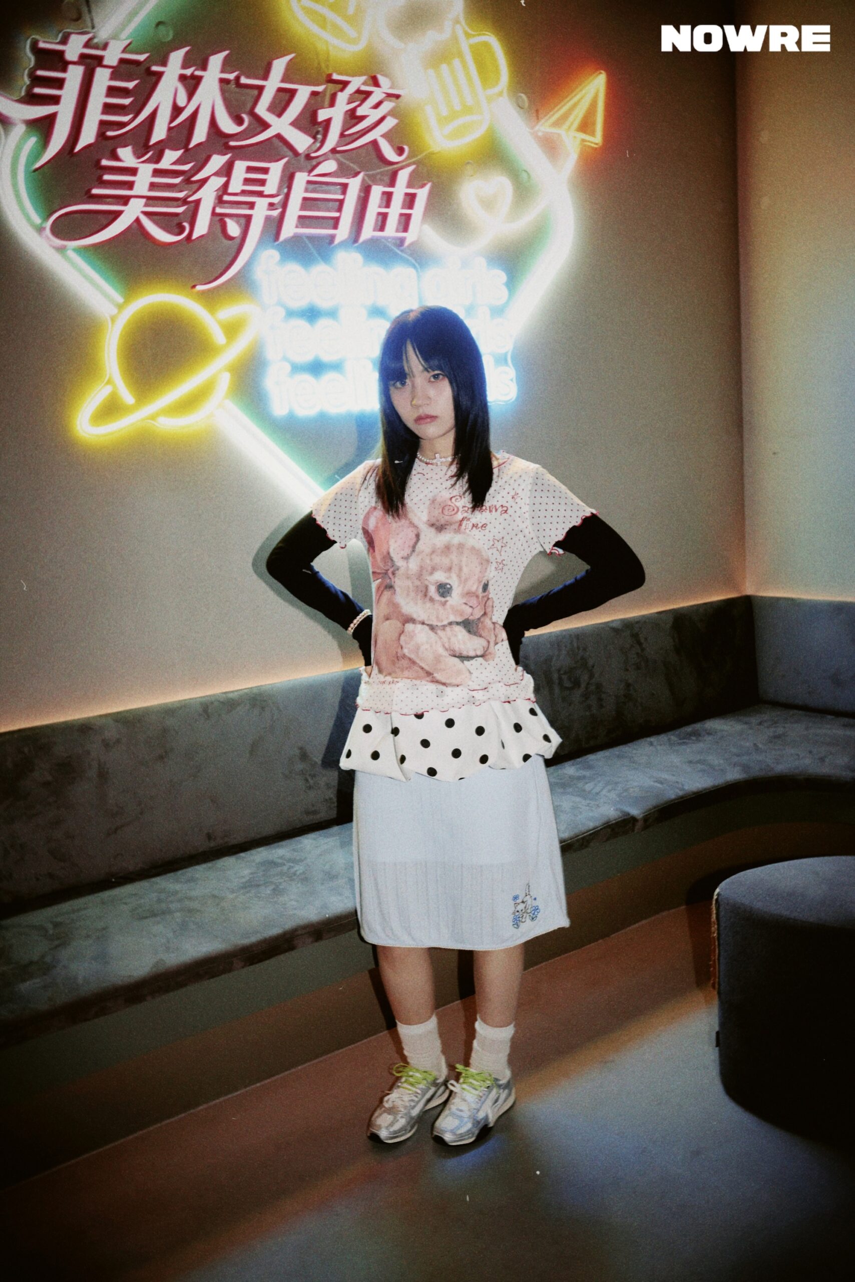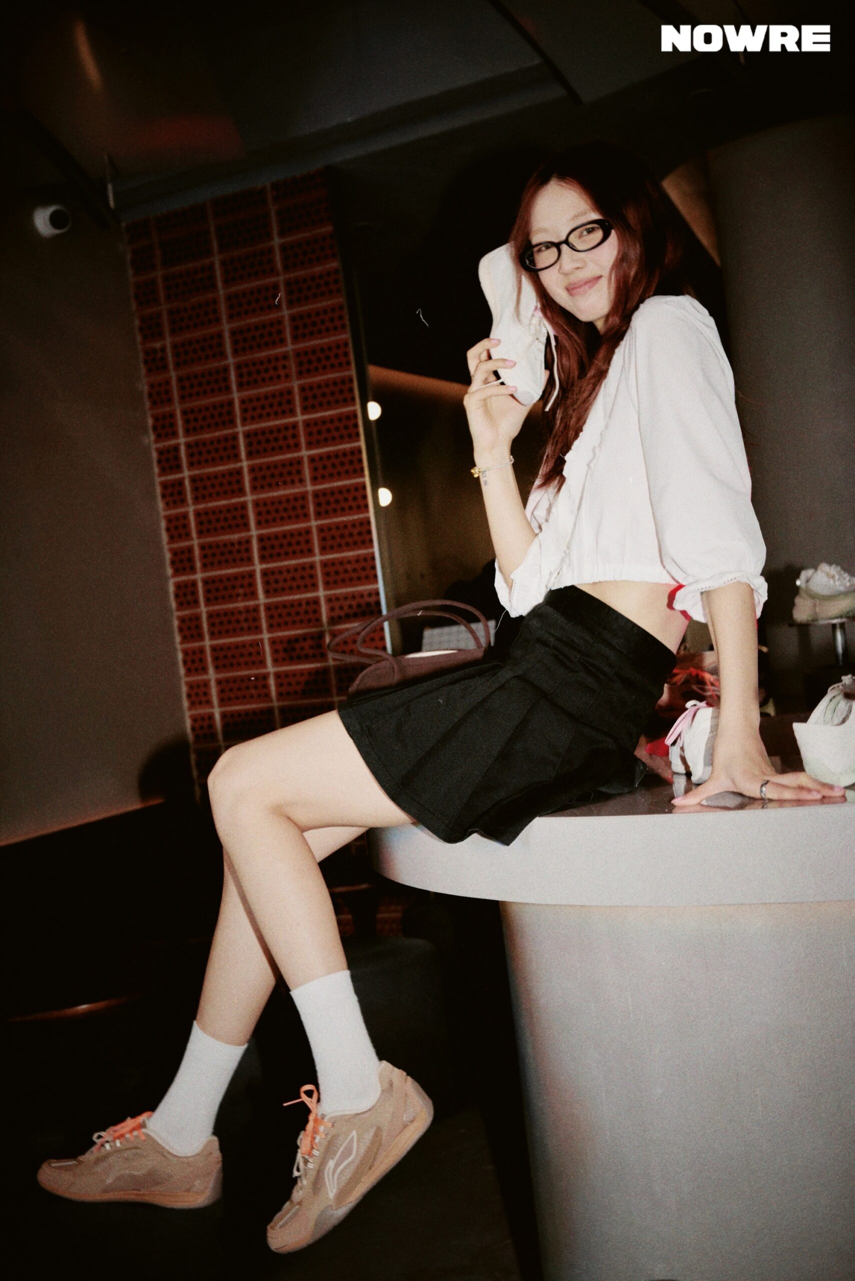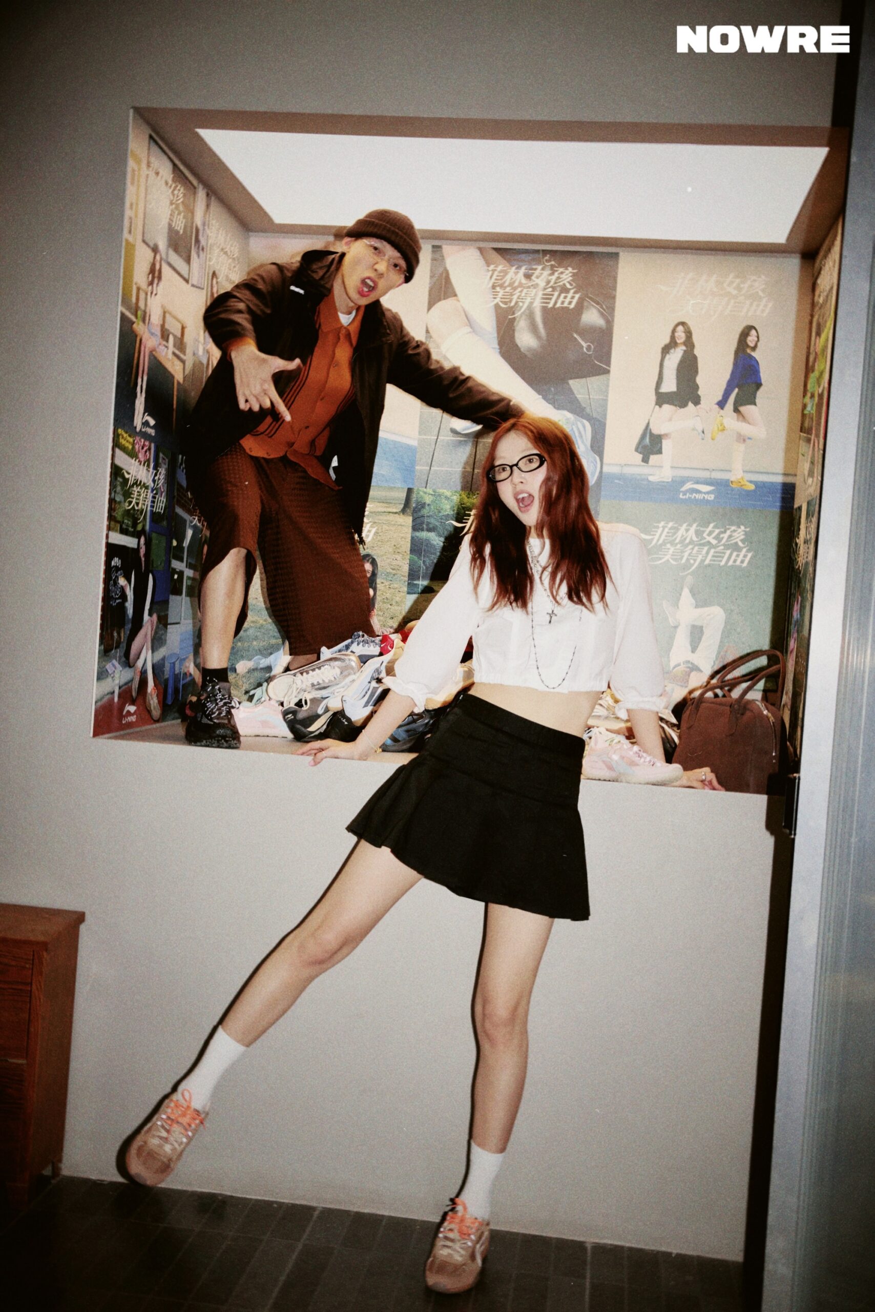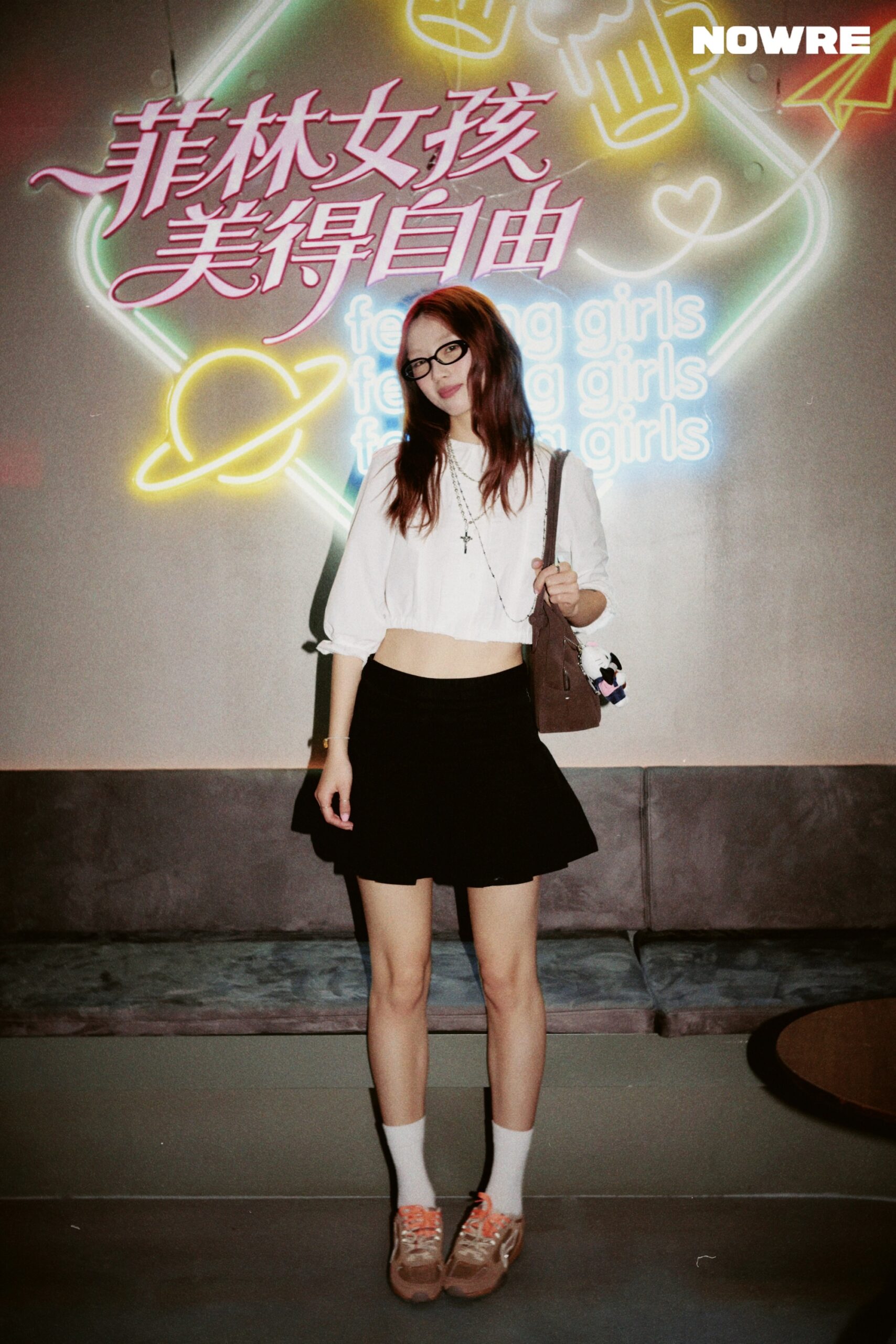 当天我穿了一件衬衫加百褶裙,配了一副「书呆子」风格的眼镜,脚下就是李宁菲林。整体很简单,也很舒服——我不想太用力,但又想在派对上有点自己的小态度。