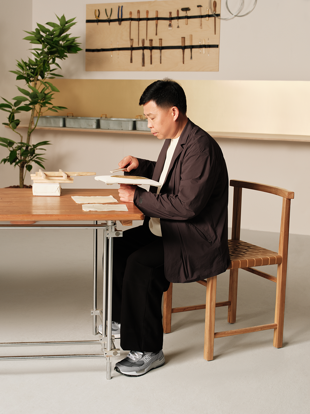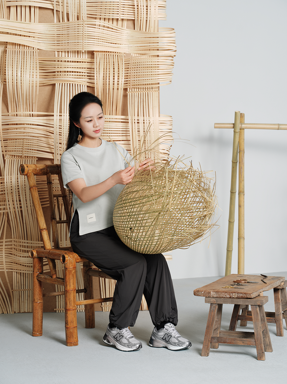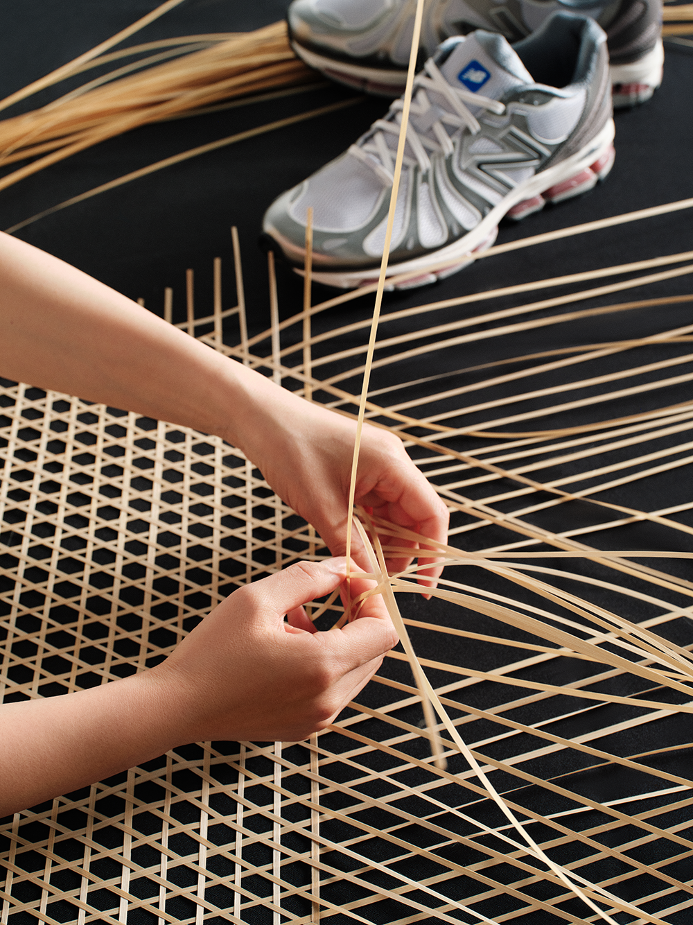 「金」与南京金箔锻制技艺呼应,为 ABZORB 2010 全新配色贴上「金箔 N」;「木」则对应道明竹编工艺,以竹之柔韧诠释 ABZORB 缓震科技在支撑、舒适和稳定上面的全方位表现。一个强调千锤百炼后的精密与光泽,一个讲究编织秩序中的韧性与结构。这也与 New Balance 长期坚持的制鞋哲学形成了有趣映照——工艺不只是装饰,也是价值的体现。