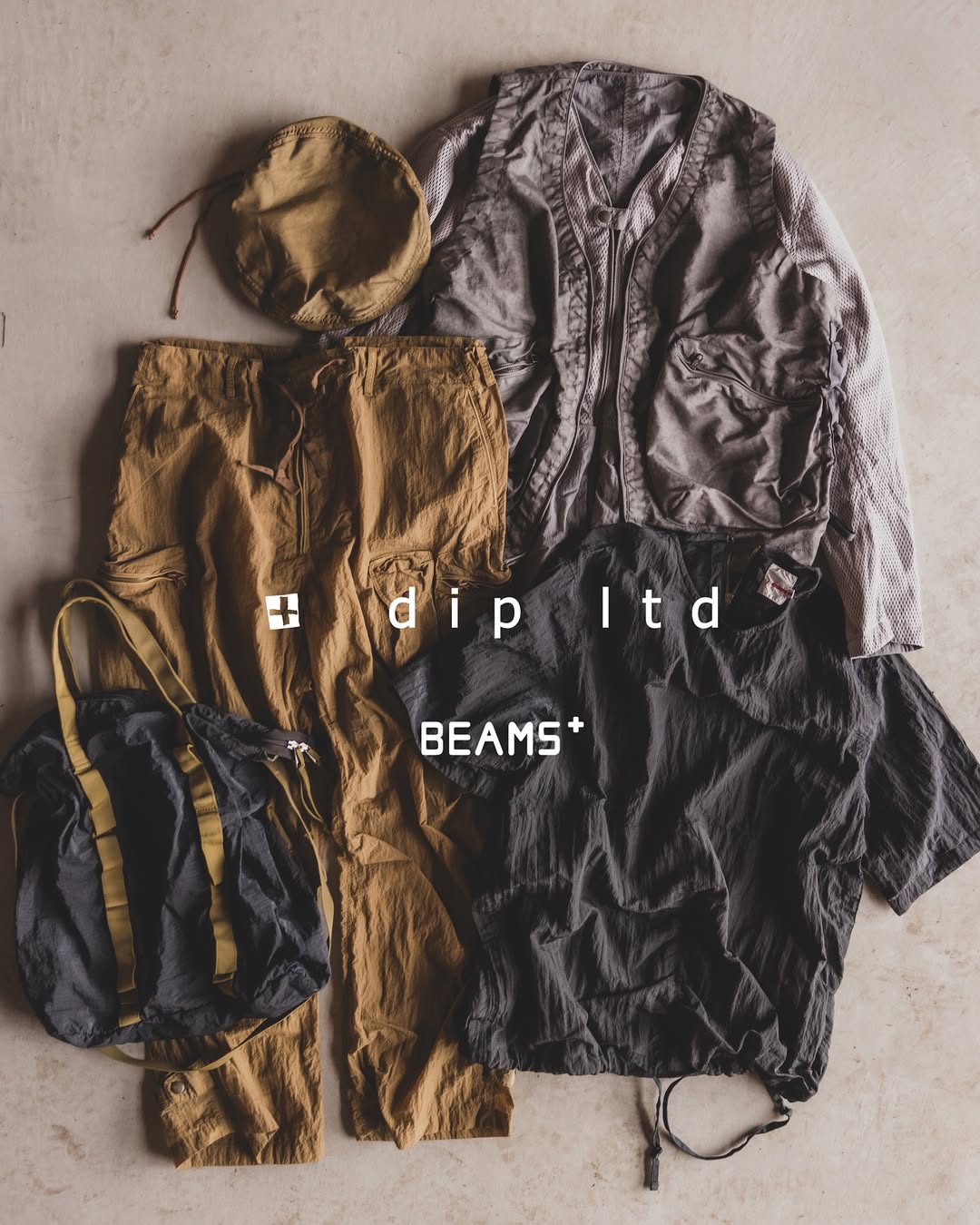 近年来 dip ltd 逐渐在服饰玩家中拥有一定声量是因为连续为 BEAMS PLUS 打造了多个别注系列,无死角展现了 dip ltd 独特的复古视角。dip ltd 从不同国家退役的制式军装中汲取灵感,口袋轮廓、纽扣拉链五金以及战术考量细节等都还原了元年设定,配合斑驳且厚重的成衣染色尼龙面料呈现出别开生面的复古审美体系,与 Stone Island 有着异曲同工之处,但 dip ltd 似乎更具历史沉淀感。