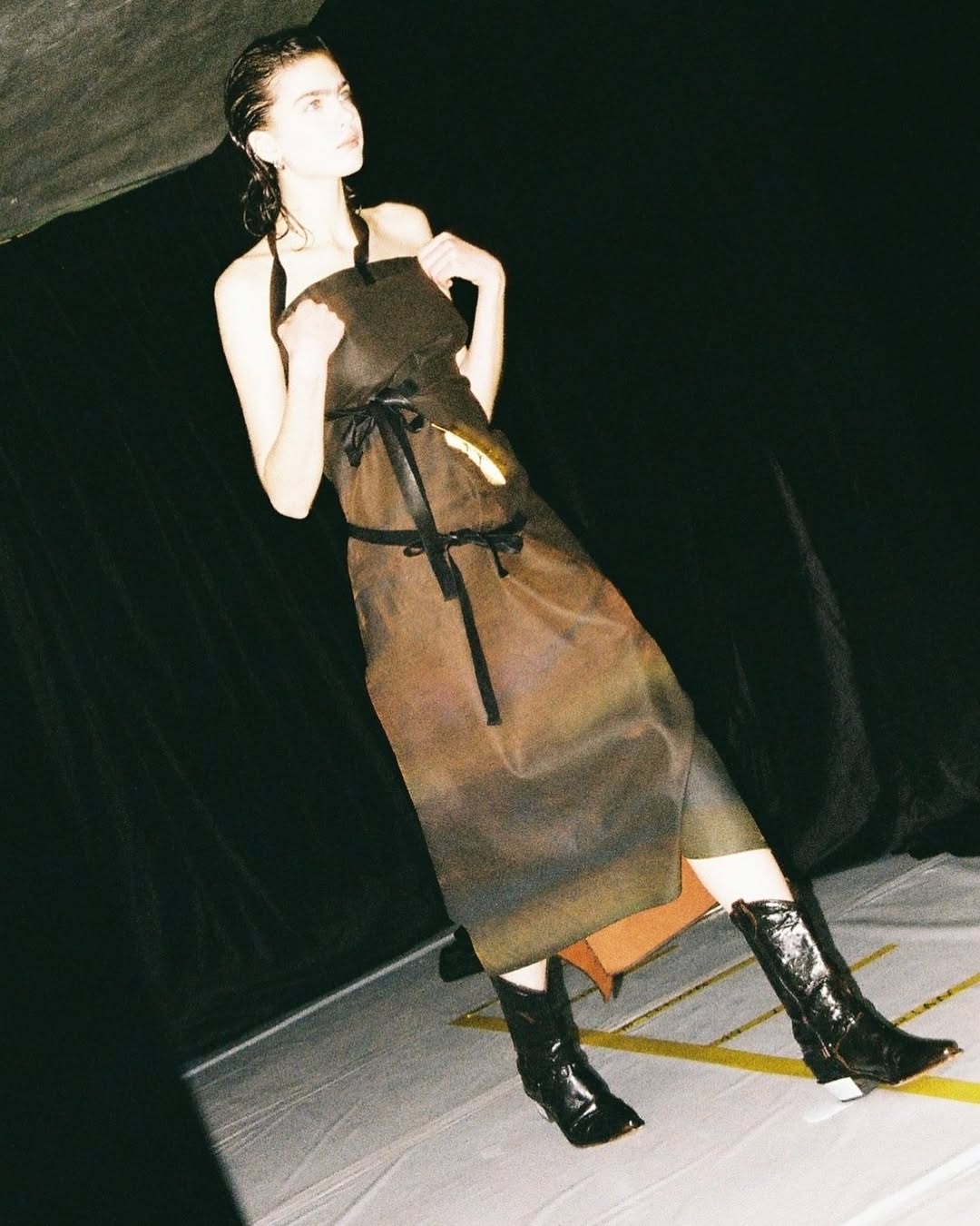 丹宁与皮革面料作为近两季 TANAKA 的核心表达在经典廓形上做出了一系列时装改良,夸张的褶皱、泡泡袖与别具一格的水洗做旧配合不同廓形设定之间的反差感带来可玩性极高的造型深度,一系列来自元年古着的复古细节也让每件单品拥有链接复古与未来的时尚属性。