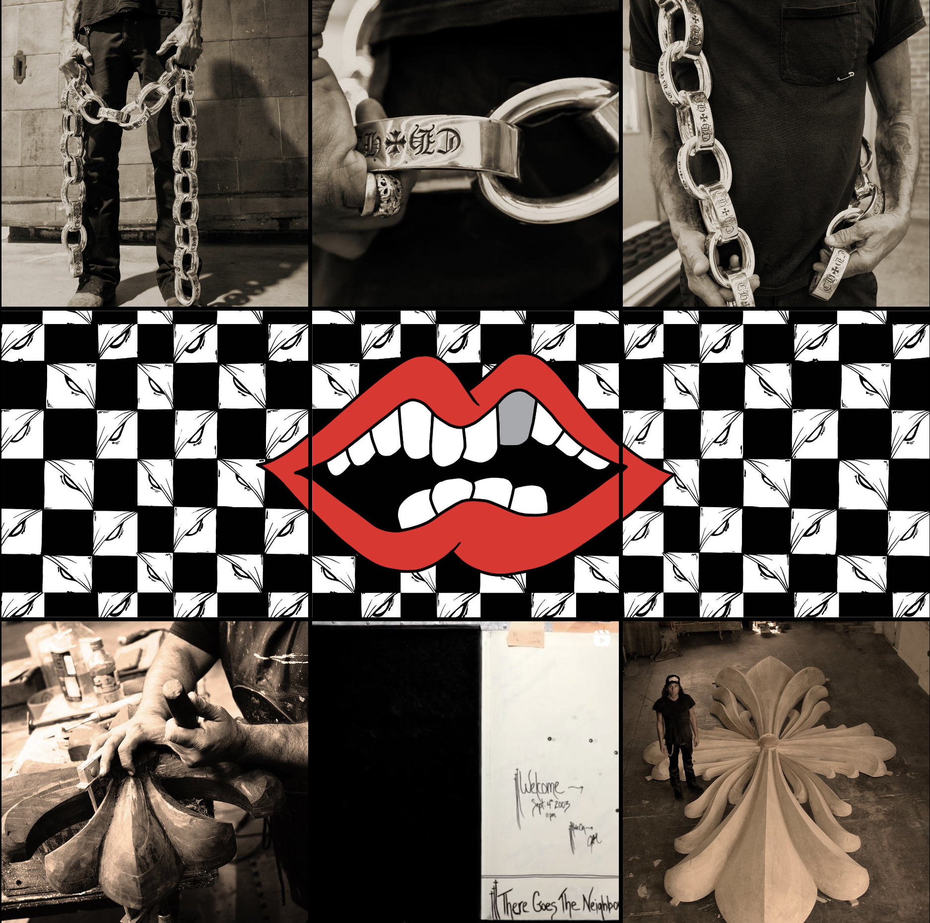 而让 Matty Boy 在 2018 年正式上任 Chrome Hearts 创意总监的,并不完全是彼时这个「准驸马爷」的身份关系;而是他曾一时兴起、肆意改造的一件皮夹克,受到了 Laurie 与 Richard 的认可,并在寄至品牌巴黎门店后立即售罄、并自此开启的 Matty Boy 系列抢购热潮。
