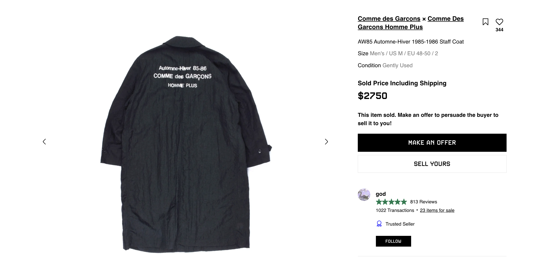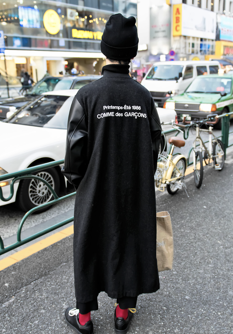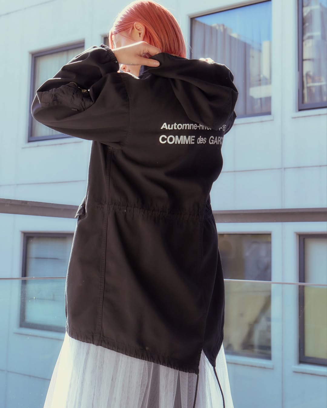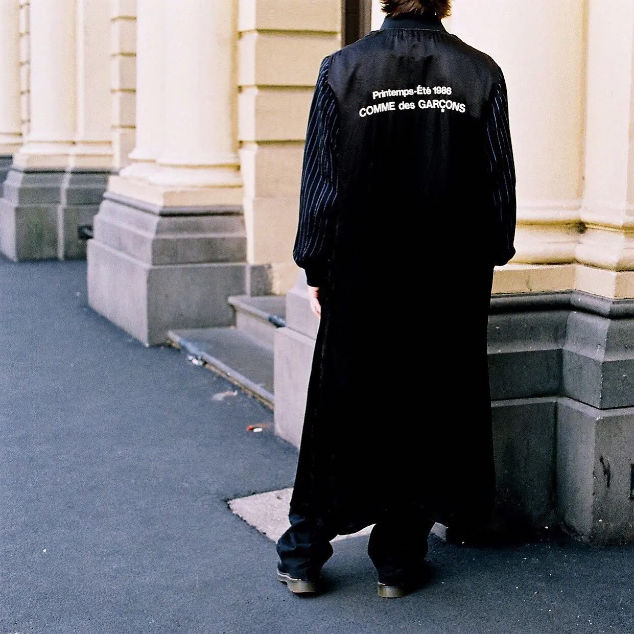 最初,COMME des GARÇONS Staff Coat 仅仅是品牌团队的专属,简单的长外套设计背后印有品牌 Logo 和季度信息:Automne-Hiver(秋冬系列)83-84/84-85/85-86、Printemps-Été 1986/1987(1986/1987 春夏系列)。整体设计可以说是「言简意赅」,也正是如此,这些「OG 级别」的 Staff Coat 在二手网站上售价极高,接近 2 万的价格甚至比主线单品还要贵。