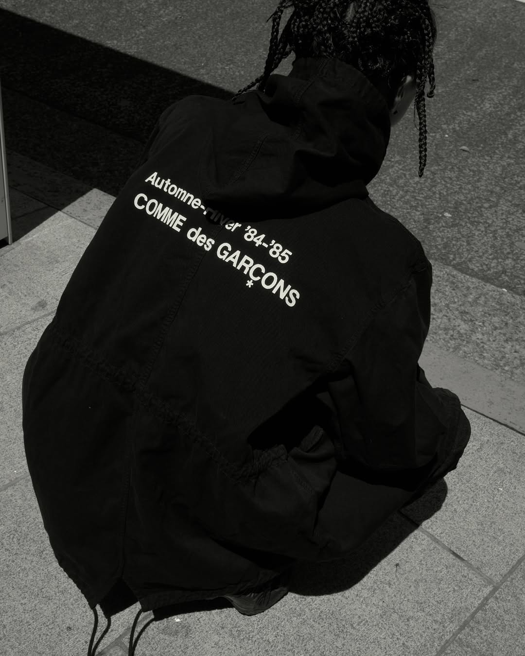 Supreme x COMME des GARÇONS SHIRT 派克大衣、COMME des GARÇONS HOMME PLUS Staff Jacket | Via Supreme & Instagram @aphiau.thriftstore