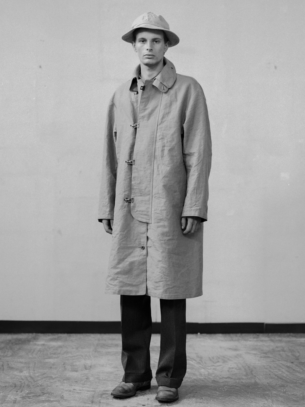 Nonnotte 目前已经正式推出六季,每一季都没有抽象的叙事主题,Atsushi Sugihara 坦言将所有精力全部投放在生产的所有项目中,从最初的面料遴选到设计制版,再到缝纫与辅料的调度,以及最终的做旧处理与定价平衡,所以 Nonnotte 更像是 Workshop 品牌,同时 Nonnotte 每一季都会与日本本土面料工坊合作定织全新肌理的面料,为经典男装廓形注入全新造型可能性。