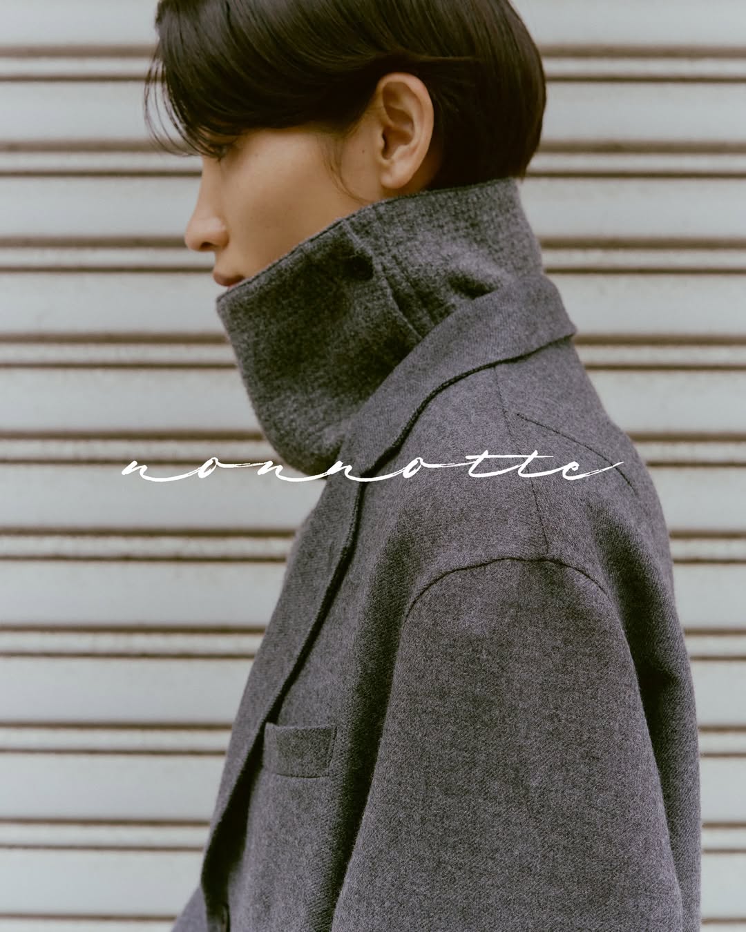 Nonnotte 作为十分年轻的基础款品牌成立不久便入驻东京多个知名买手店,但设计师 Atsushi Sugihara 至今仍与社交媒体保持一定距离,同时品牌亦未开通官网,在基础款内卷白热化与风格同质化的当下 Nonnotte 仍然透过深耕面料肌理开辟出全新的微趋势,俨然是不可忽视的新锐极简单位。