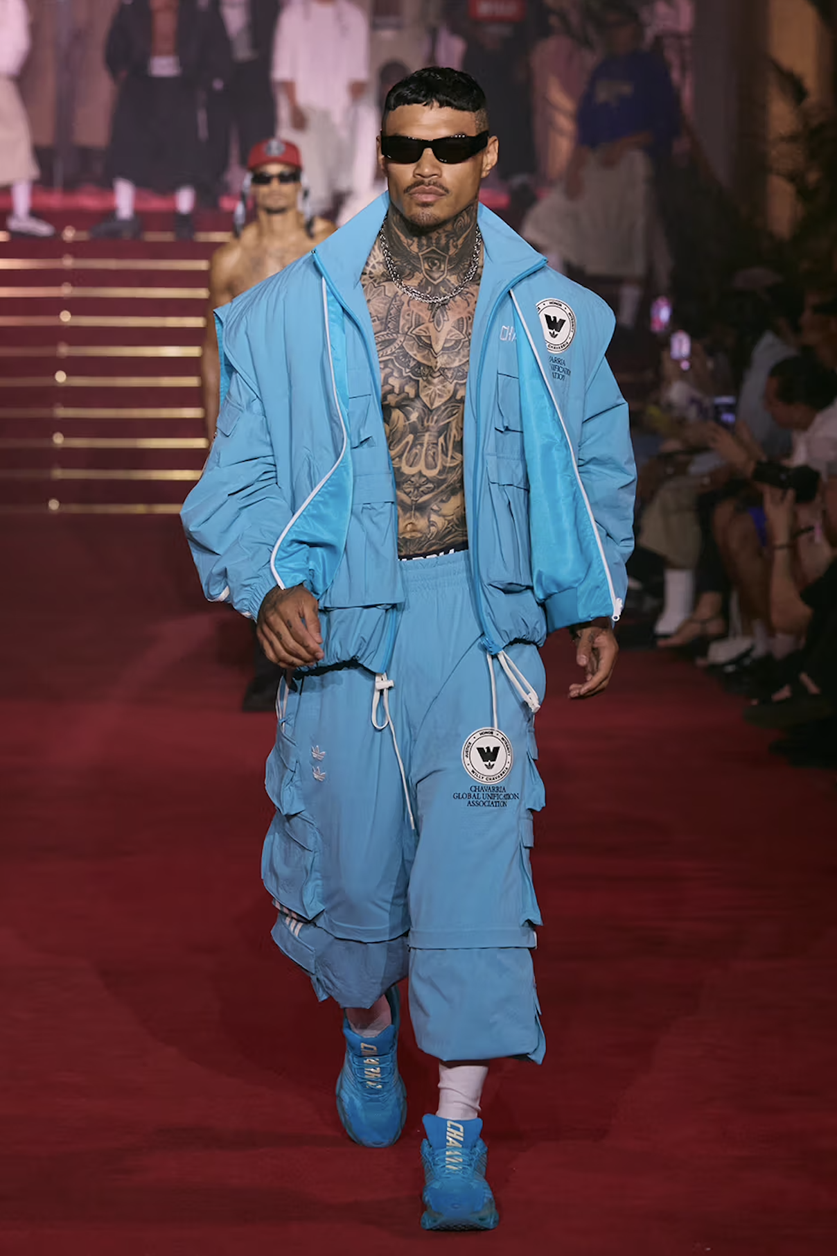 Willy Chavarria 代表墨西哥裔群体的自由宣言,则通过品牌 2026 春夏系列中的工装裤新作予以表达。此次联合 adidas 以及美国公民自由联盟合作打造的单品中,工装裤化身为社会议题的载体。