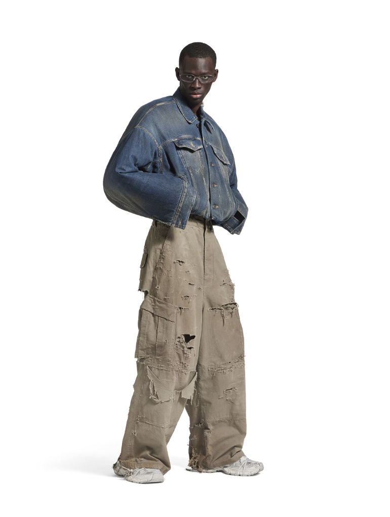 在被「巴味」审美统治的近 10 年时尚环境中,Demna 用各式如雕塑般的超廓形、脏污感、破旧感工装裤,引领着「躯体重塑」概念的美学认知;一条 BALENCIAGA Cargo,成为穿搭玩家的必备单品,同时也是品牌每季必火的人气爆款。