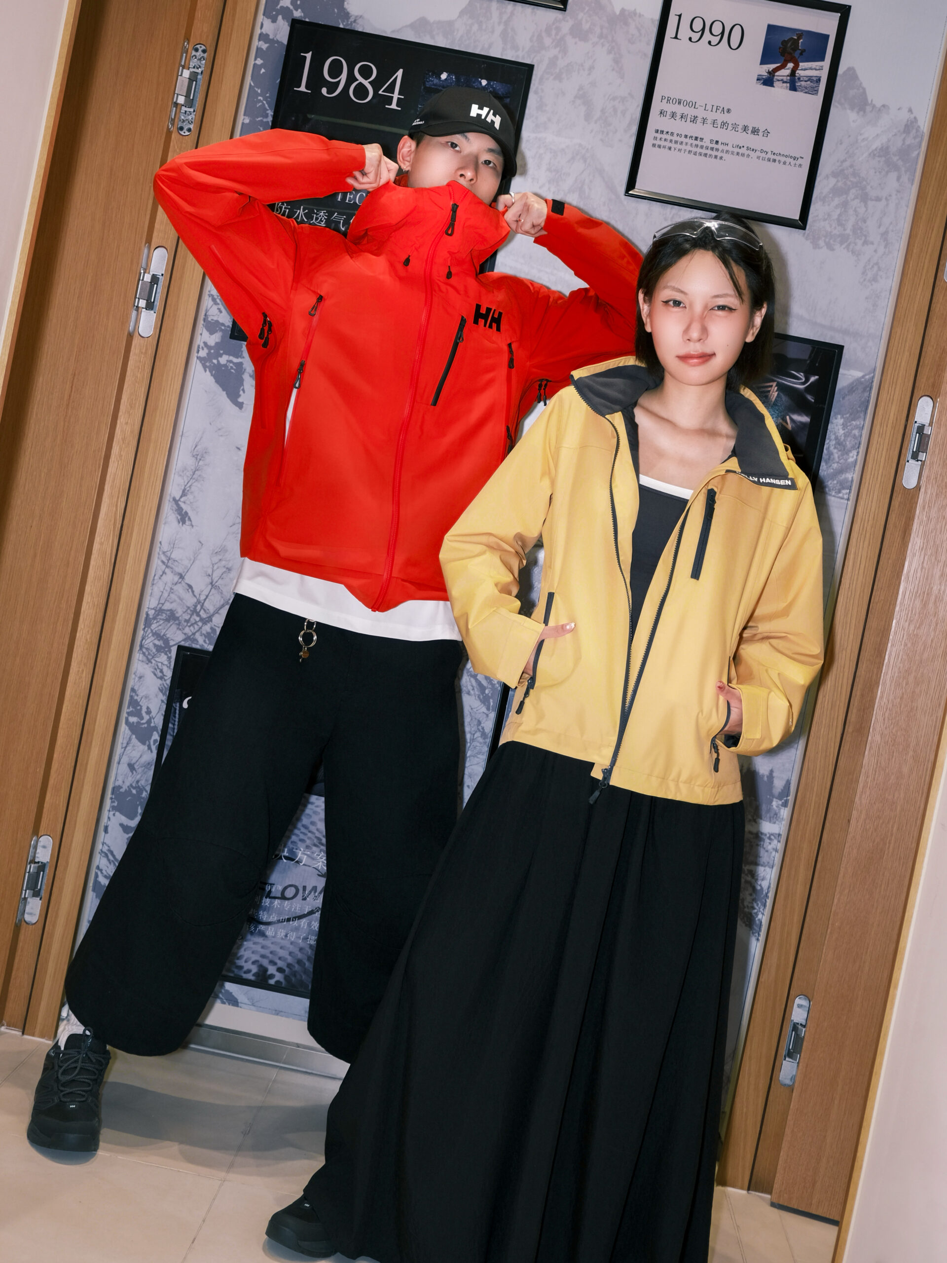 ZAZA 和大董的高饱和 Gorpcore 七夕穿搭十分和谐亮眼,特别是 ZAZA 的 HELLY HANSEN Sailing Heritage系列新款夹克,明亮黄色系加持,挺括的 Boxy 版型剪裁利落,更显身材比例。巧妙的是,ZAZA 内搭一条长裙,中和了 Sailing Heritage系列新款夹克的硬朗特质,颇符合 Gorpcore 风格的穿搭精髓。