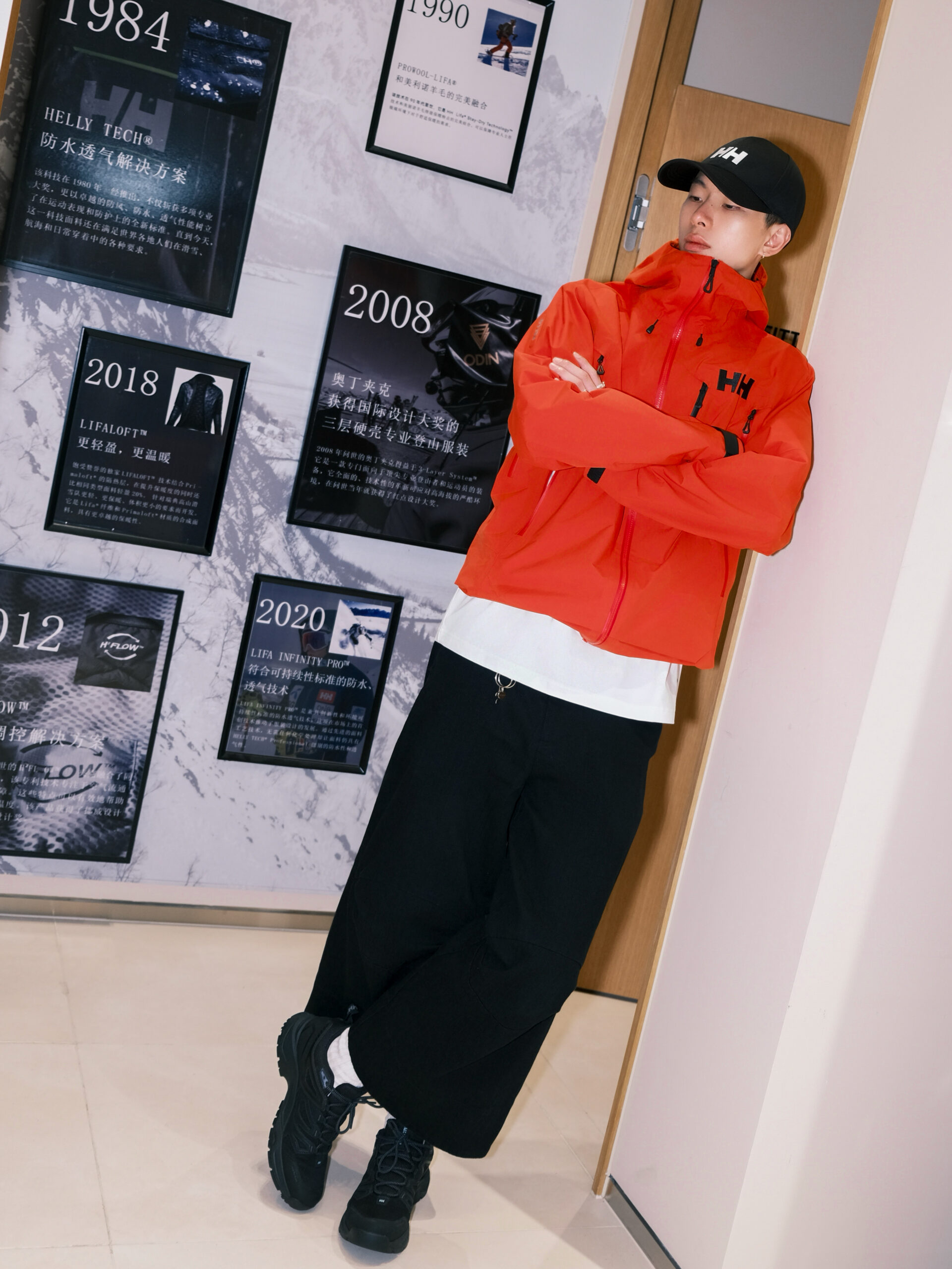 大董的首套 Gorpcore 造型同样非常吸睛,HELLY HANSEN ODIN 系列新款户外徒步硬壳冲锋衣采用复古的橘红色为基调,打破户外着装的沉闷。但更为亮眼的是享誉全球的硬壳标杆 ODIN,其专业性能毋庸置疑。