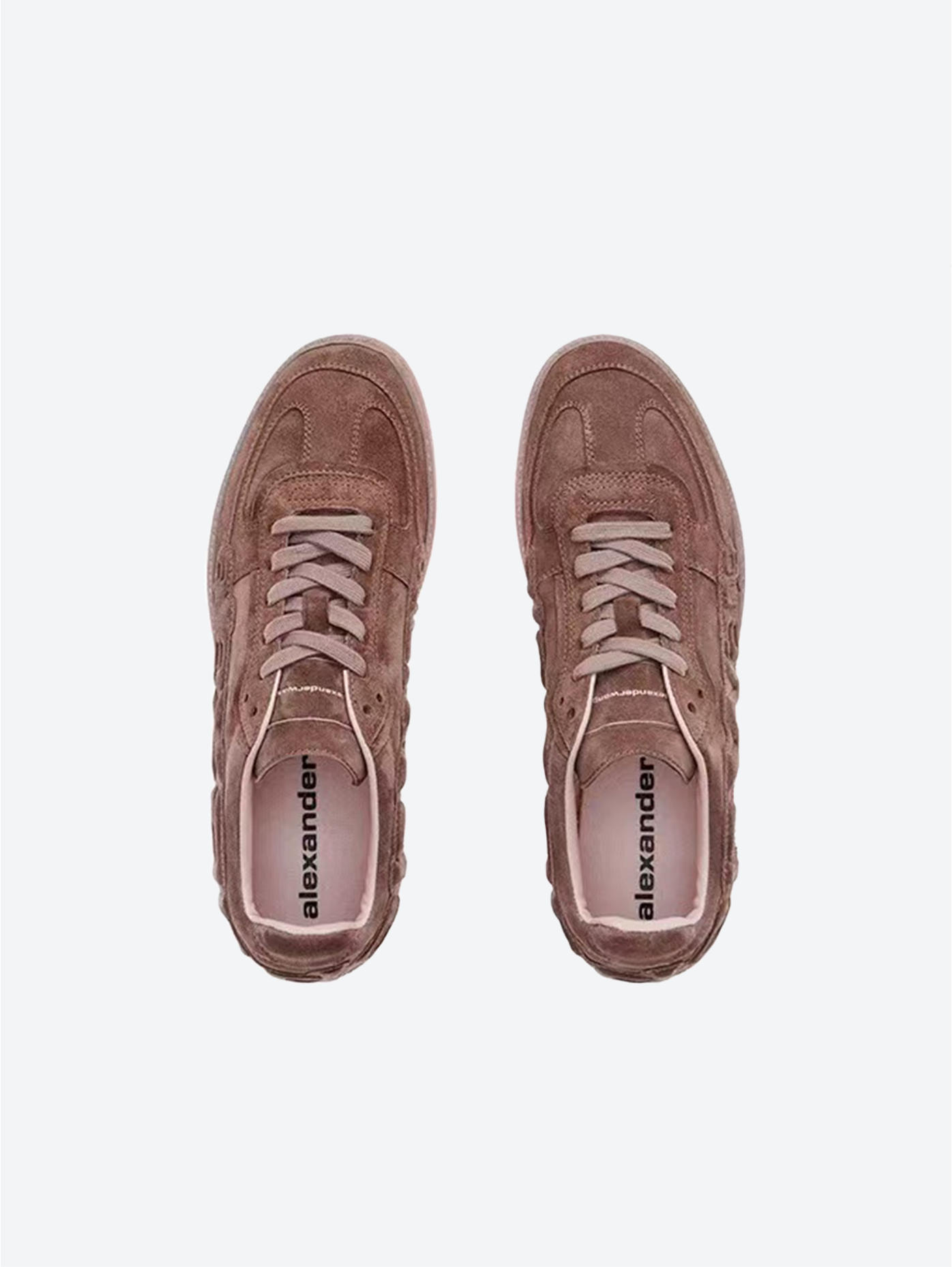 当下可以诠释 Y2K 风格的还有品牌 alexanderwang,其 2025 新作 Lex 德训鞋,以全小牛皮绒面革材质诠释高级质感,脏脏粉是 Y2K 甜心风的经典回潮,但搭配独特的打蜡处理效果,赋予它一种不羁的做旧感和层次感。百搭属性让它轻松融入各种 Y2K 复古运动风格,舒适轻便的脚感让它成为暴走街头的不二之选。