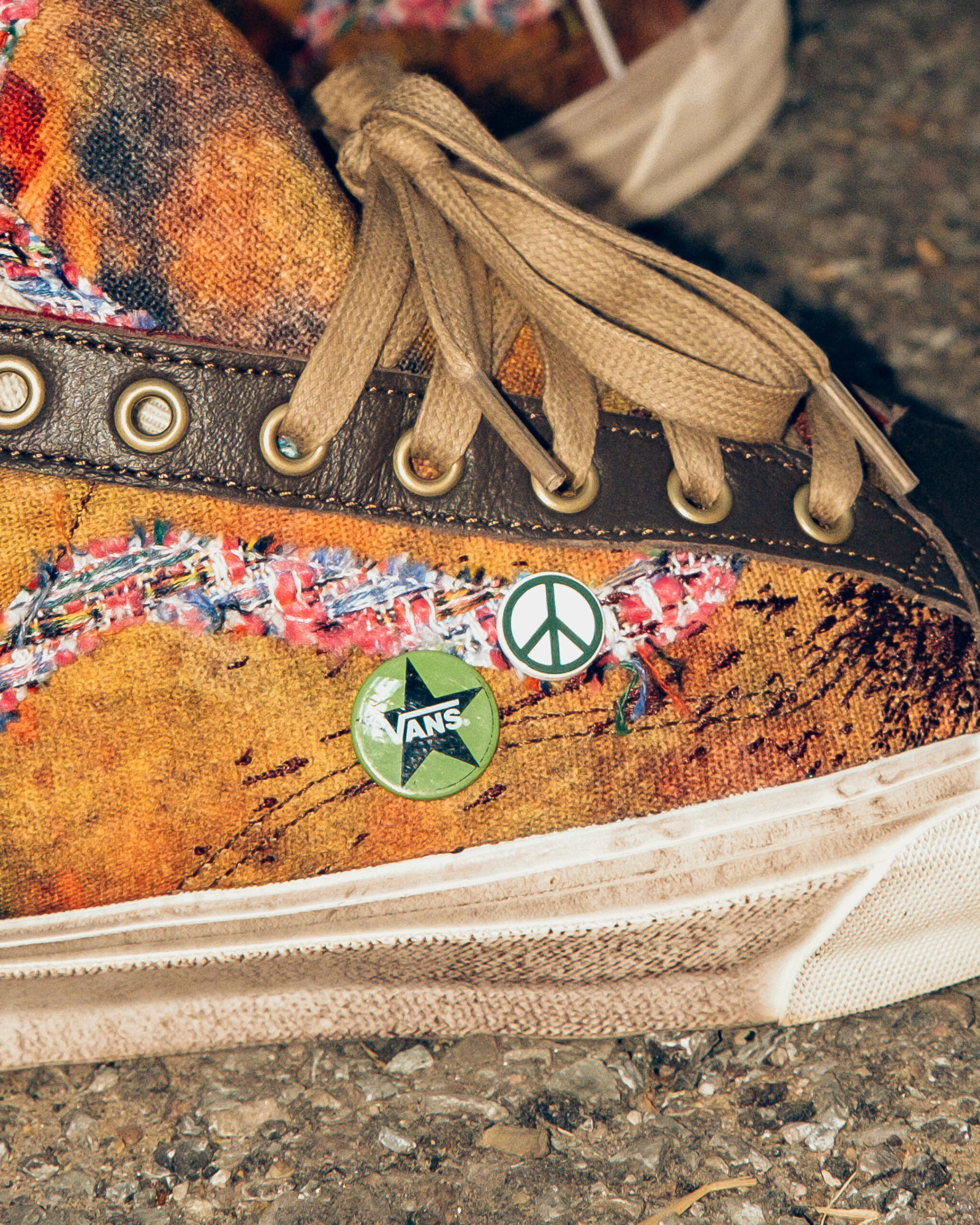 品牌巧妙的打了个「擦边球」,很难不承认它的设计就是参考了香奈儿在 2015 年推出的 On the Pavement 邮差包。这款人气包型在当时被 Lil Yachty、Bella Hadid 等诸多明星带火,而其极具特色的设计,几乎被完全移植到了 Old Skool 36 之上,为这双原本属于街头的鞋款增添了一些特别的奢侈属性。在外观上,无论是做旧涂鸦效果还是带有嬉皮元素的细节也都足够吸睛。