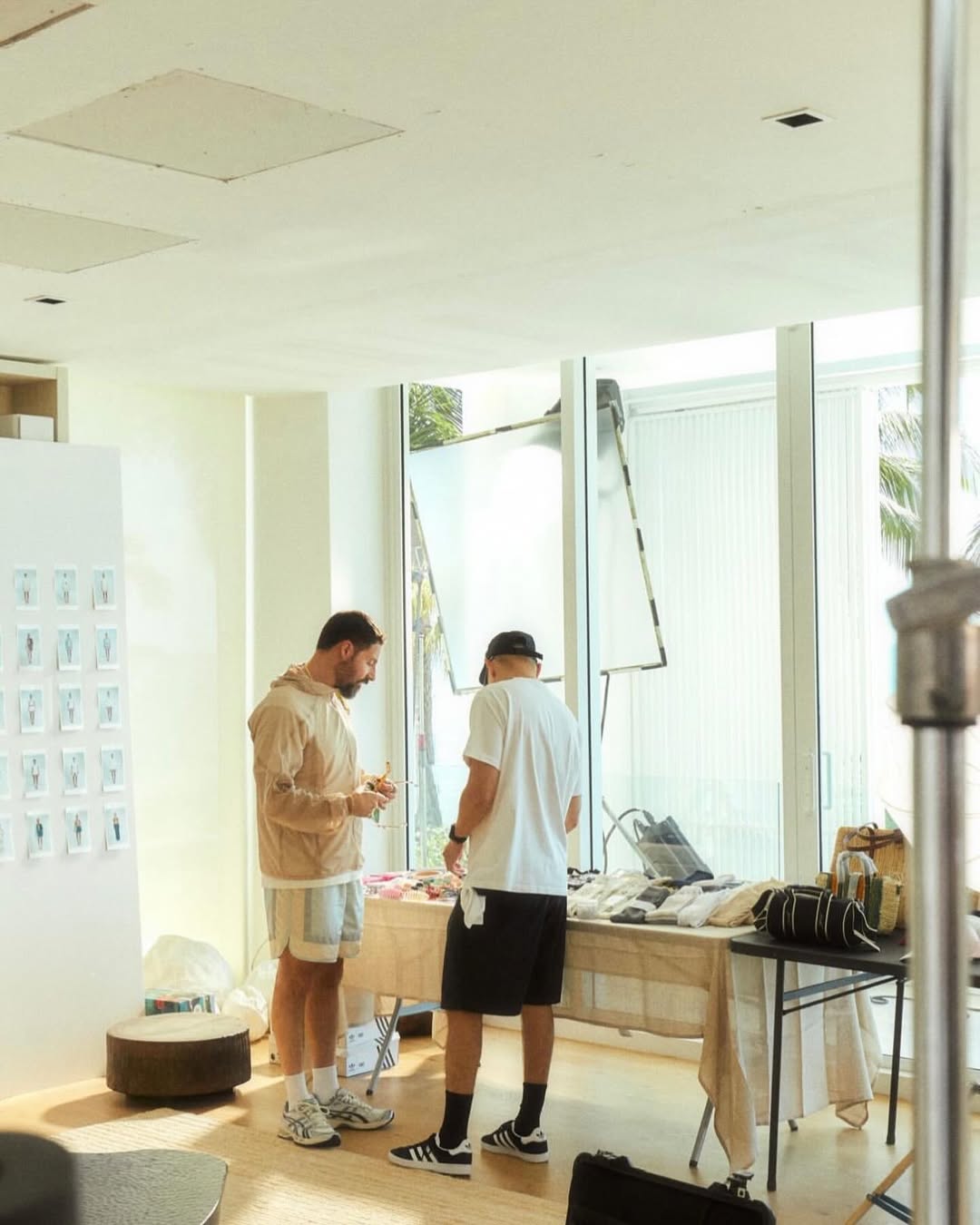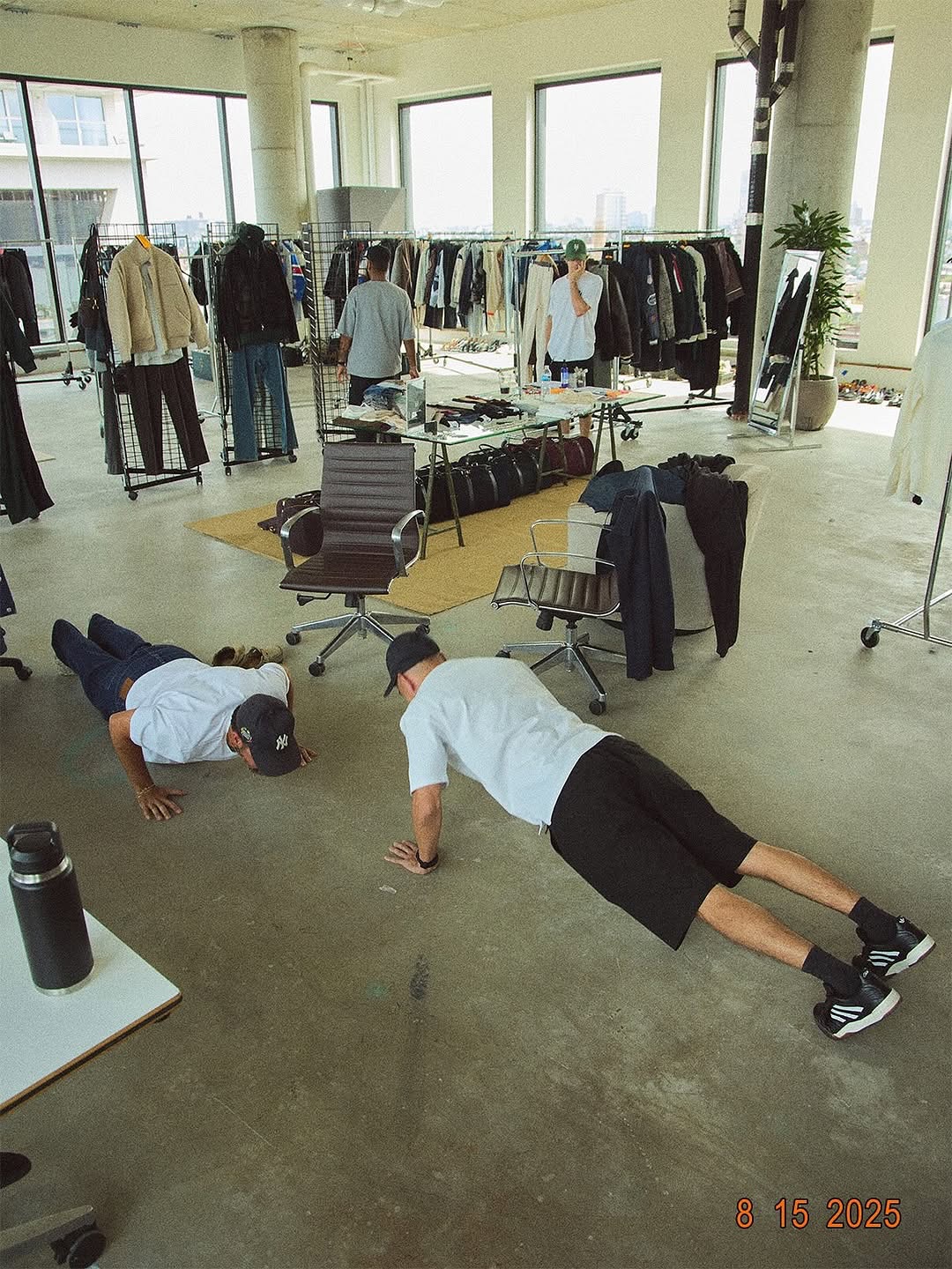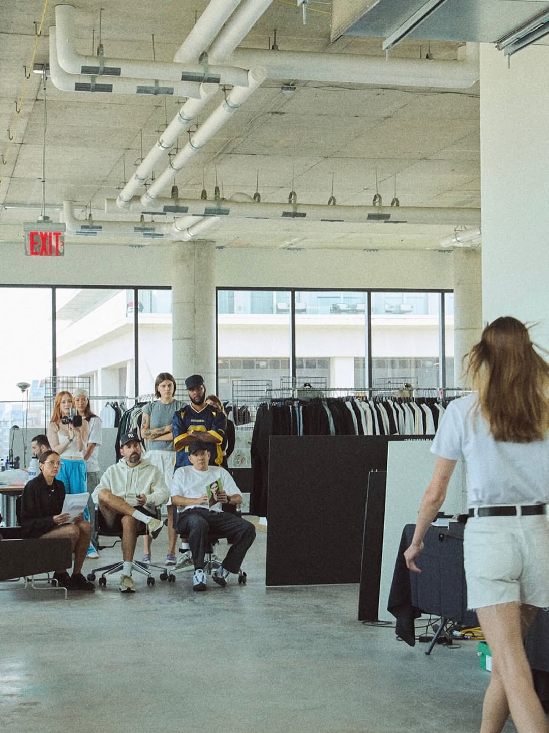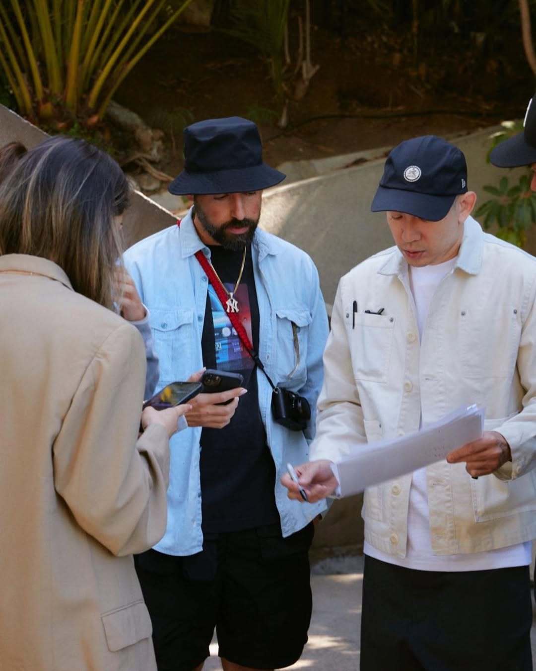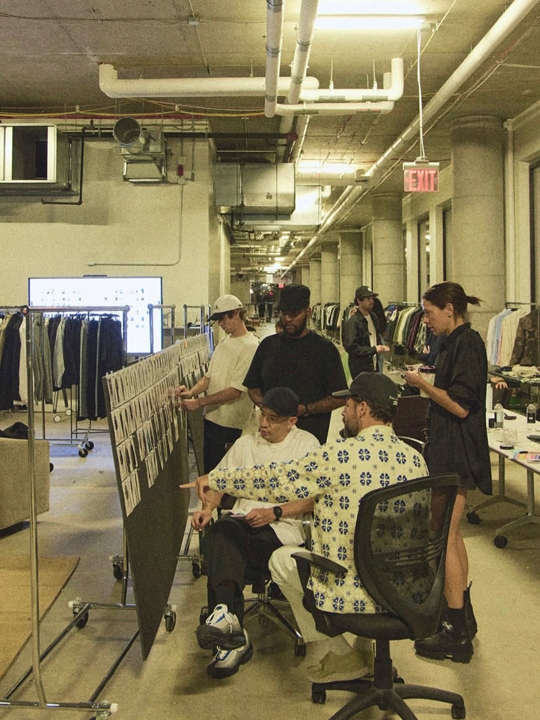 当主理人 Ronnie Fieg 分享秀前一段时间里他们在布鲁克林 KITH 总部大楼的工作照时,一个熟悉的身影一直伴随在他左右,重要程度可见一斑,并且事无巨细的一遍遍过着准备工作,看到熟悉的白 Tee + 棒球帽,还是熟悉的 Eugene Tong style。