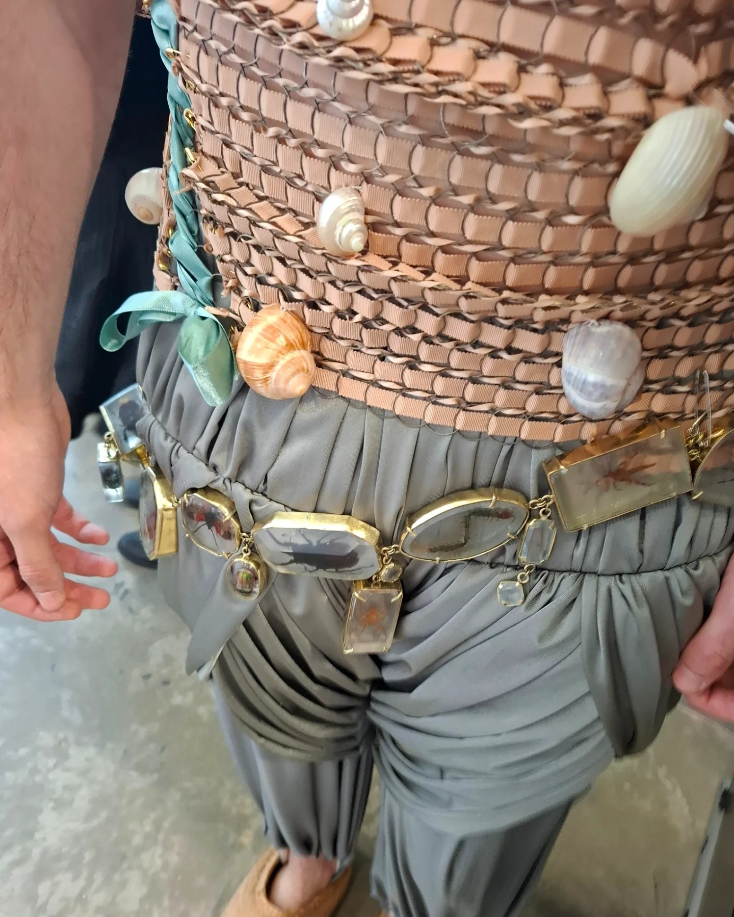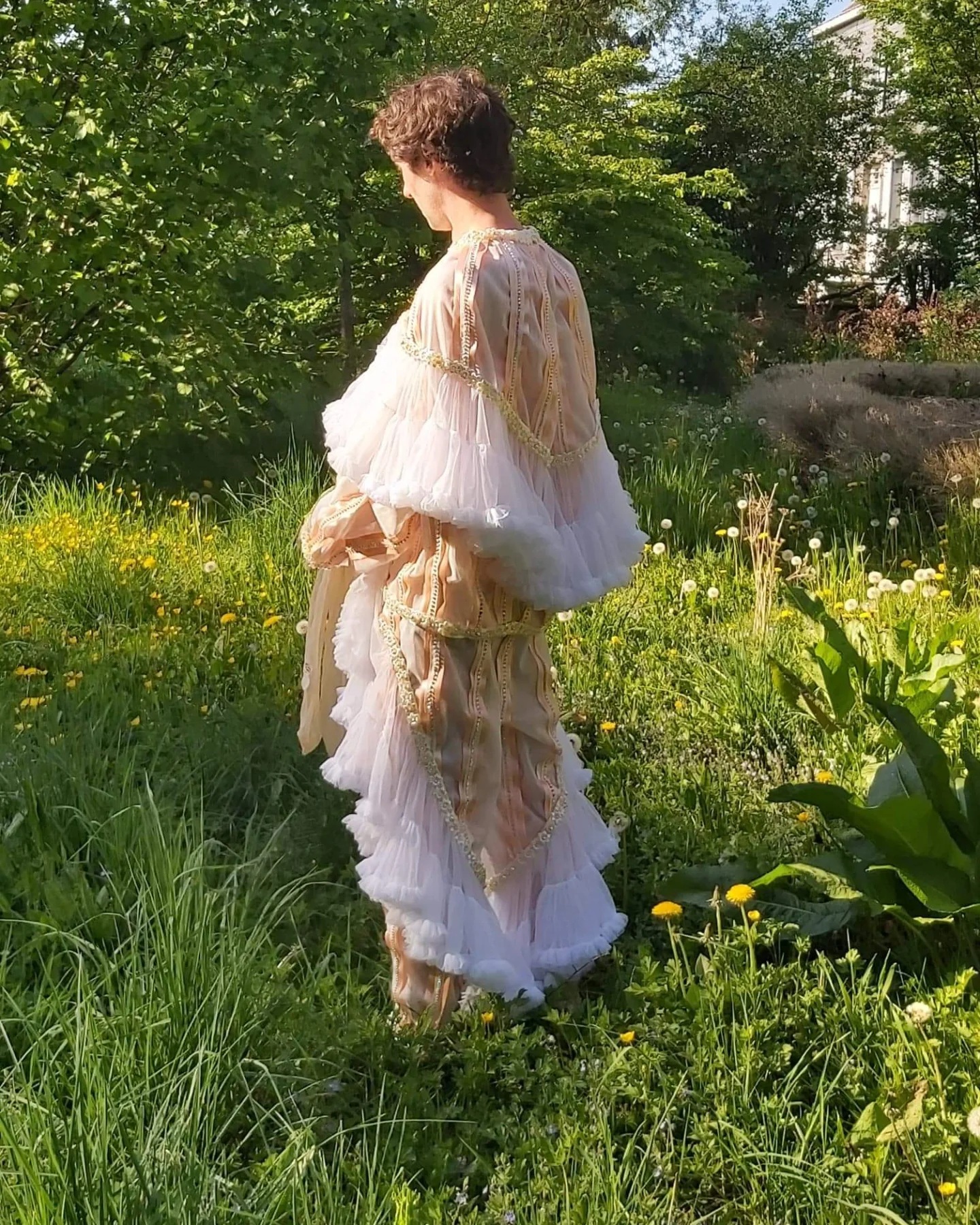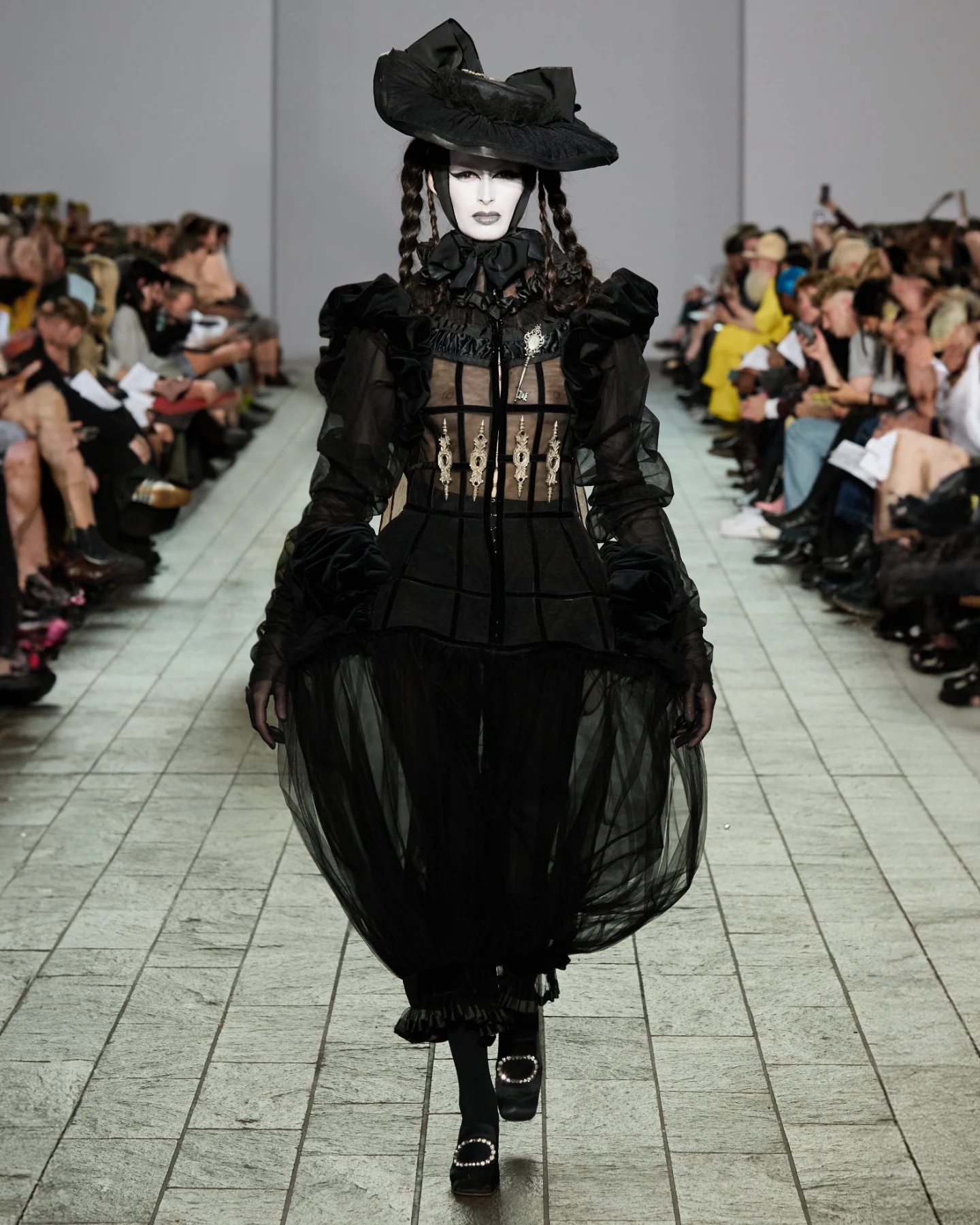 在 2025 年春季的毕业系列 「A Walk in the Forest」中,Anton Femia 将这种成长经历转化为暗黑奇幻的叙事。他说道,「我希望穿着者感到自己身处另一个世界,让观看者见证类似幽灵般的景象。」