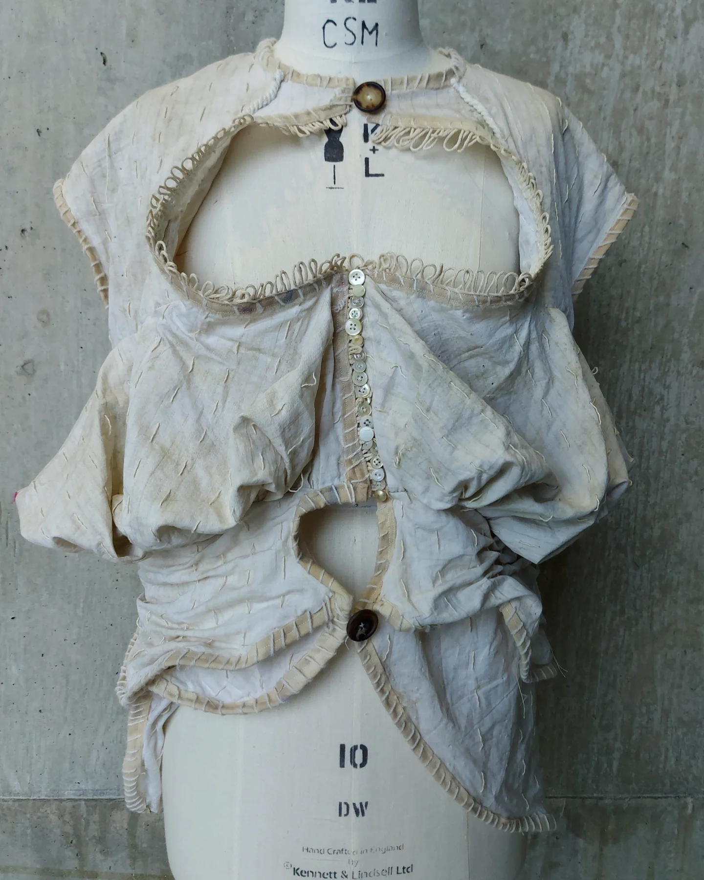 The Snail(蜗牛):用干蜗牛作刺绣随意分布在上衣,裤装纹理模仿黏液轨迹,细节充满荒诞与生命力。
