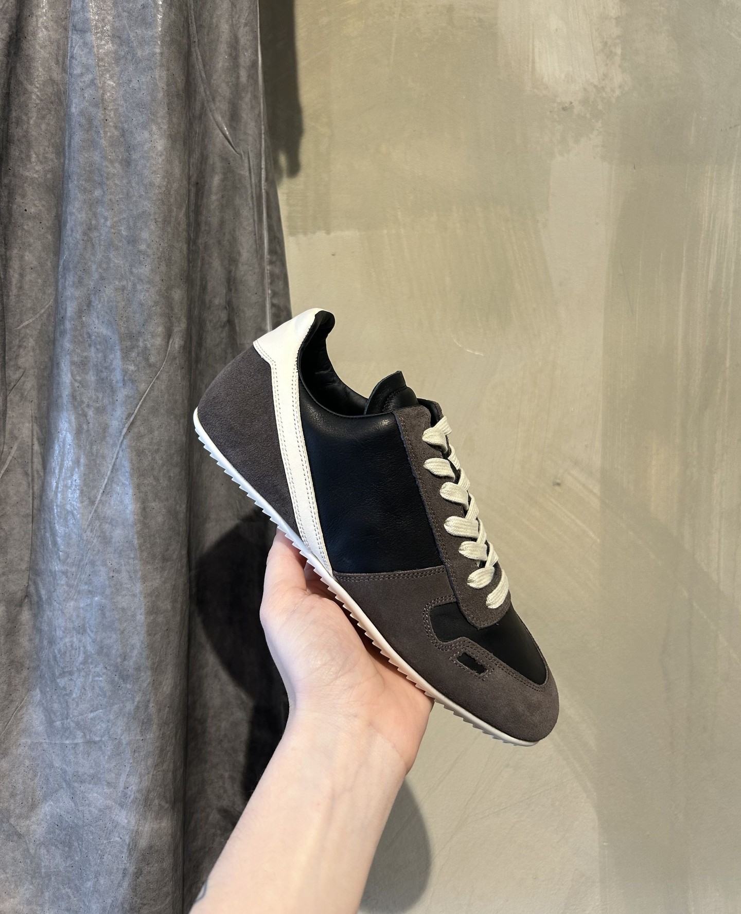 Rick Owens 在 2016 年接受 Footwear News 采访时表示:「运动鞋不是我的专长,我开始推出运动鞋的唯一原因,是它们过于平淡,我想让运动鞋的设计变得更独特。」但在近 10 年后,Minimal 运动鞋又回归「平凡」。