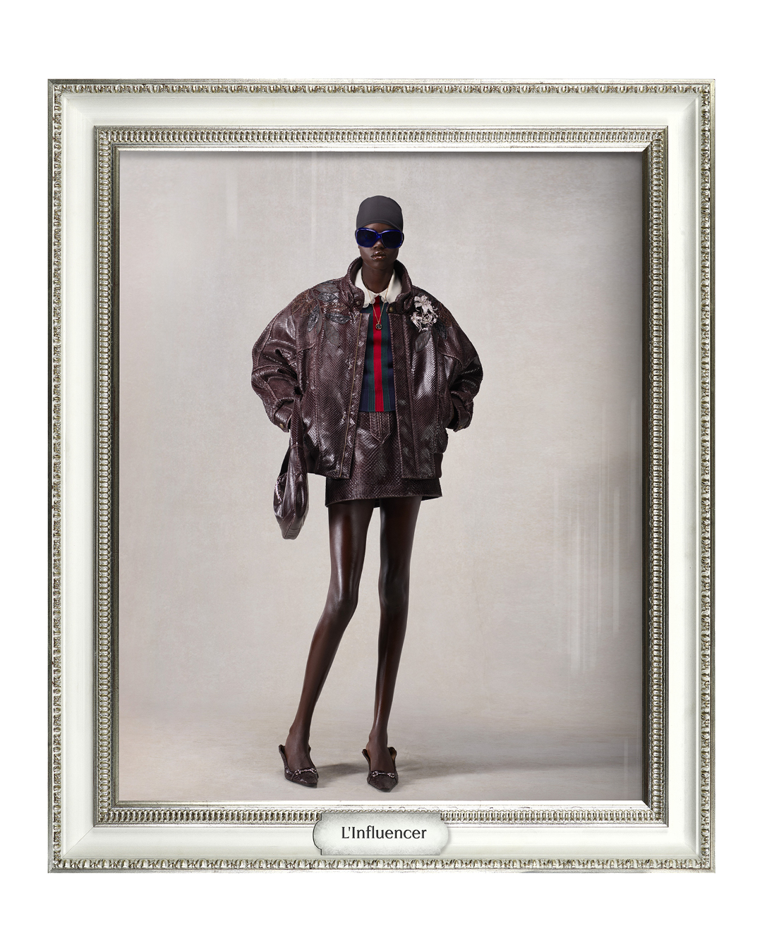 通过名为「La Famiglia」(家族)的角色形象,Demna 以一个虚拟的家族来承载故事,试图展示他个人视角下的「Gucciness」以及它的「意大利特质」。这种呈现方式仍然能够关联起在 VETEMENTS 和 BALENCIAGA 时期对于《Exactitudes》的灵感参考,可见「象征性」在 GUCCI 的创意过程上仍然是非常重要的一部分。而他自己也在采访中提到,这些原型实际上也代表着未来的 GUCCI 消费者,每个人都能在系列中找到与自己产生共鸣的部分,从这一点上来说,也更加呼应了其在 BALENCIAGA 时期那样不断打造的受众画像。