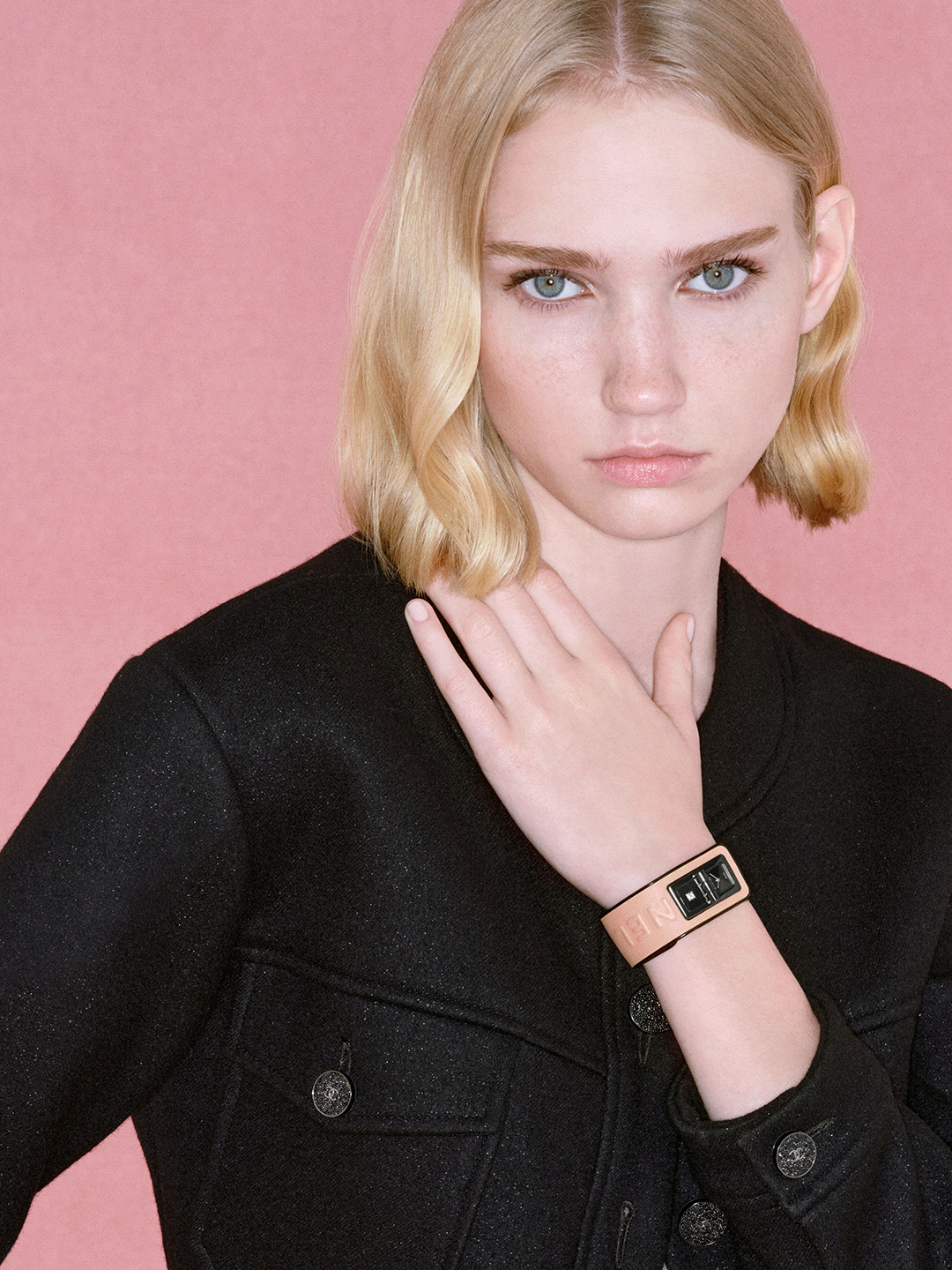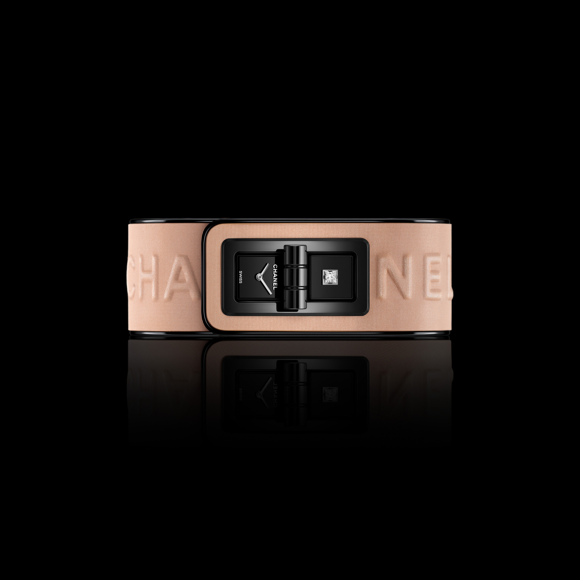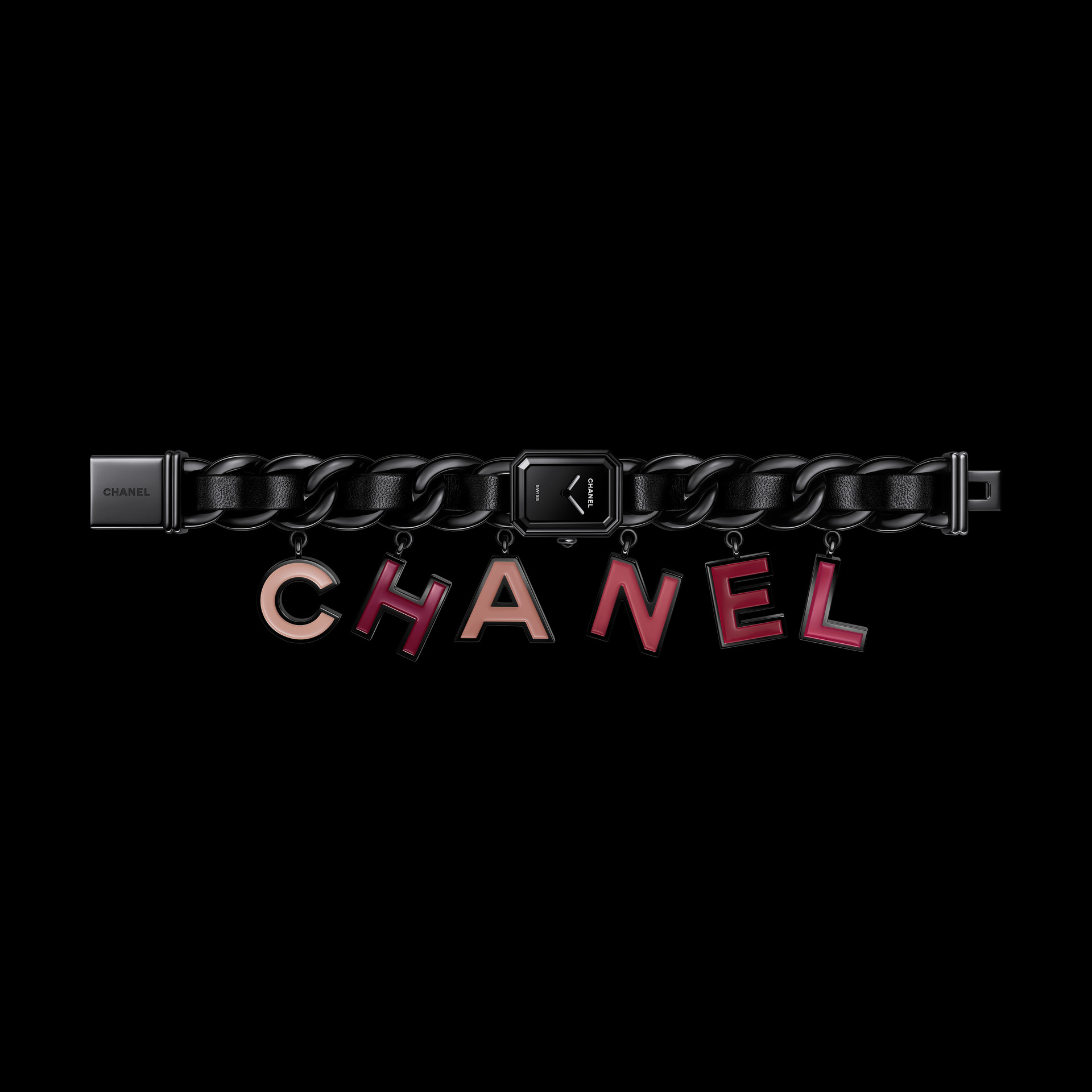 除了以上表款, 本次的 BLUSH 系列中还有许多以不同概念、设计和工艺共融的腕表作品。比如 PREMIÈRE CHARMS BLUSH 便以手工漆绘的 “CHANEL” 拼写挂饰,带来强烈的视觉感。 PREMIÈRE BLUSH 则以铐式手镯腕表展现粉与红色唇膏的渐变色调, CODE COCO BLUSH 将腕表以压印技术呈现品牌标志并采用旋转扣设计,都展示了对本系列主旨源源不绝的灵感创意。