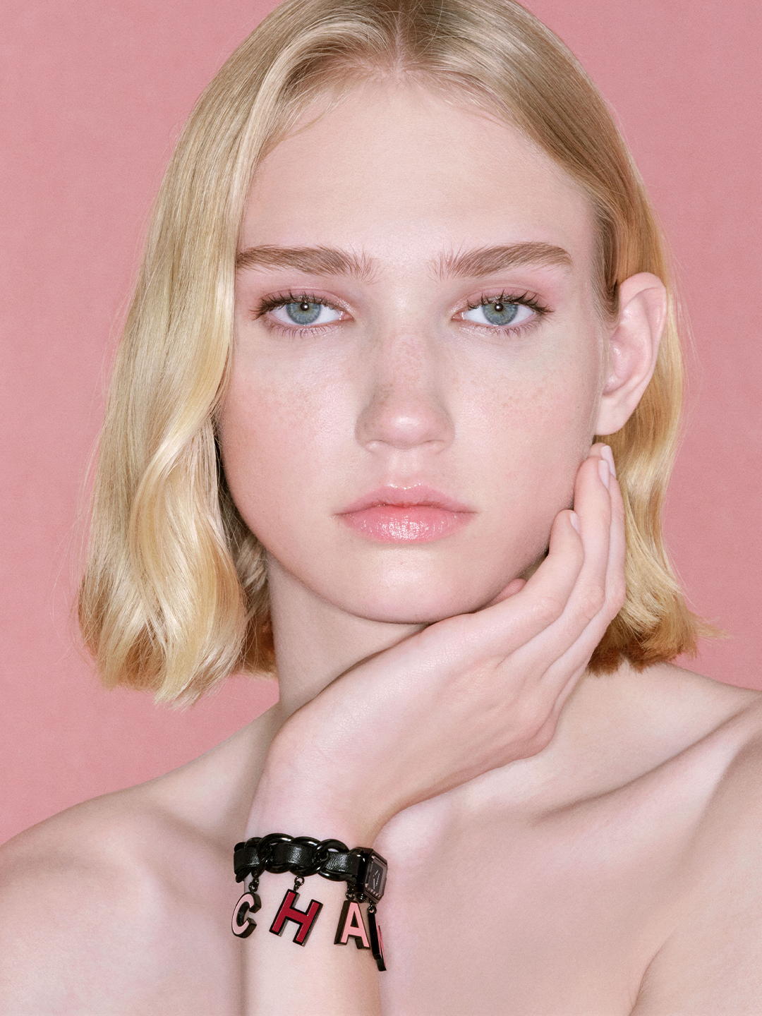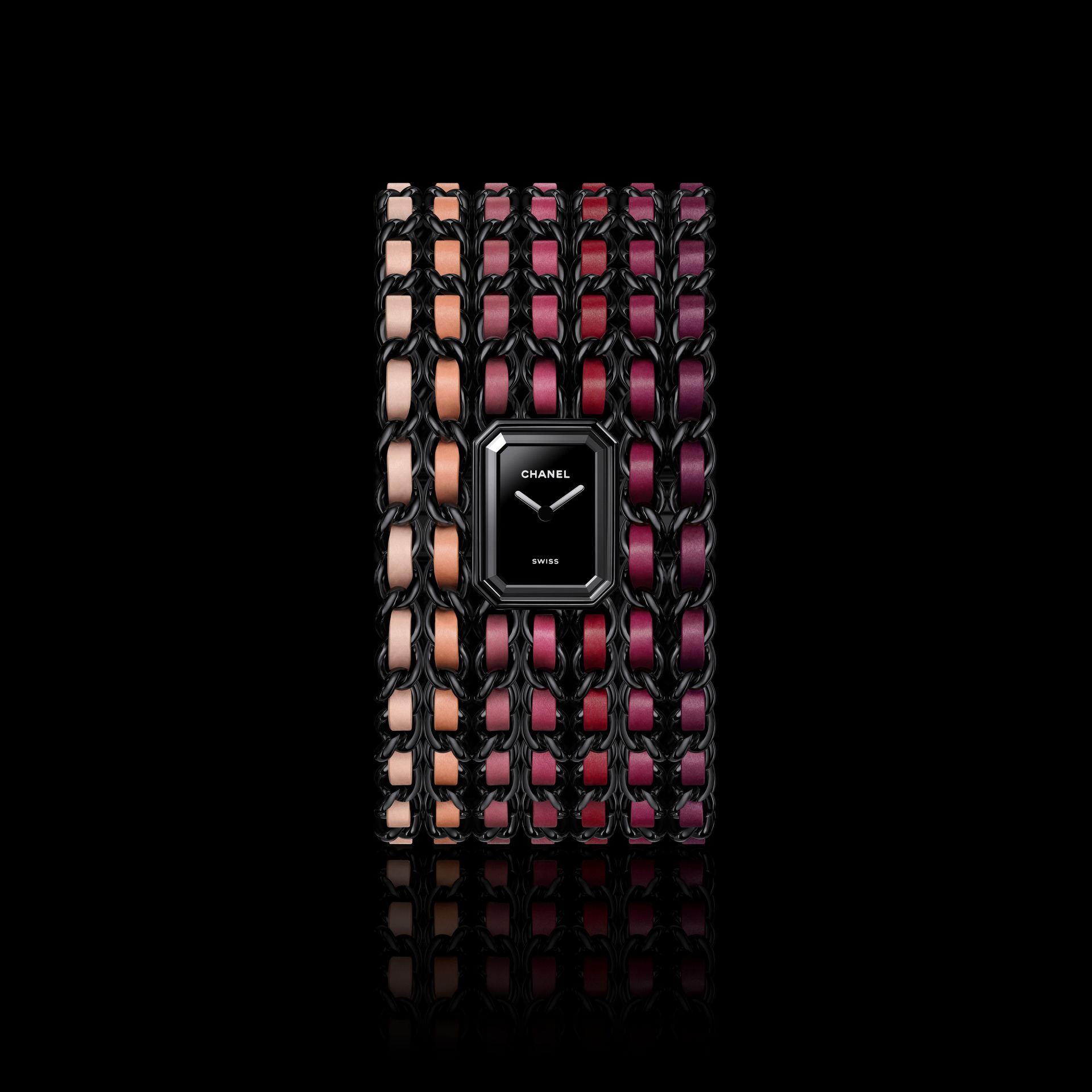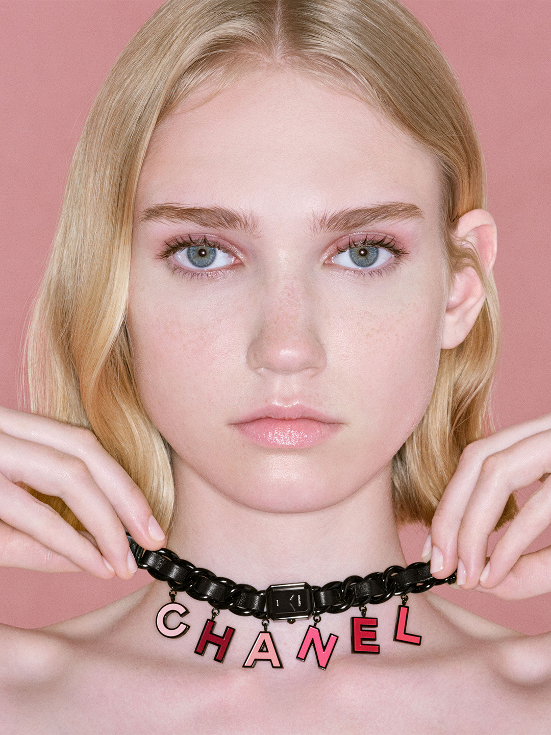 除了以上表款, 本次的 BLUSH 系列中还有许多以不同概念、设计和工艺共融的腕表作品。比如 PREMIÈRE CHARMS BLUSH 便以手工漆绘的 “CHANEL” 拼写挂饰,带来强烈的视觉感。 PREMIÈRE BLUSH 则以铐式手镯腕表展现粉与红色唇膏的渐变色调, CODE COCO BLUSH 将腕表以压印技术呈现品牌标志并采用旋转扣设计,都展示了对本系列主旨源源不绝的灵感创意。