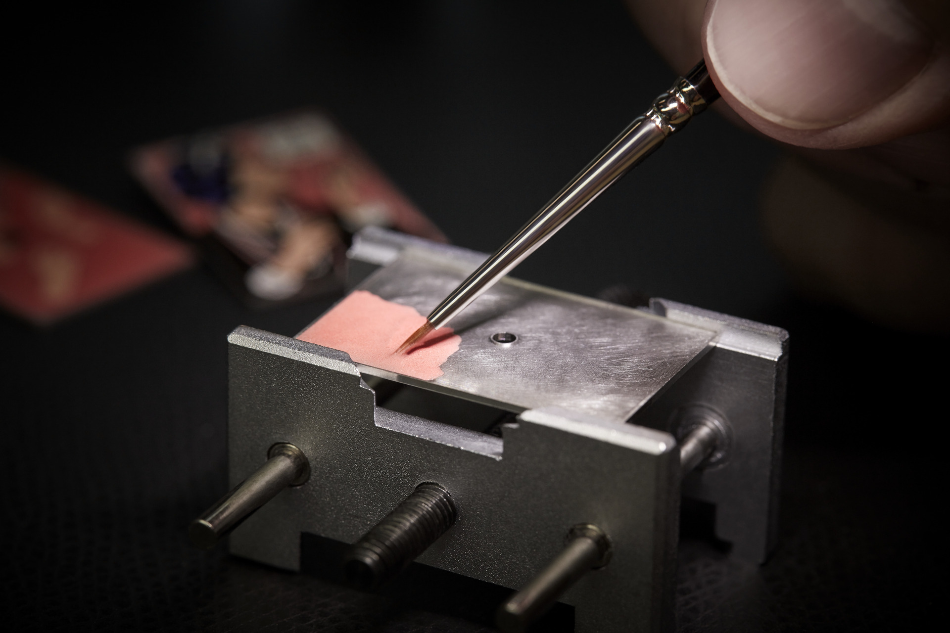 大明火珐琅工艺是极为精细的传统工艺,将珐琅粉与介质混合后通过画笔绘制于表盘上,并在高温下烧制,需要分毫不差的控制与调配,才能呈现理想中的色彩。而拓印工艺是制表工匠特别采用的间接印刷技术,香奈儿腕表创意工作室开发了12块模板,分层压印模板,最后以6种鲜明的颜色呈现香奈儿女士的风采,它也同时彰显了 BLUSH 系列腕表对精湛工艺的实验性与高度追求。