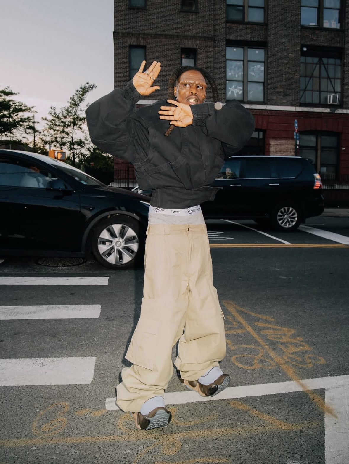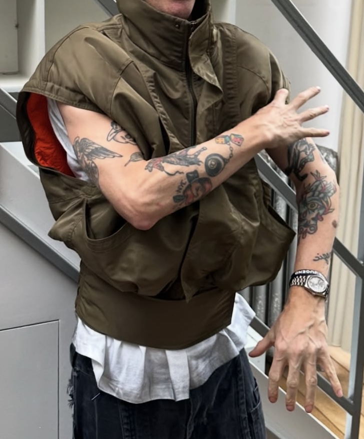 秀场之外,品牌也已经孕育出一些极具辨识度的热门款式,Bomber Balloon Jacket 便是代表之一,拥有充气感的袖子、收紧的腰身和可拆卸的设计,兼具结构感与变形潜力。迷彩套装则是另一组热门单品,在常见的军装风格中加入材质对比和版型重构,此外那些带有做旧处理的卫衣和宽松但挺阔的长裤也是街头玩家们的首选单品,在社交媒体上频频出现。
