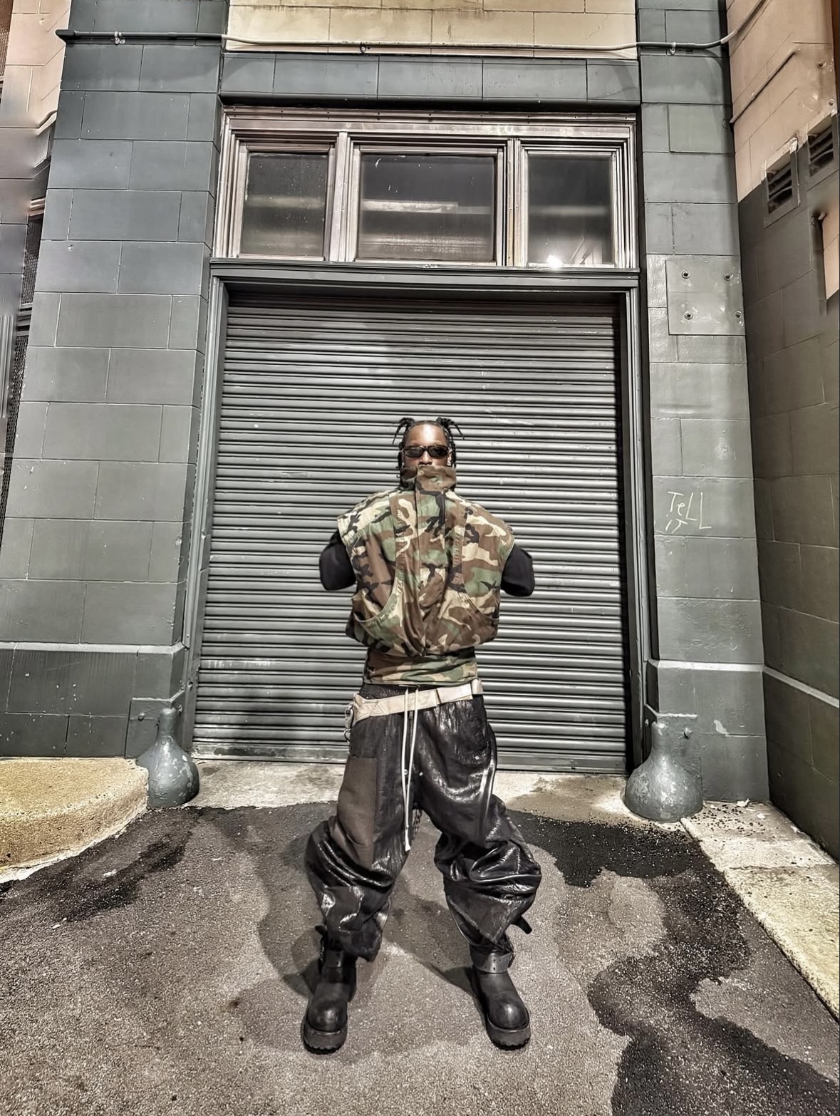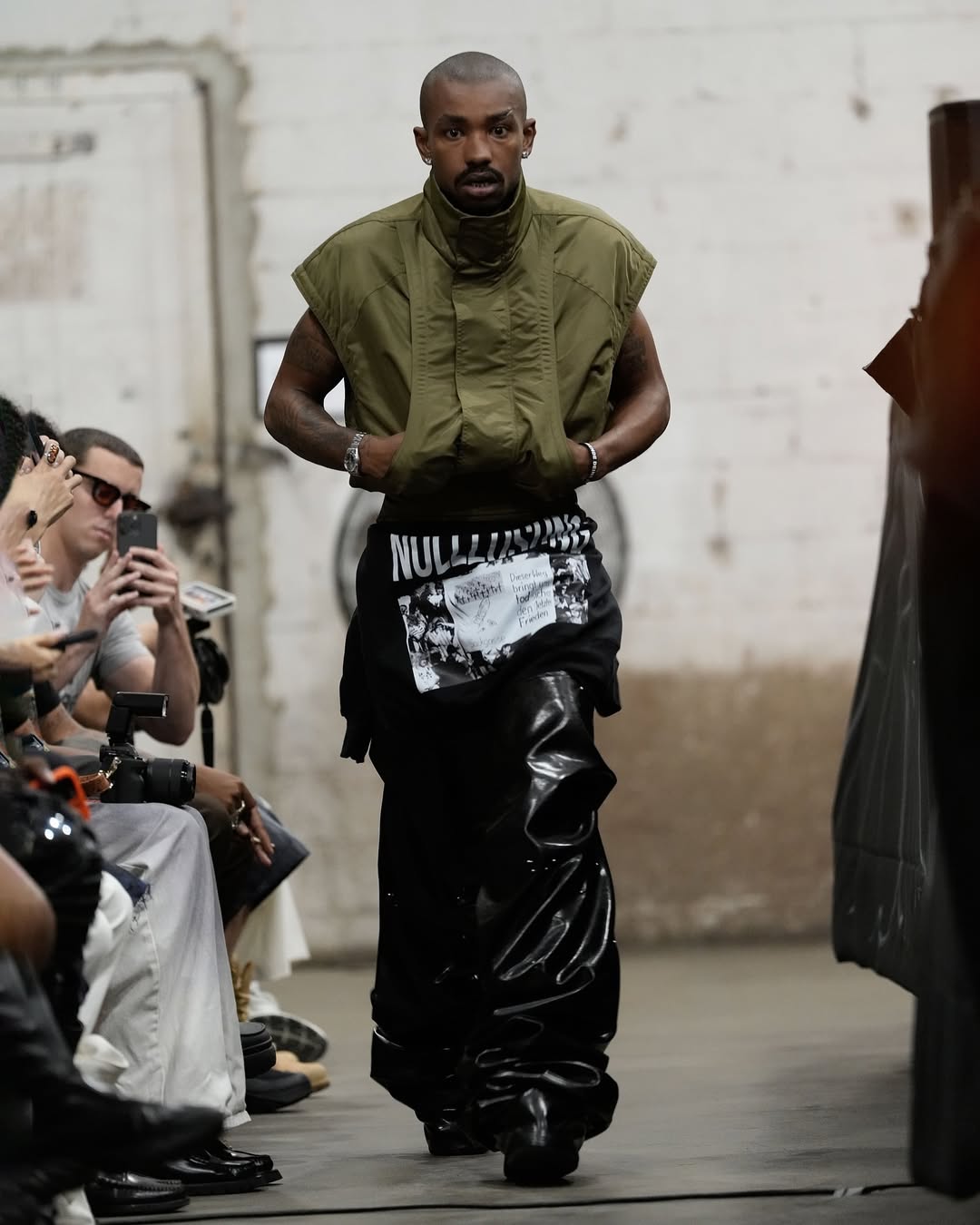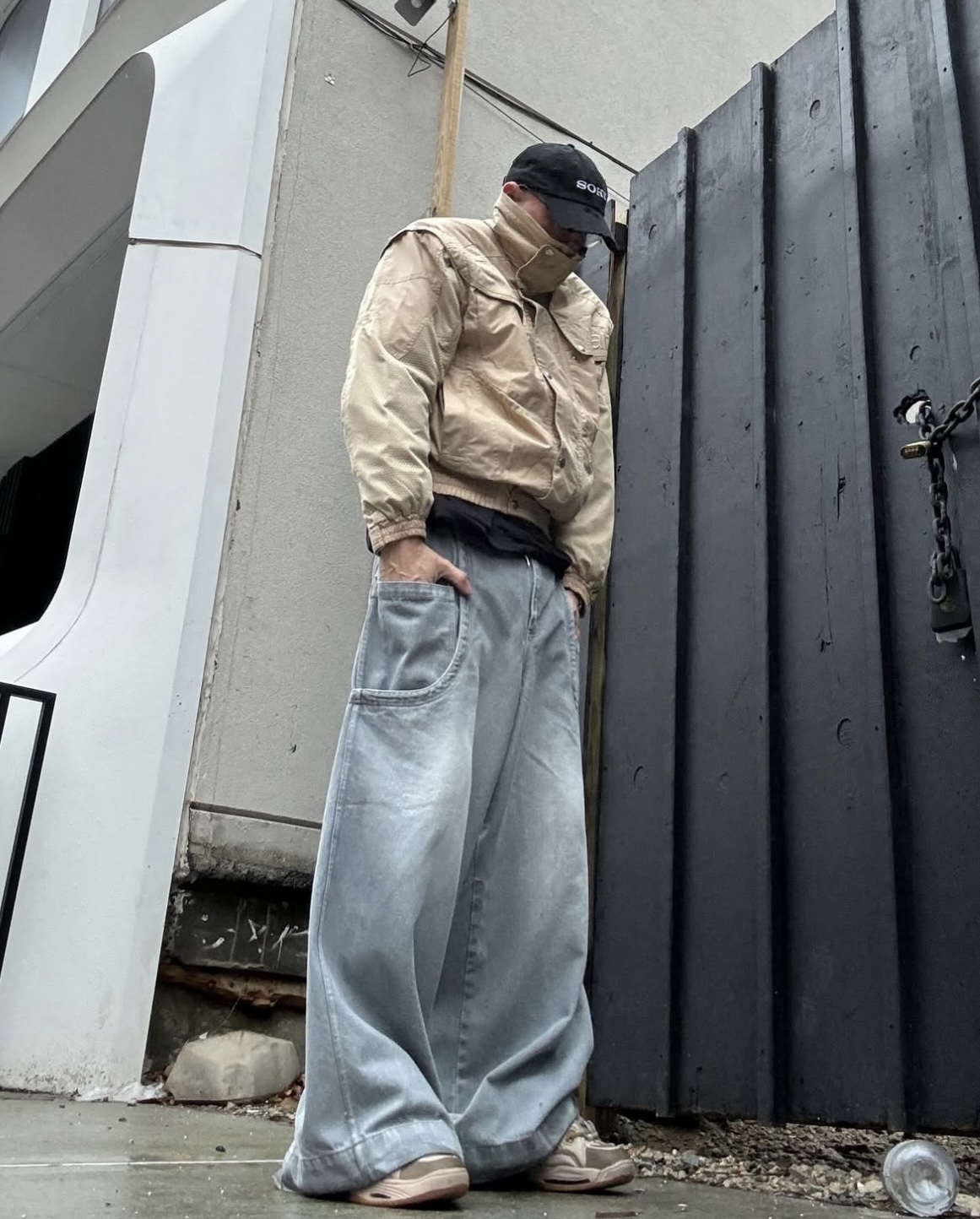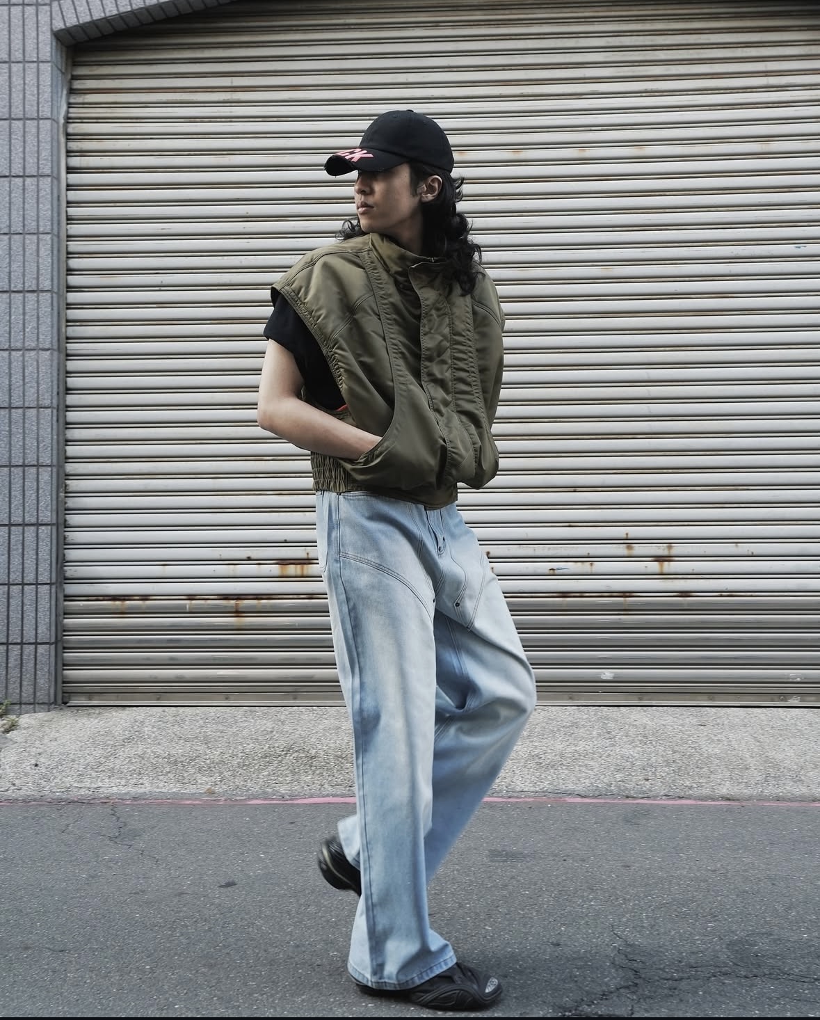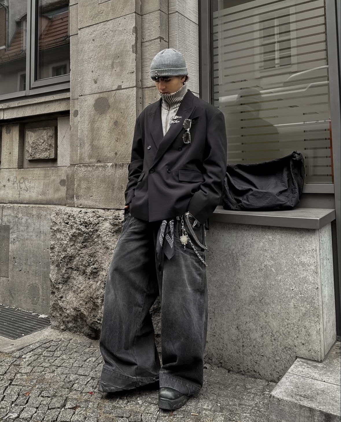 那些大廓形外套、锋利的肩线、做旧的皮革拼接、甚至带点破坏感的印花,在街头风格背景下呈现了更具实验性的表达。Ulmer 的灵感来自多个维度,例如成长中的德国文化背景,还有对日本先锋时尚的欣赏。
