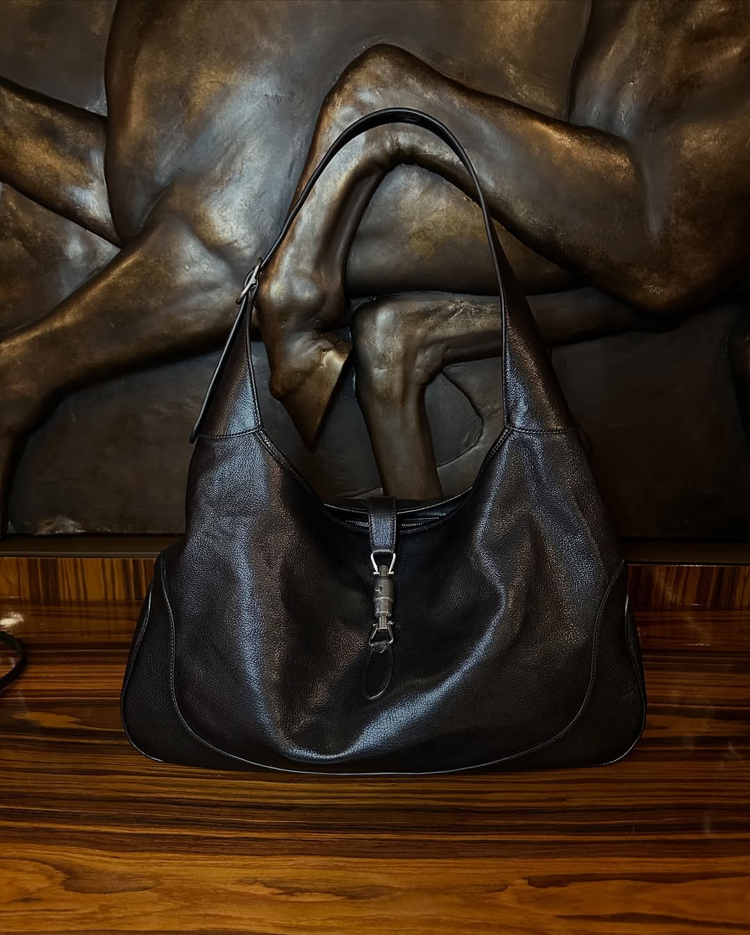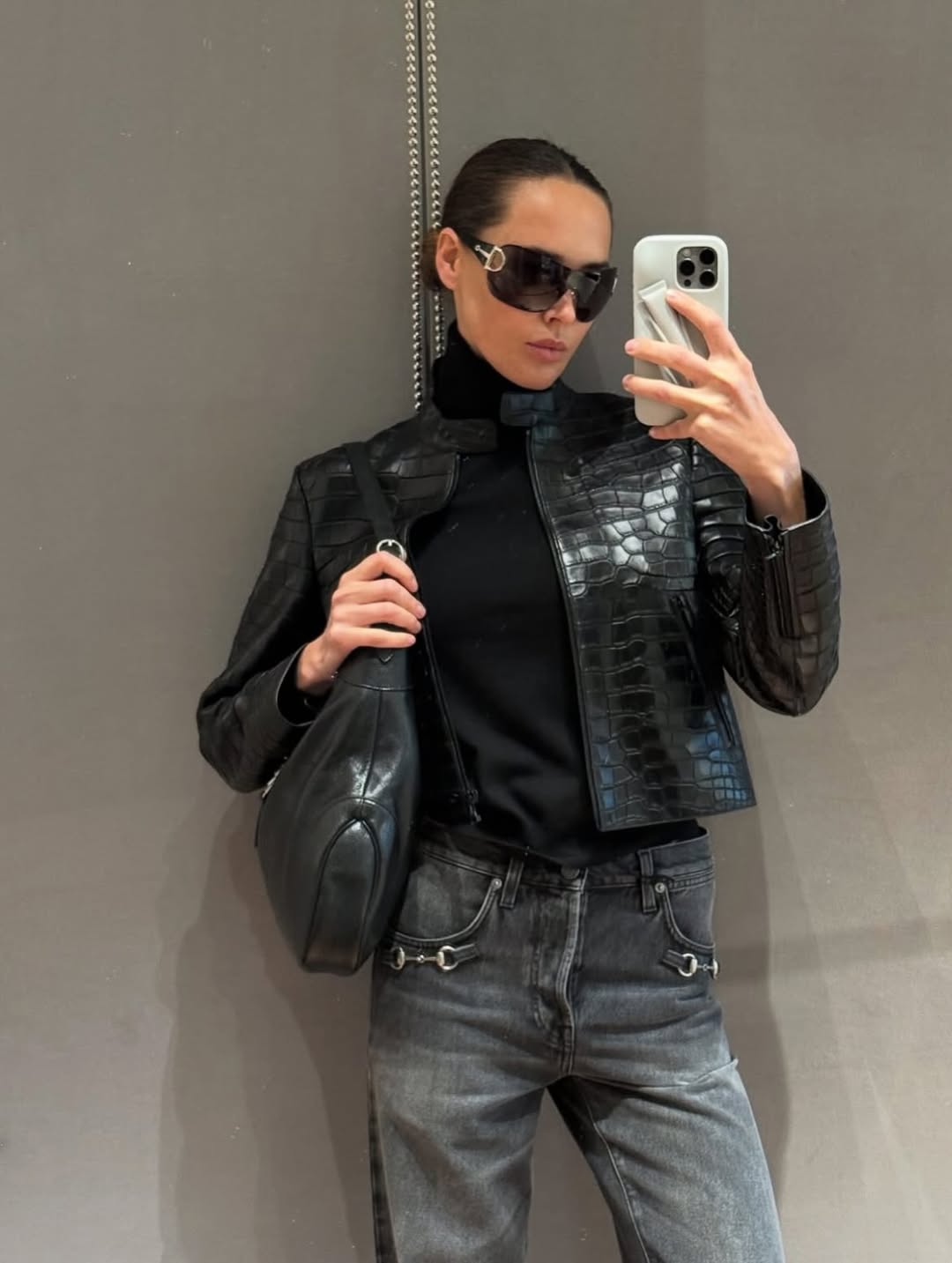 在新的单品阵列中,符合日常且驾驭轻松的皮夹克和牛仔裤组合,所营造出的造型视觉与 BFRND 提前曝光的造型感一致,进一步证实了「审美教育」的策略,也被认为是「巴味」到「G味」的过渡单品。而白色高筒运动鞋、旧化和鳄鱼皮 Jackie 手袋,以及部分首饰也有望成为热门单品。