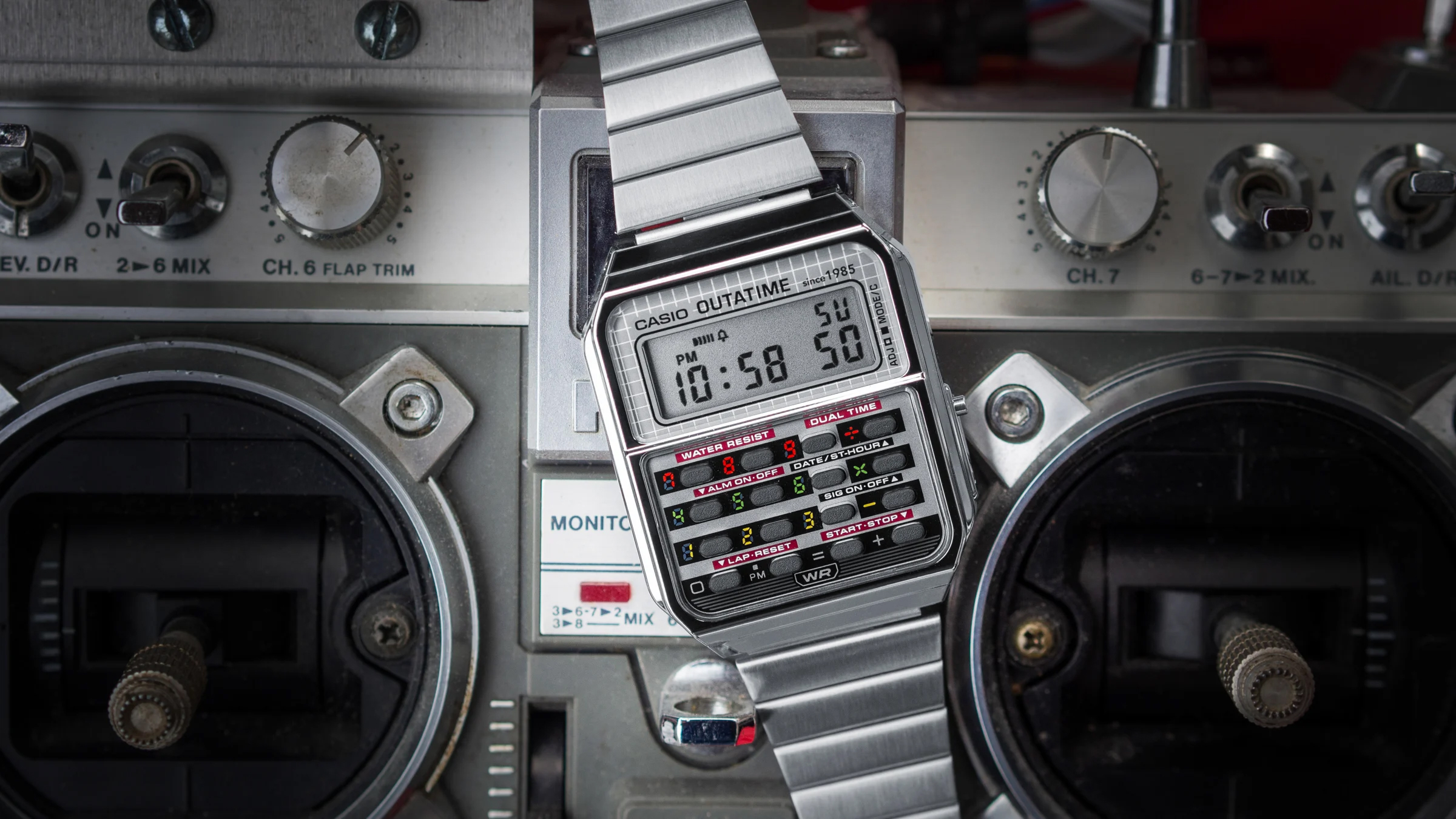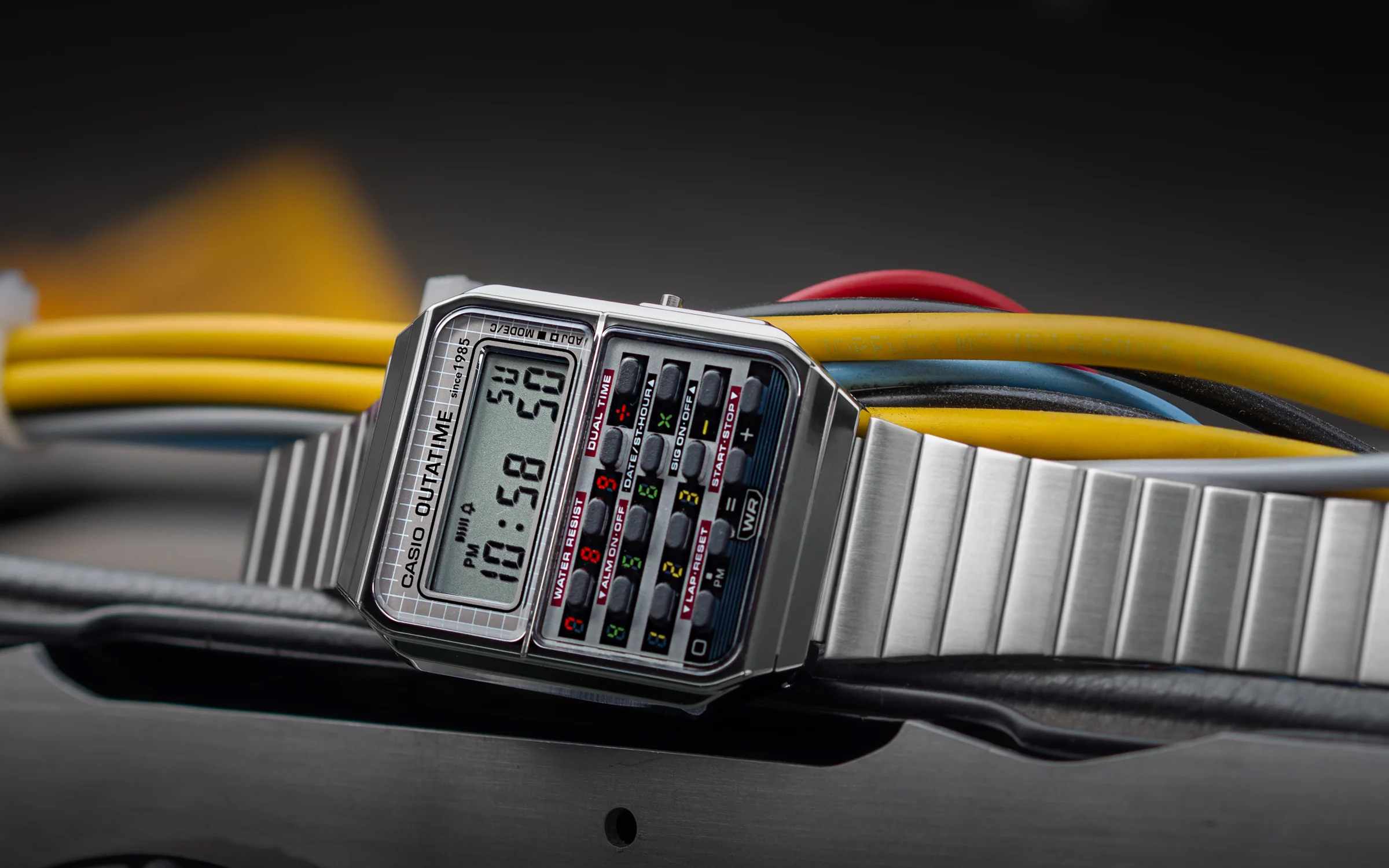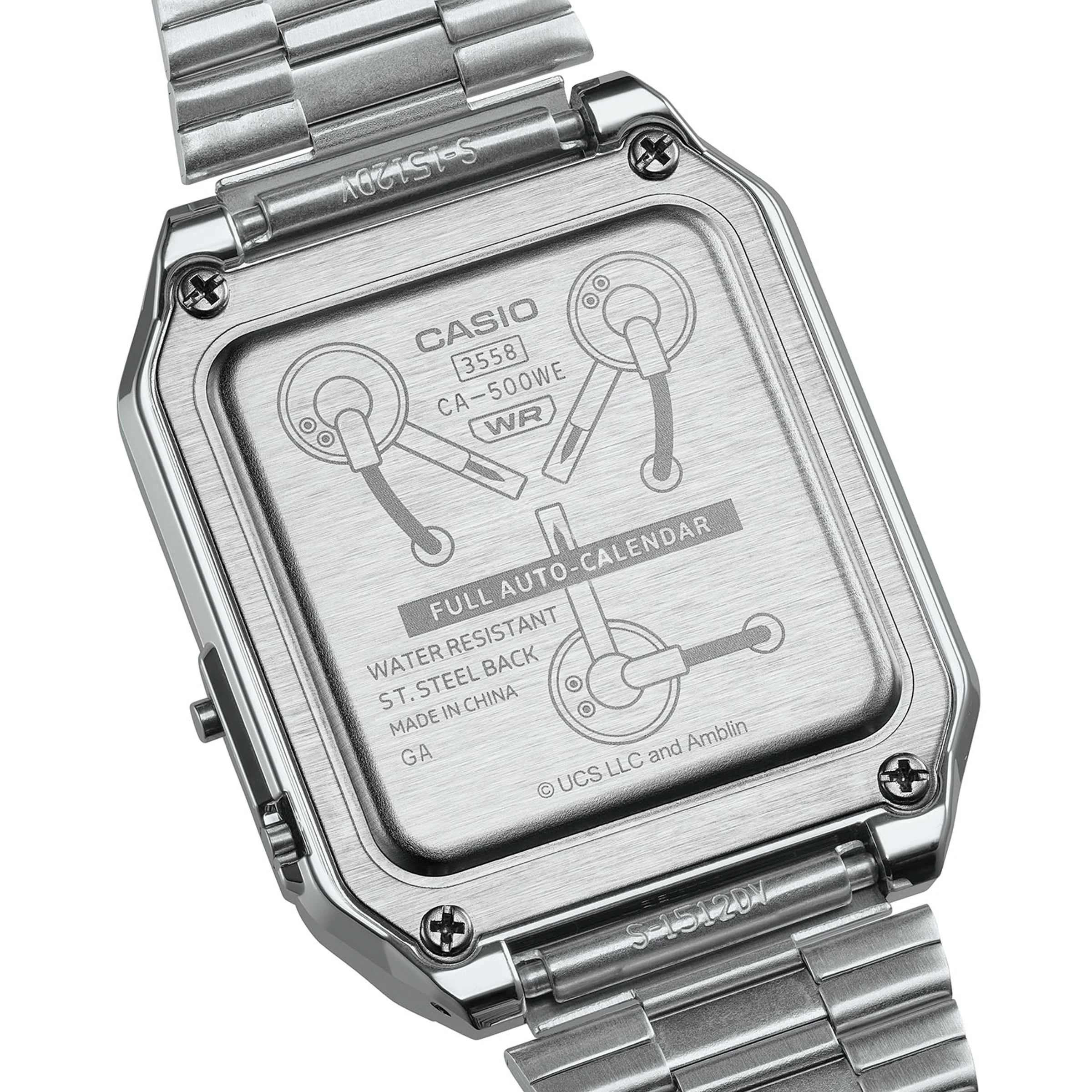 近日,CASIO 推出《回到未来》40 周年联名腕表 CA-500WEBF,致敬影史经典时光旅行主题。腕表以 1980 年代畅销款 CA-500 为原型,表盘饰有时光车尾灯格纹与「OUTATIME」车牌铭文,按钮采用红绿黄三色对应影片中时间回路装置。表背镌刻通量电容器图案,表扣点缀电影标志,深度融合影迷情怀与复古科技美学。据悉该腕表定价 17,600 日元,将于 10 月 21 日登陆 CASIO 授权零售商及官方线上商店,感兴趣的朋友不要错过了。