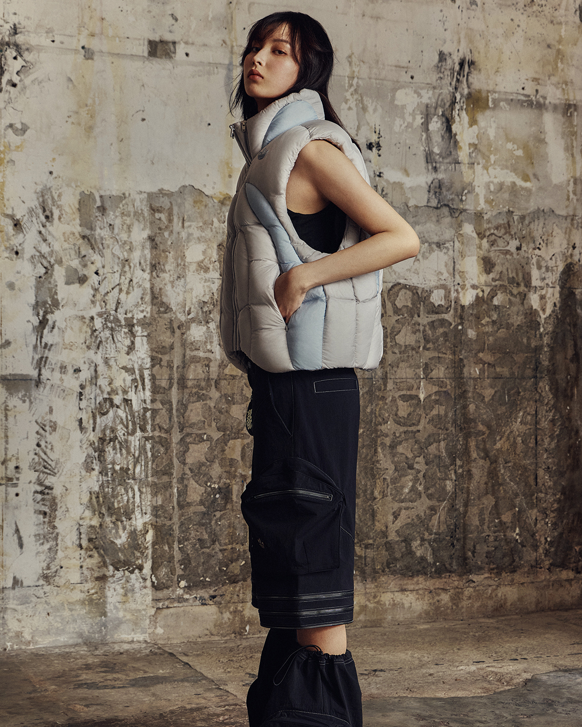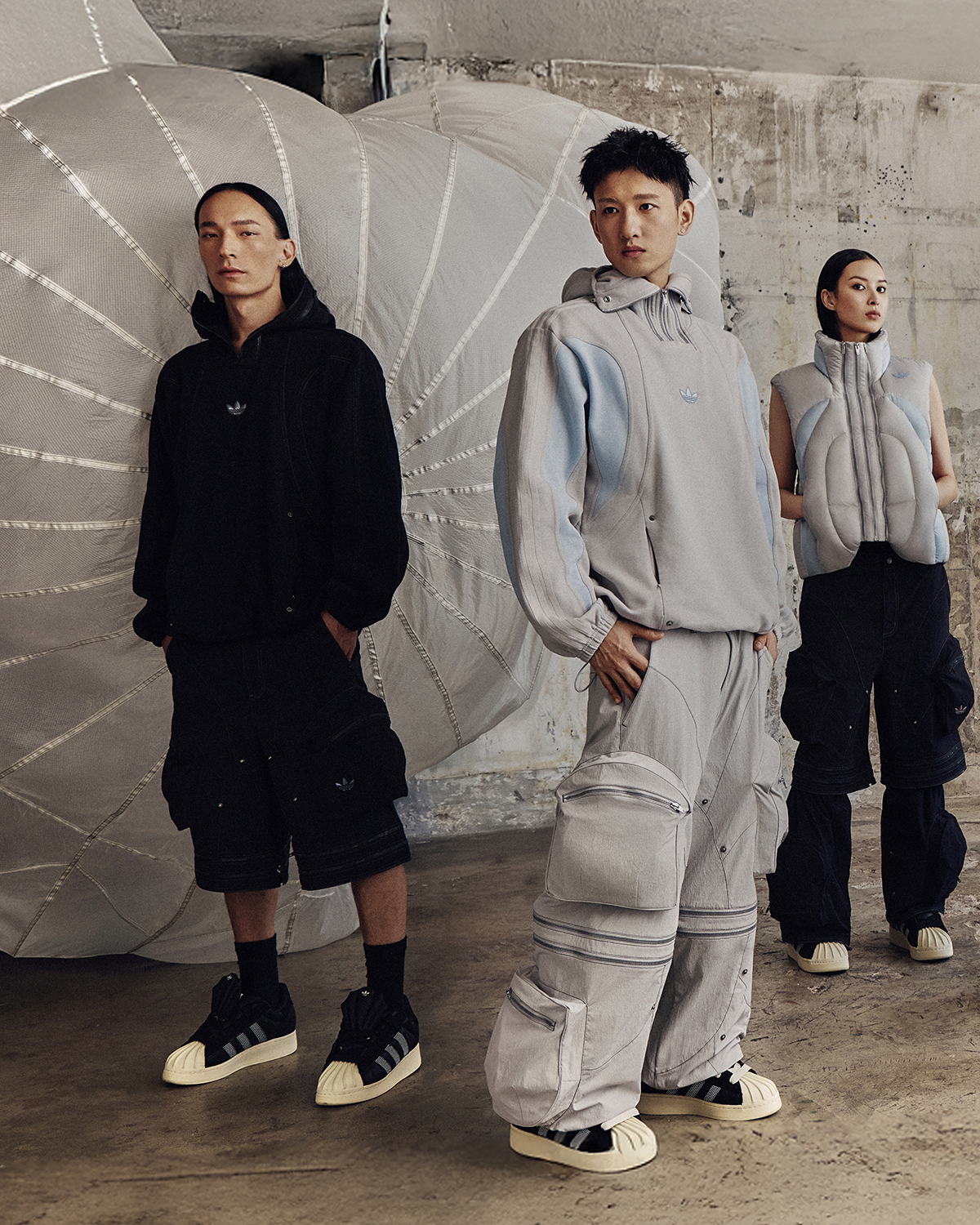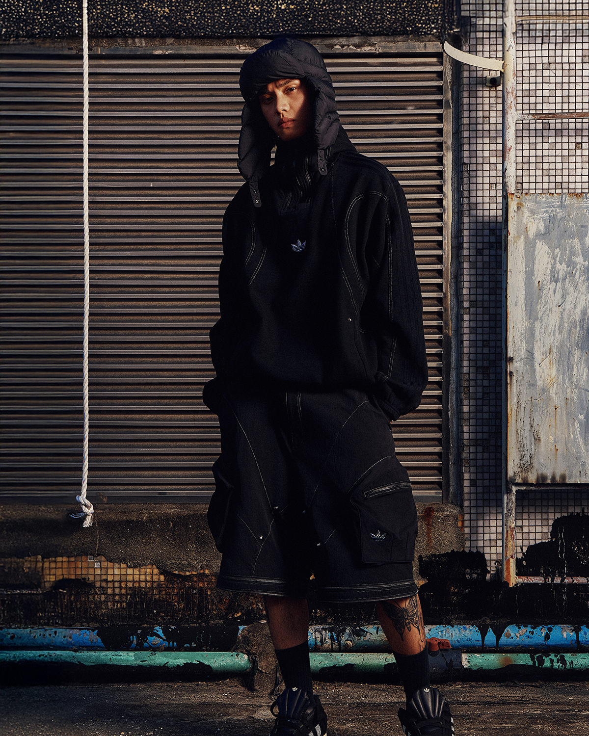 系列设计延续了 adidas Originals 一贯的都市功能性基调,同时融入 GALI 的个人风格表达。马甲以贝壳形态为灵感,廓形饱满、线条圆润,在视觉上形成强烈的包裹张力。帽衫采用半拉链设计,呼应品牌三条纹标识,下摆机能抽绳设计更贴合身体。长裤以宽松版型呈现,拼接细节结合可拆卸设计,实现长裤与短裤的自由切换。帽款则以功能性面料延续包裹主题,强化整体造型的完整度与保护感。
