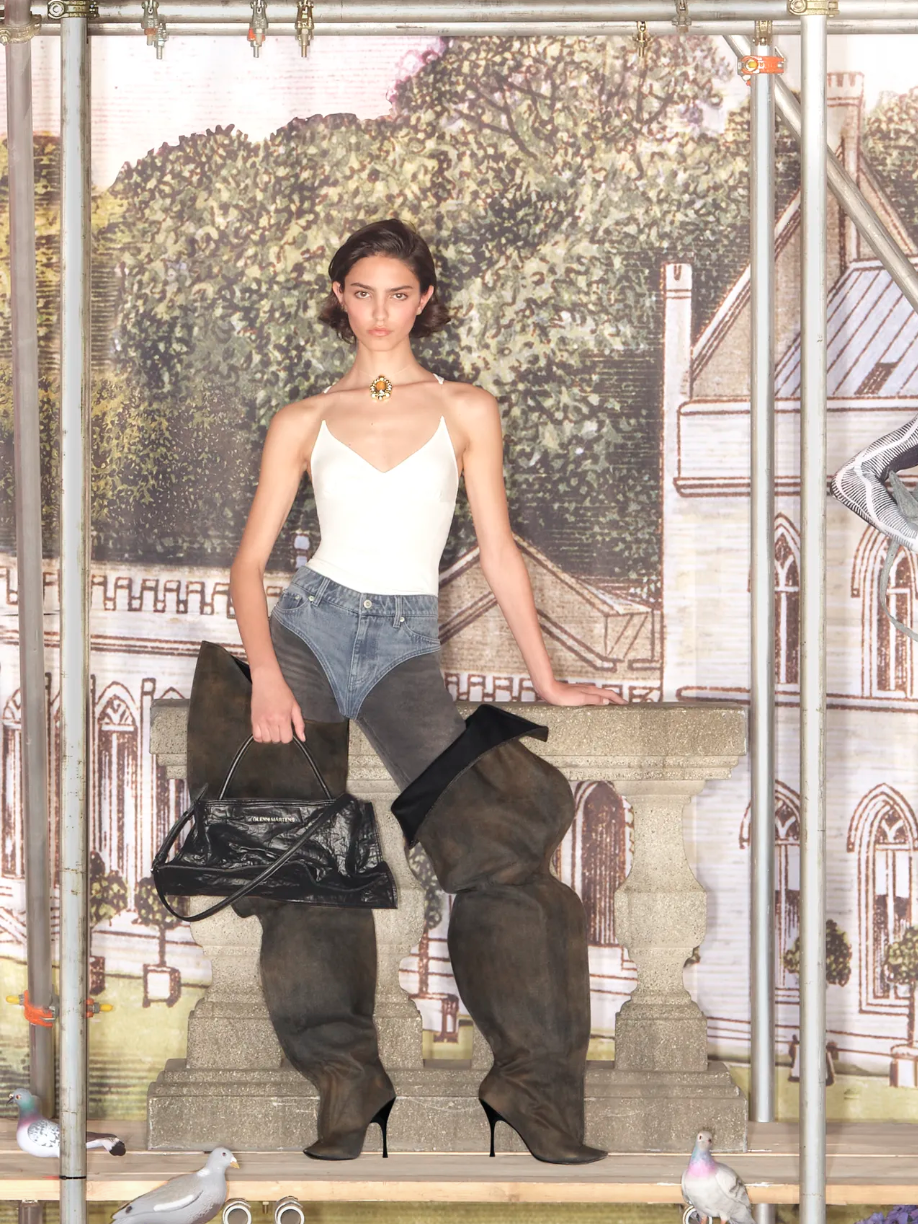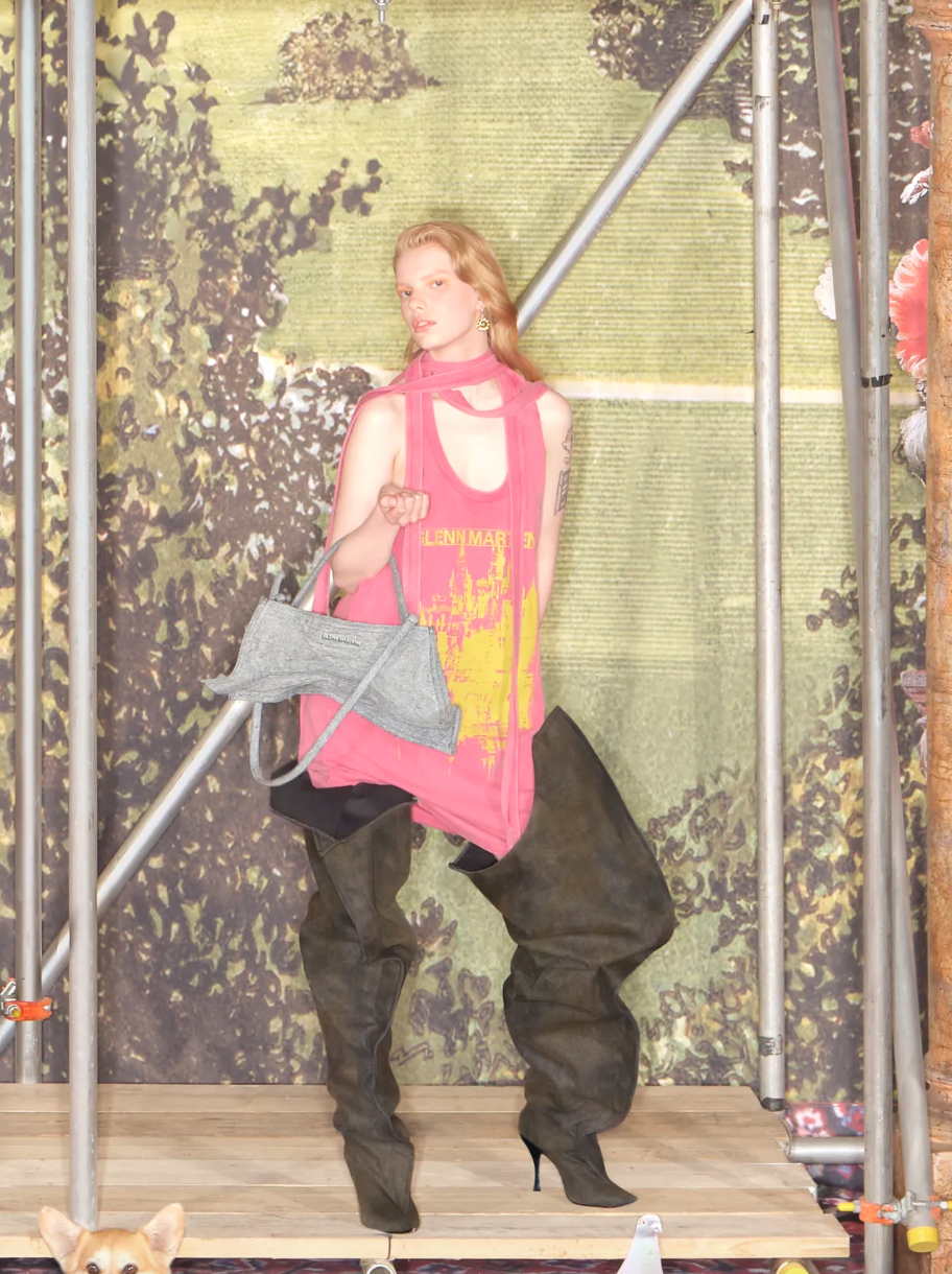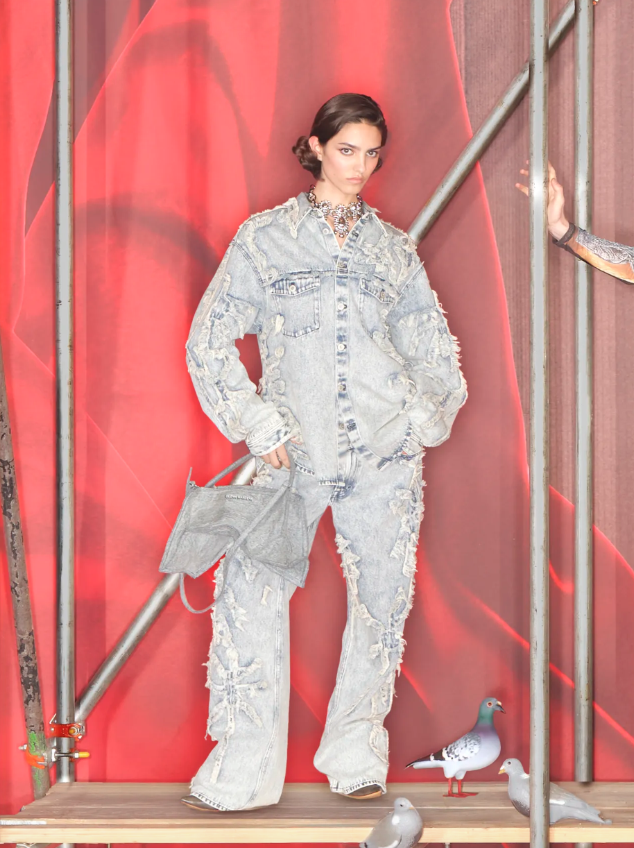 致敬了 Glenn Martens 在 Y/Project 标志性作品。