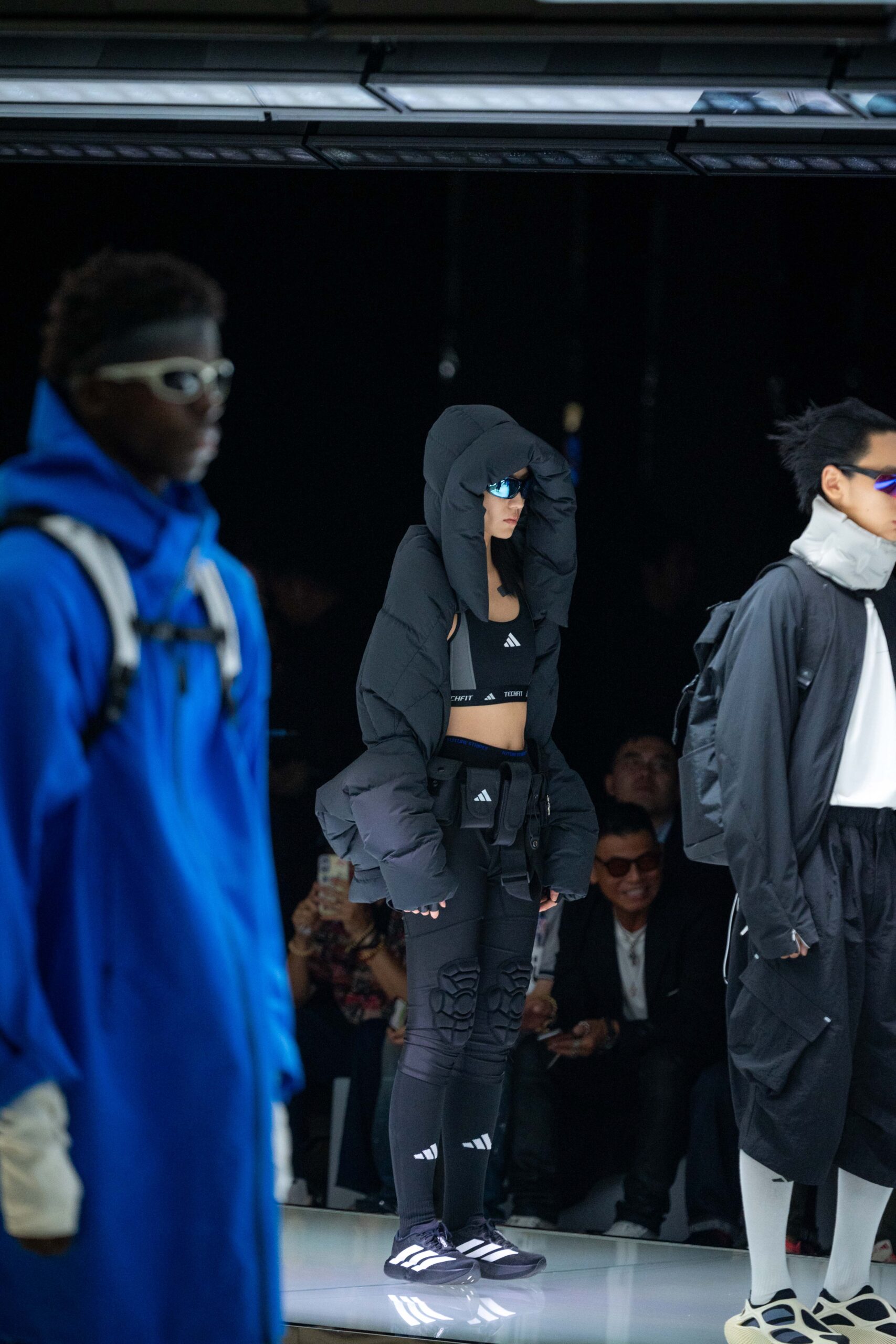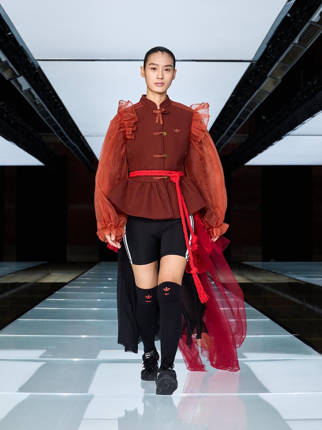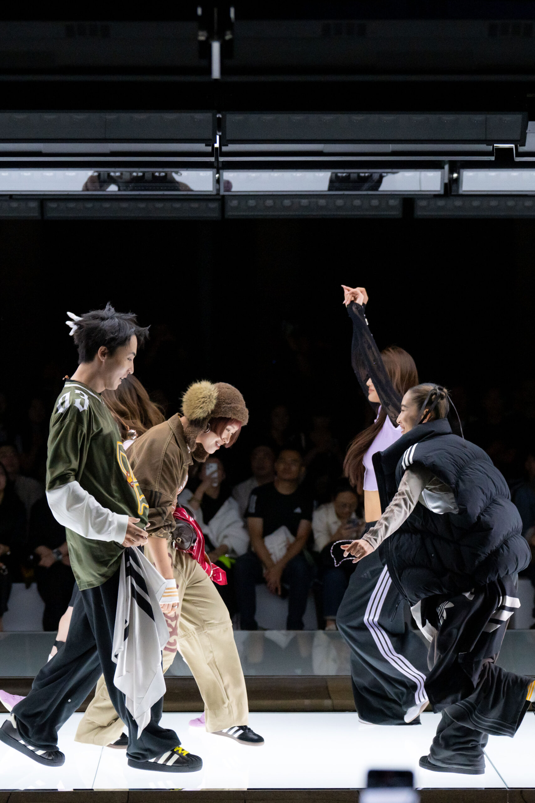 大秀以四个篇章展现品牌多维度的创意能量:第一章 FUTURE STRIPE 以未来竞速的想象与先锋的设计语言,展现品牌对未来运动的前瞻探索,演绎先锋竞速美学。MODERN CHINA 章节融合了东方哲思与本土创意力量,以当代视角重塑中国美学。DANCE CLASH 将品牌标志性三条纹元素融入舞蹈文化,在舞动节奏中释放街头能量。UNDENIABLY ADIDAS 则汇聚了本次企划中特别推出的即看即买系列以及与 GALI 共同打造的 adidas Originals PUFFY SHELL Collection by GALI 系列,延续品牌「打破边界、融合多元」的理念,诠释三条纹的无限可能。