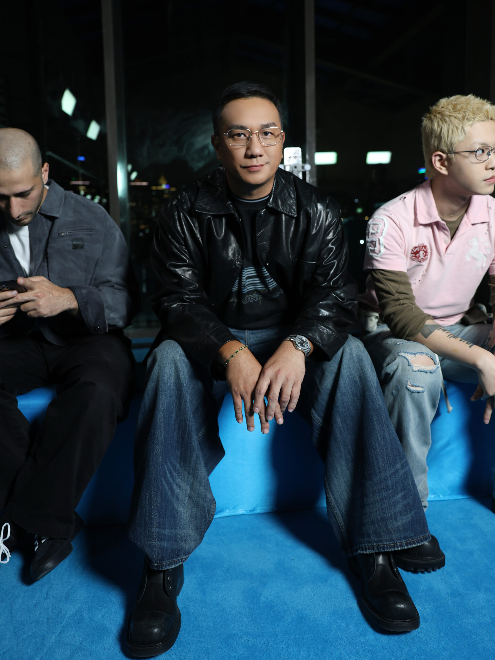 秀场将沙滩搬进粗旷的水泥空间,以高级拉绒地毯创造出一片「海洋」,用最经典的配色元素营造轻快的假日氛围。而秀道两侧的钢筋和脚手架却「不合时宜」地出现在这度假海滩,将观众瞬间拉回熟悉的城市景观。这样看似反逻辑的组合所带来的矛盾感,从更宏大的场景表达本次秀场的核心主题。本次秀场还邀请到了演员黄觉以及音乐人 Chace 来到现场,与 MASONPRINCE 在这不合常规的空间中共同「玩乐」。