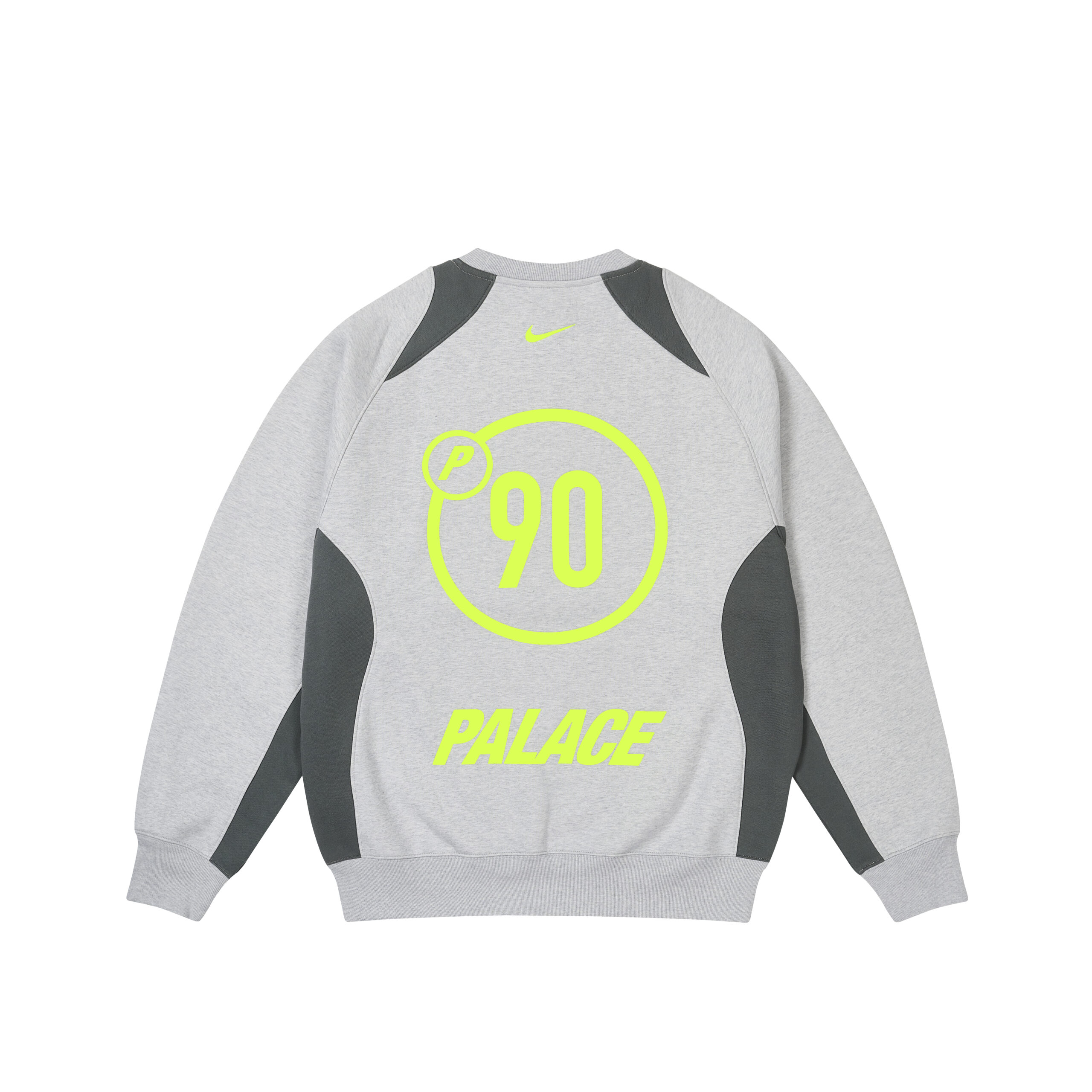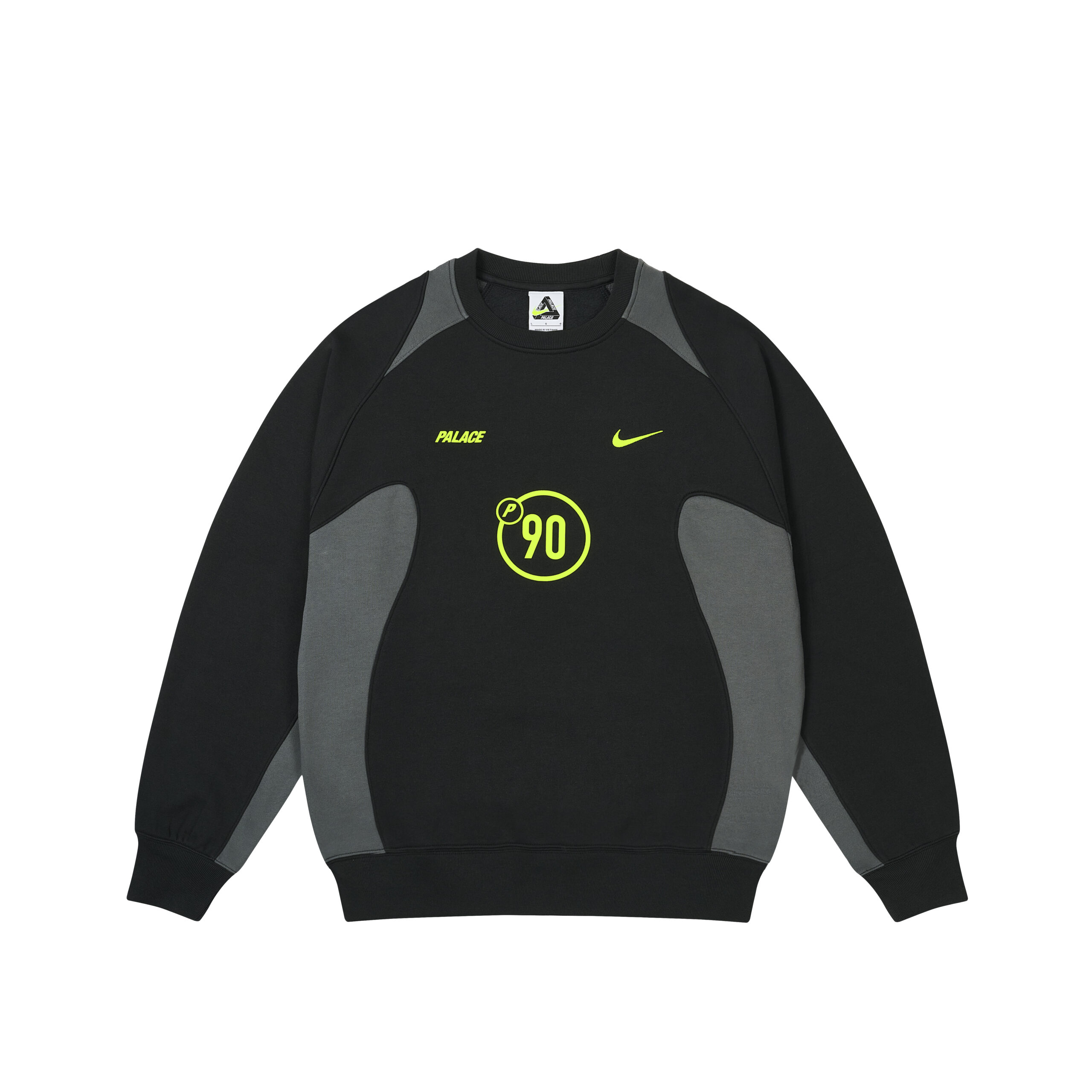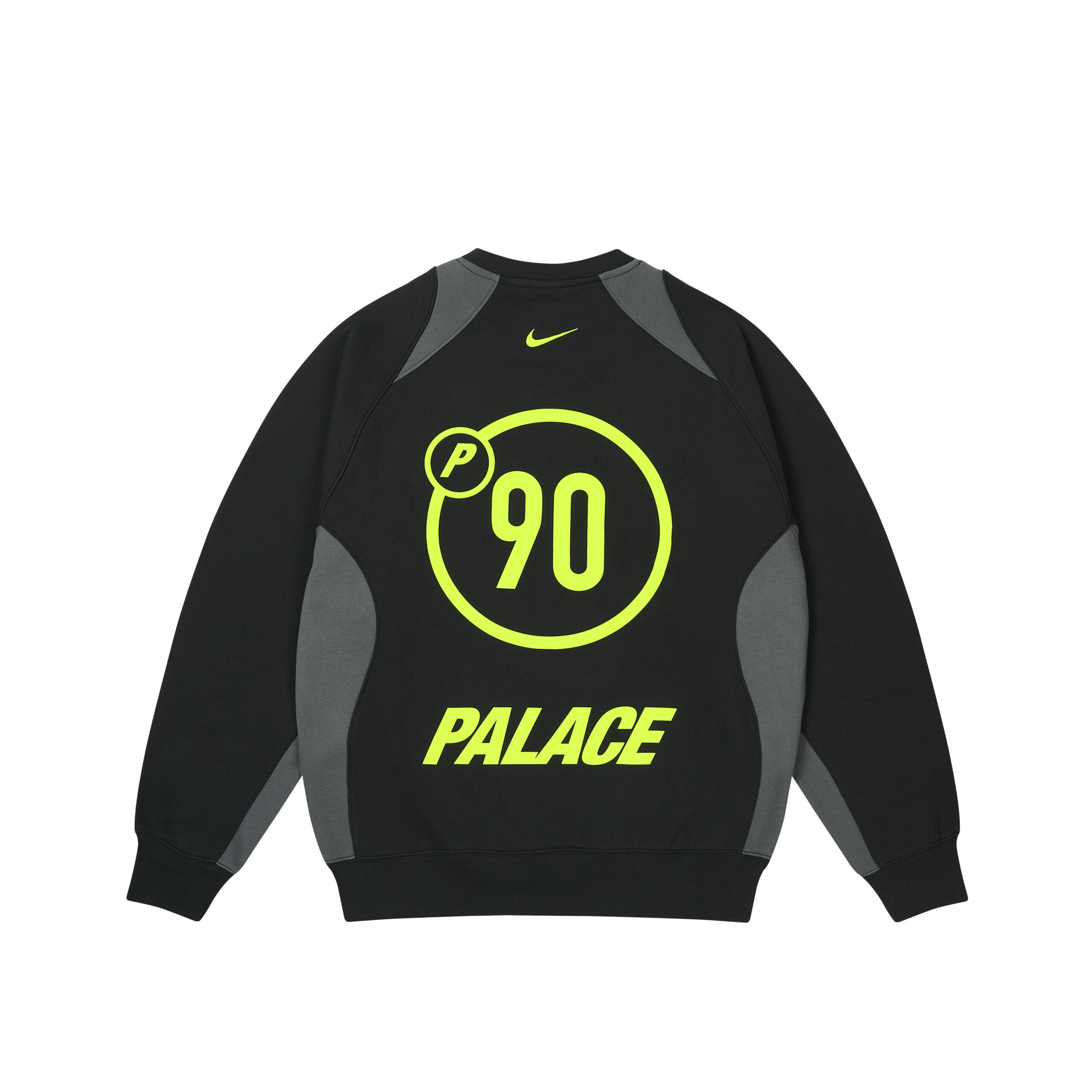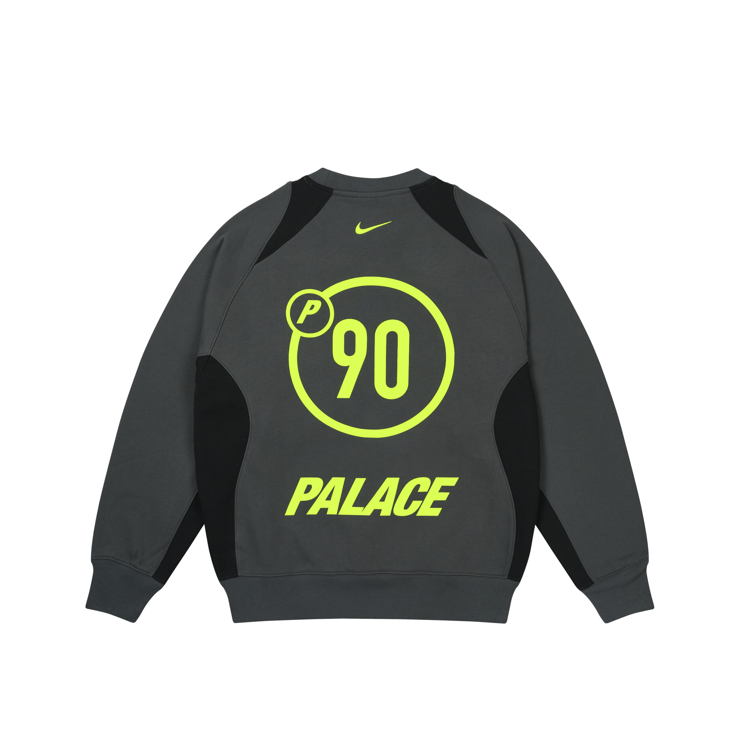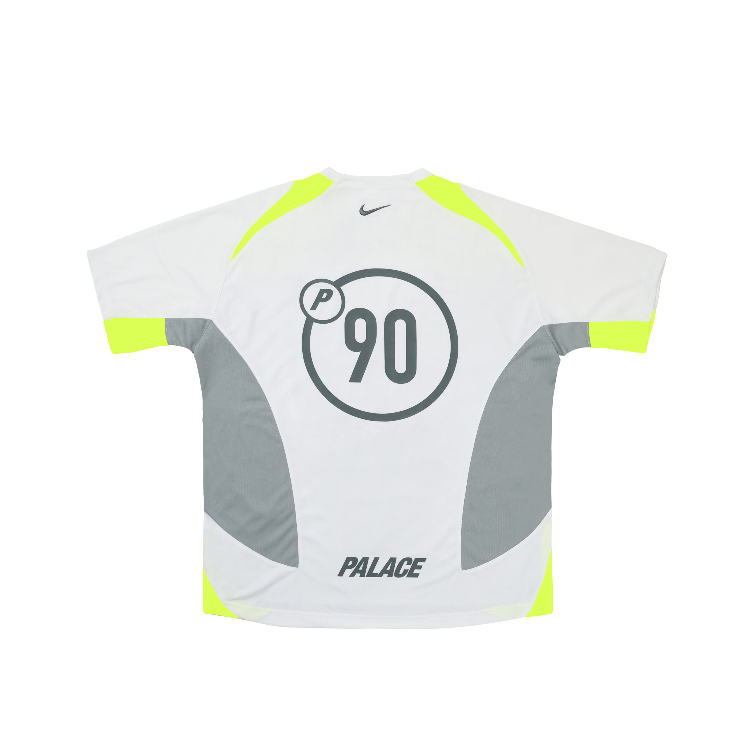PALACE 与 Nike 以 P90 系列开启合作篇章,此系列是对 2000 年代早期足球文化的大胆致敬。系列专为滑板爱好者和足球迷设计,通过 PALACE 对运动服和足球文化的独特视角,重新诠释了 Nike 的 Total90 系列产品。套装、球衣和训练鞋上都饰有 P90 图案。而标志性的连帽衫、运动服、毛衣、短裤和 T 恤则采用了 PALACE 标志性的 Tri-Ferg 标志,并搭配层叠的 Nike Swoosh 勾形标识。
