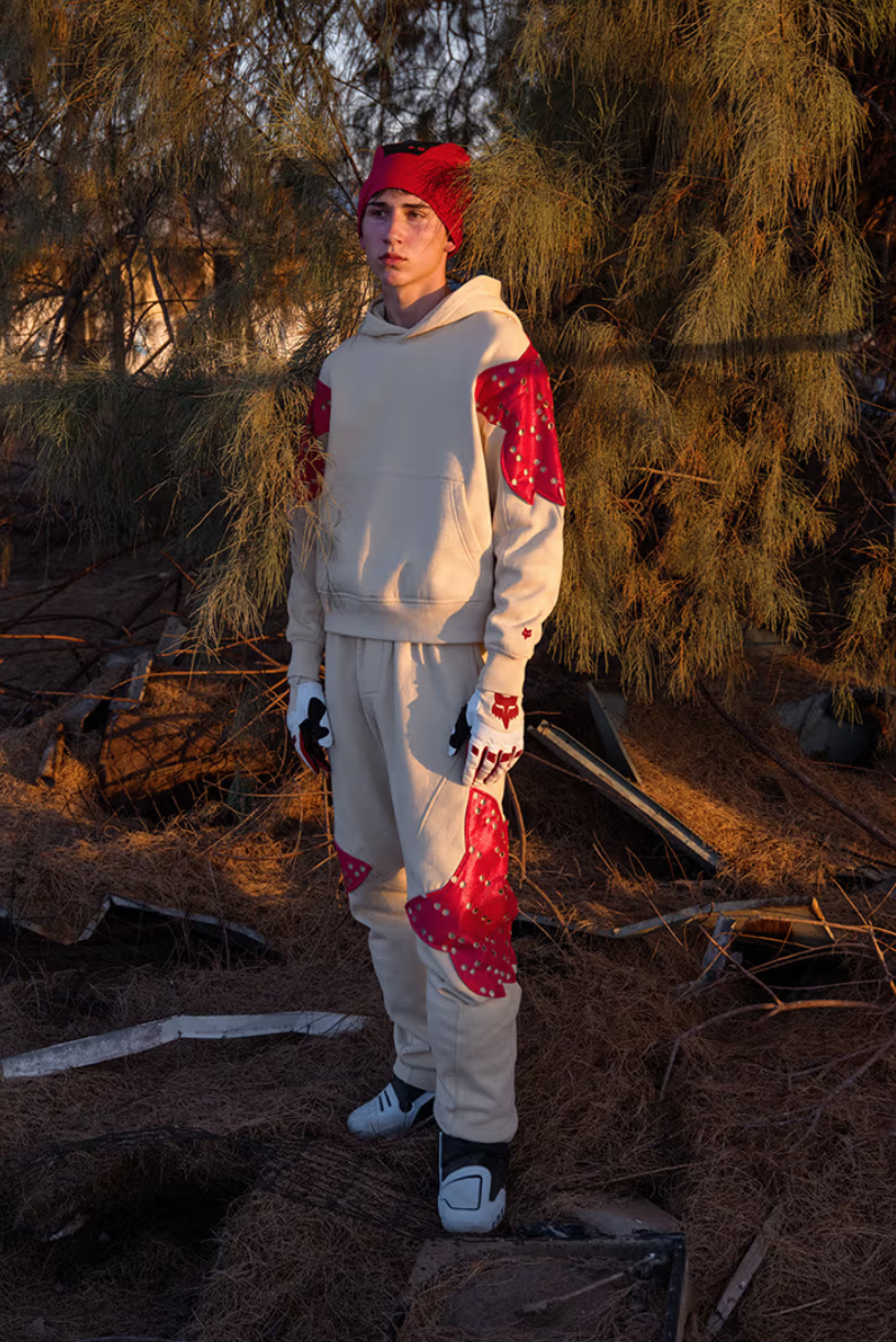 Kiko Kostadinov 再度携手 Fox Lab 推出了第二季合作。新系列进一步展现双方对摩托车越野文化的共同热爱,融合了 Fox Lab 的卓越性能传承和 Kiko Kostadinov 的实验性剪裁技艺。单品包括飞行员夹克、机车夹克、拼接罗纹上衣、抓绒连帽衫和网眼口袋衬衫,鲜艳的撞色设计与做旧工艺和透气孔纹理形成了鲜明对比。其中两款全套摩托车骑行服是本季的核心,它们分别采用黑蓝和白红配色,均以耐用的尼龙面料搭配牛皮和网眼细节,忠实还原了经典越野摩托车服结构。
