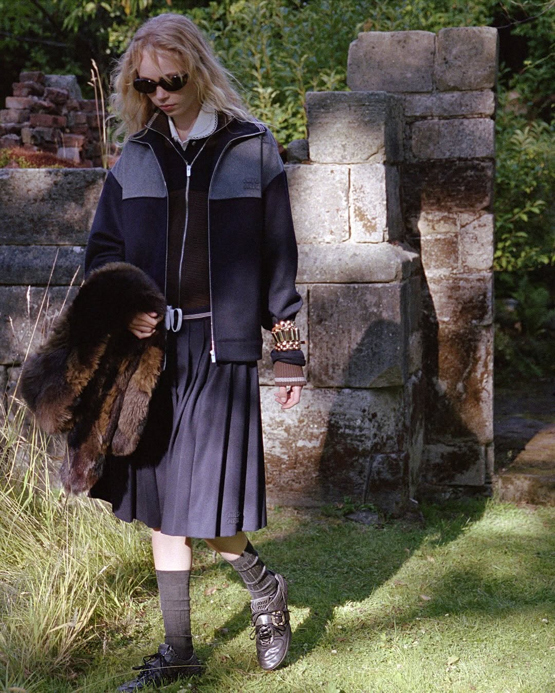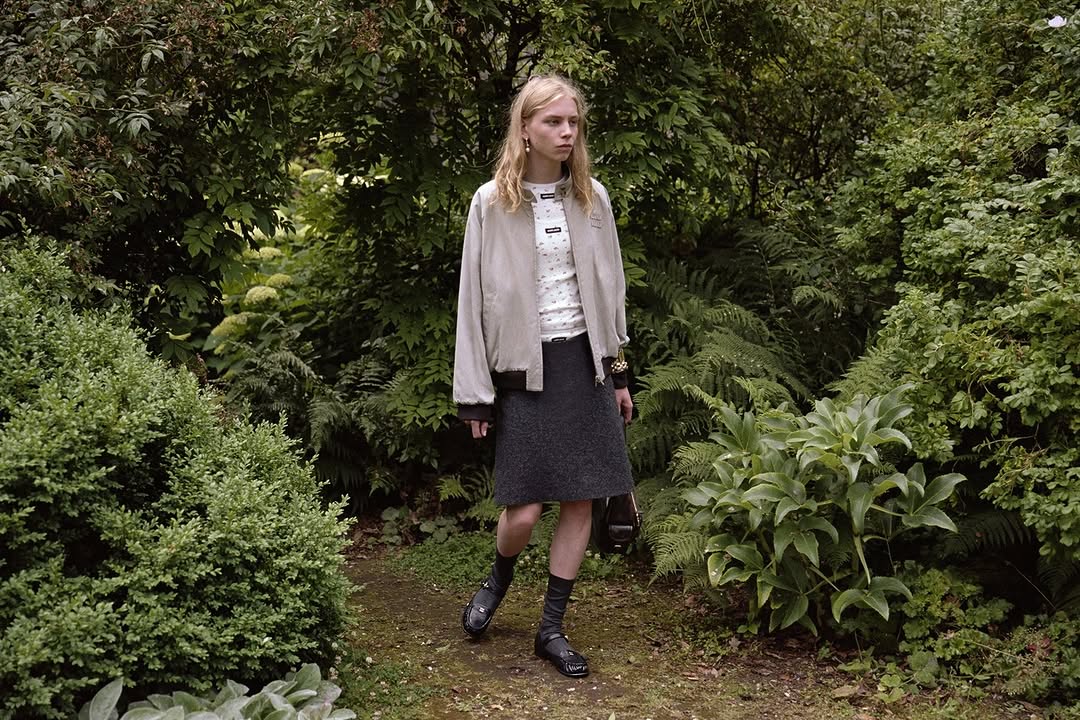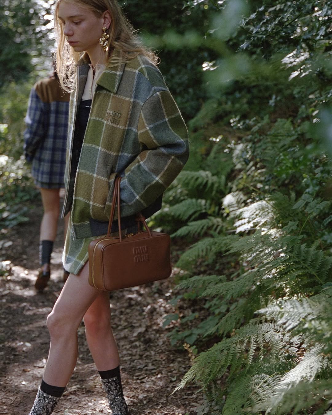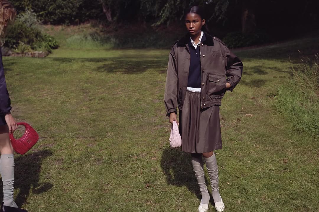 Miu Miu 近日推出全新特别企划「Automne」,由摄影师 Angela Hill 掌镜完成,以极具叙事感的视觉语言回望 1990 年代风格根基,并透过当代视角重新诠释女性气质与日常优雅。整体画面以柔和的自然光线与克制的构图为基调,由 Lotta Volkova 操刀的造型则依旧在随性与精致之间游走——哈灵顿夹克搭配羊毛裙、尼龙外套与轻盈的圆领衬衫叠穿,或以漆皮乐福鞋与罗纹袜完成造型呼应。经典的格纹呢料、微光泽缎面与中性色调在镜头下交织,延续品牌一贯的对比叙事:学院气息与叛逆精神、理性剪裁与感性质地的并置。目前该企划中亮相的单品已悉数登陆品牌官网,感兴趣的朋友不妨前去选购。