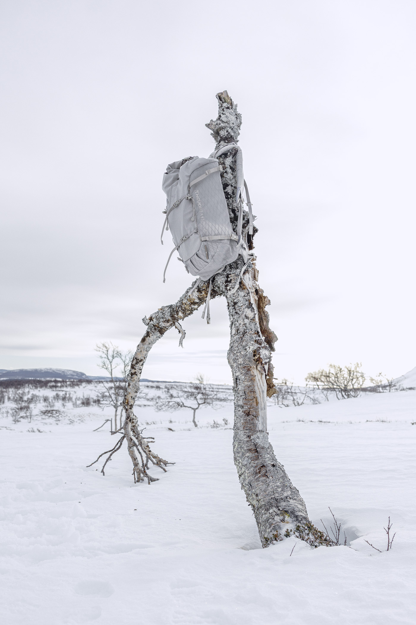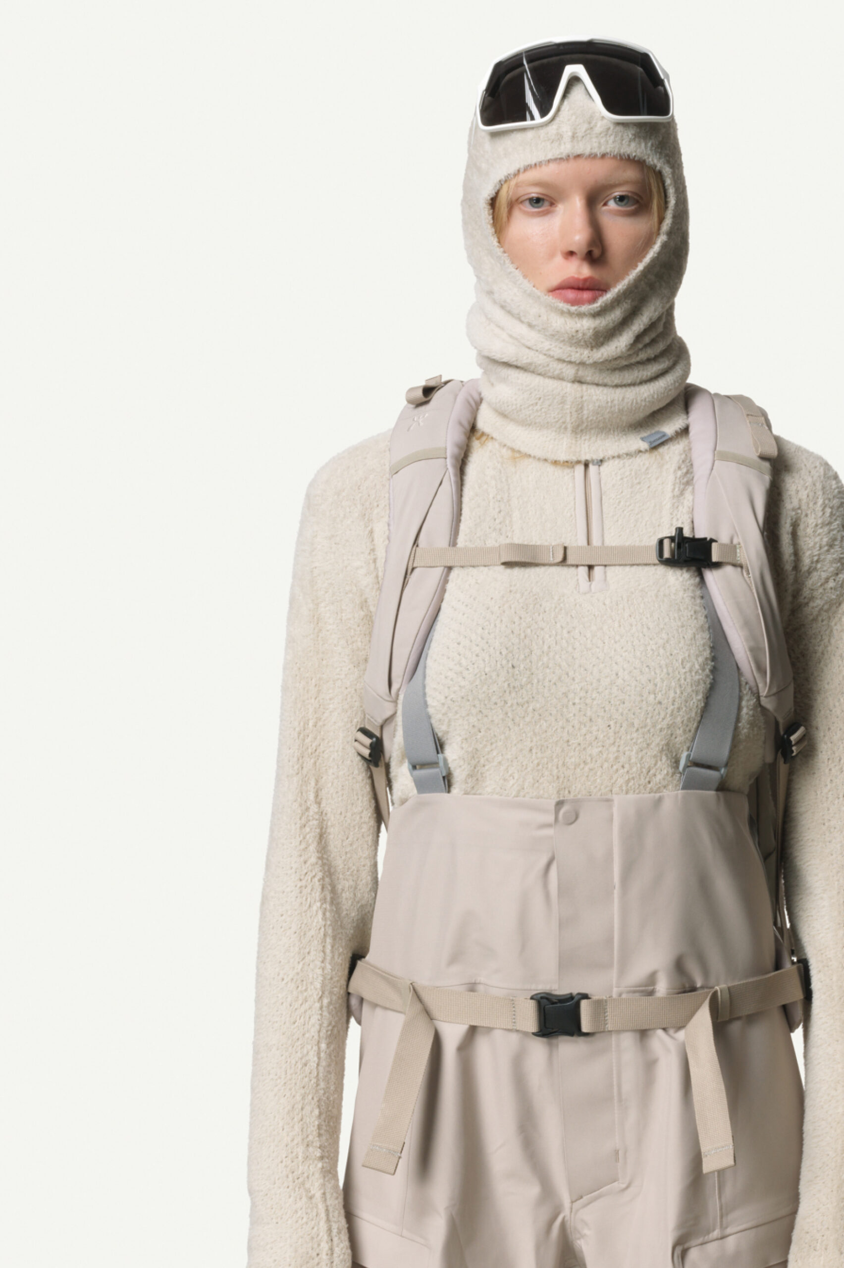 Allt 背包源于至简哲学:少即是多。采用再生与全可回收材料制作,既守护自然,亦无畏荒野。本系列涵盖两款配色,部落蓝与沙尘灰,适配多种风格造型;并分别推出 20L 与 30L 容量以应对不同储物需求。包体采用德国 Dimension–PolyantRX36 防水技术,由再生聚酯纤维布打造 3 层环保防水结构。