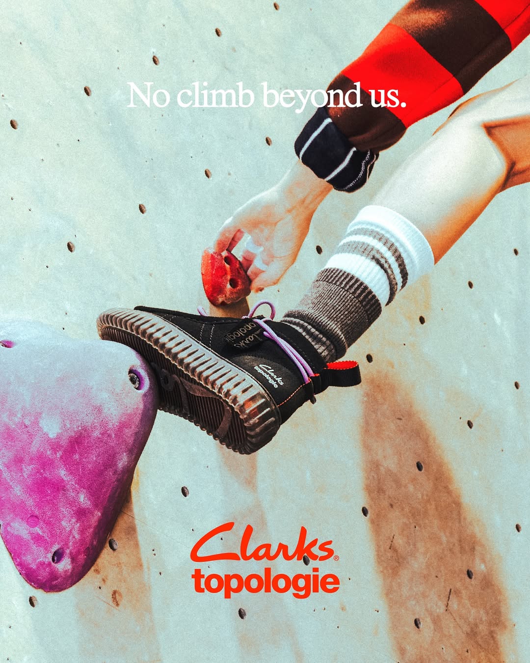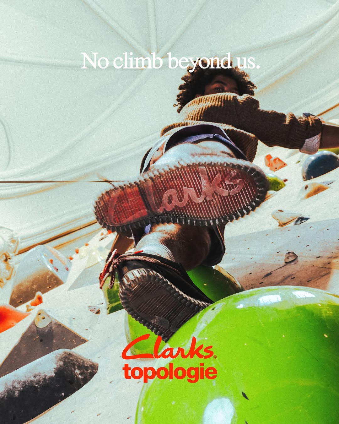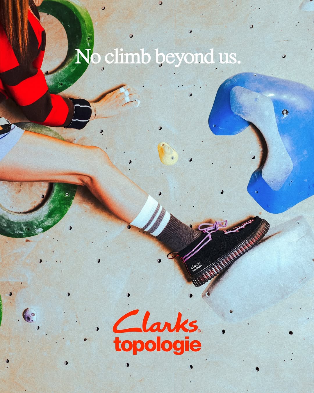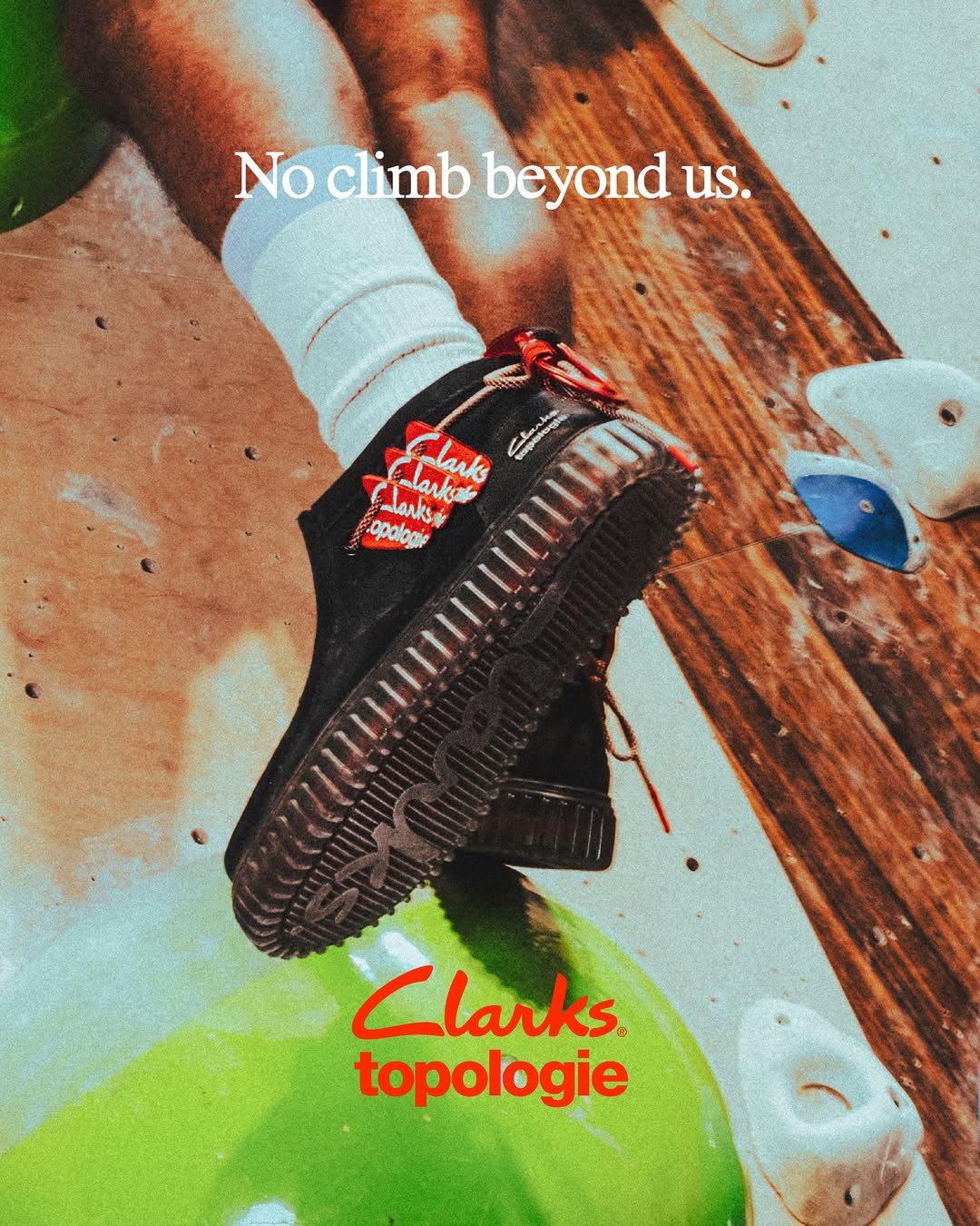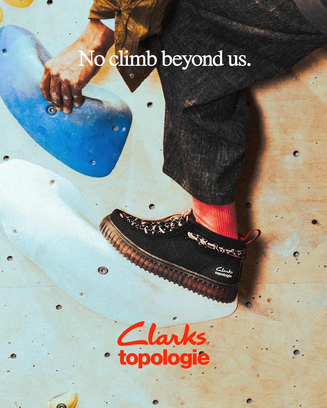 Topologie 与 Clarks Originals 正式发布基于 Torhill Hi 的全新联名鞋款,以「No Climb Beyond Us」为主题,将 Clarks 的英式制鞋工艺与 Topologie 受攀岩运动启发的极简功能美学相结合,呈现一双兼具都市风格与户外精神的当代鞋履。 鞋款延续 Clarks 经典 Torhill 鞋底设计,融入 Topologie 的现代语汇,采用黑色高级麂皮鞋面搭配 Contour Cushion 鞋垫,提供舒适的脚感体验;灵感源自登山鞋的 ghillie 系带系统确保稳固贴合,并附带三组可替换鞋带,让穿着者可根据不同场合自由切换风格。鞋身细节如侧后跟拉环与联名登山扣饰,皆呼应 Topologie 的攀岩设计基因。目前该鞋款已登陆合作双方指定门店及线上渠道,感兴趣的朋友不妨前去选购。