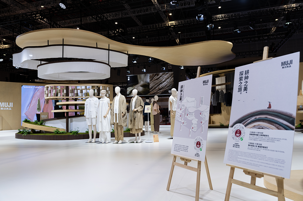 在进博会期间,MUJI 带来全球首发的包括设计师合作款在内的 2026 年春夏汉麻新品系列。该系列采用中国黑龙江省种植的汉麻,并在绥化市青冈县加工成纱线,赋能当地的经济发展。今年,MUJI 举办了「自然出新裁」的汉麻新生力设计大赛,旨在挖掘汉麻这一天然材质在可持续时尚领域的应用,推动中国本土设计力量的成长。本次大赛中的获奖设计作品,将成为量产的新品,于 26 年春夏以成衣形式正式上市,并作为「中国设计」于此次进博会首次亮相。