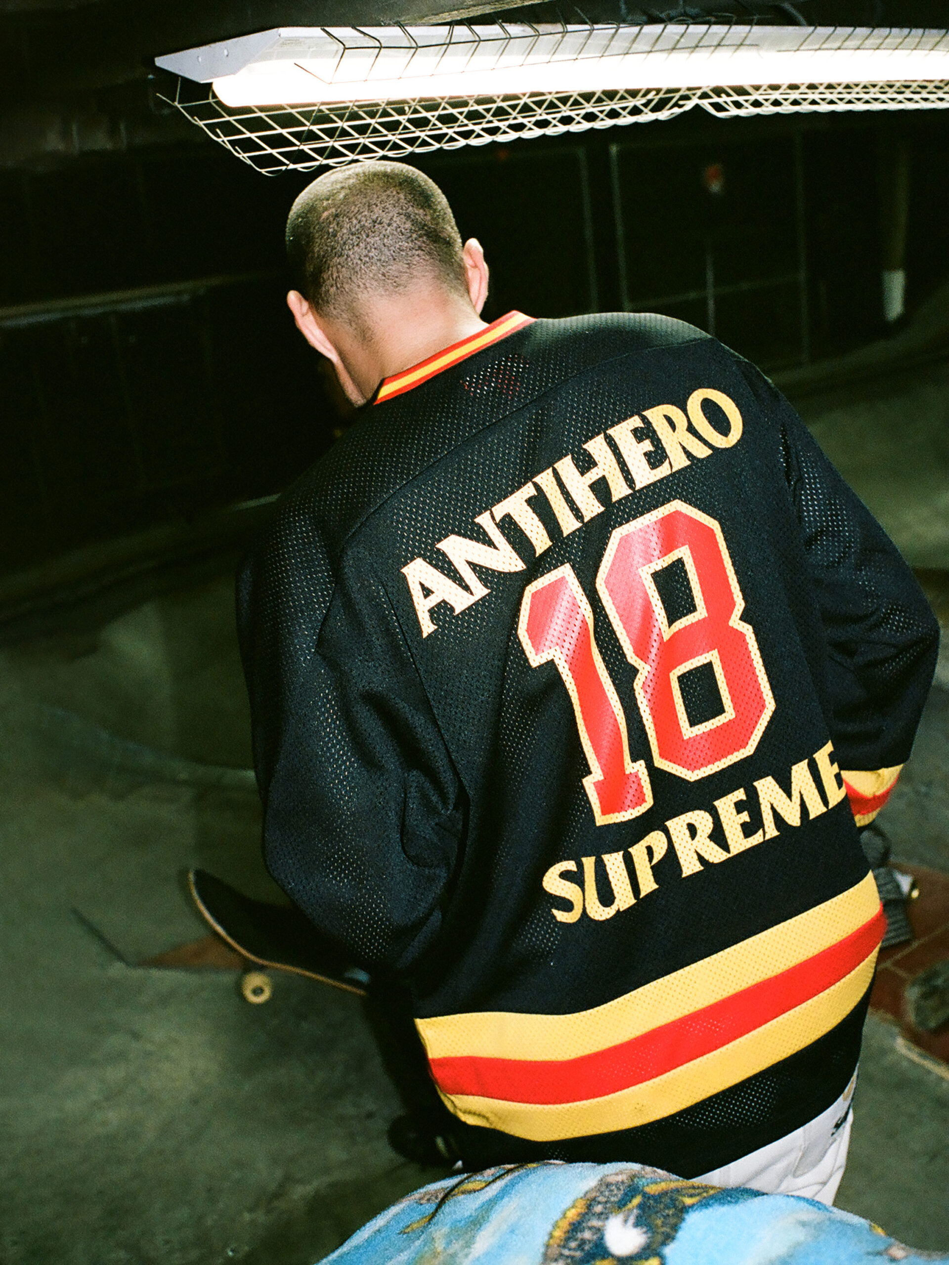 2025 年秋季,Supreme 与 ANTIHERO® 合作推出新系列。该系列包括运体育场夹克、抓绒夹克、毛衣、冰球球衣、连帽卫衣、工装裤、两款T恤、New Era® 棒球帽及滑板。据悉,Supreme x ANTIHERO® 系列将于 11 月 15 日于上海店铺,微信小程序和亚太其他店铺及线上发售,感兴趣的朋友不妨保持关注。