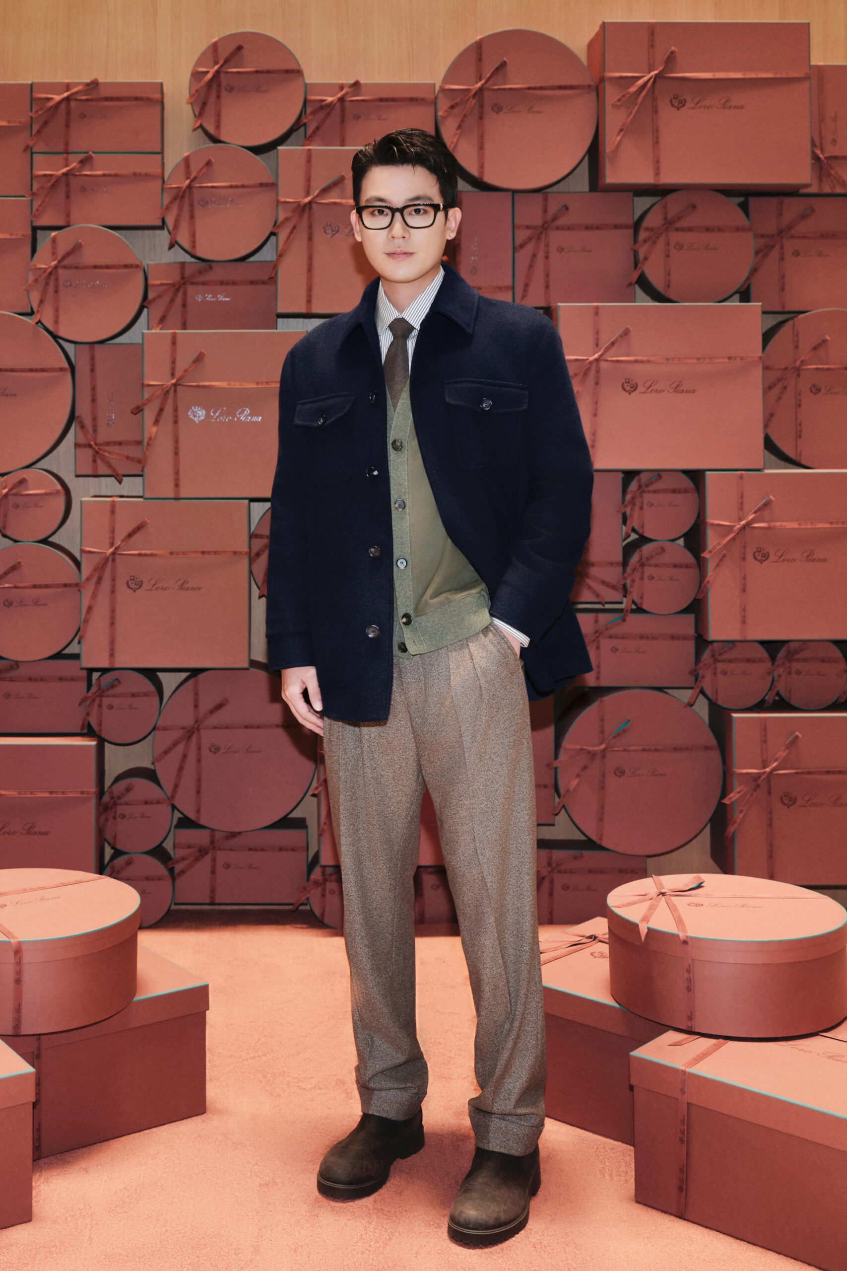 Loro Piana 于上海国金中心启幕 2025 假日系列限时体验店。11 月 7 日,品牌为本次限时体验店举办开幕活动。演员欧豪、章若楠均身穿 2025 假日系列服饰,惊喜亮相开幕活动现场。欧豪身穿藏青色羊绒卡班外套、墨绿色羊绒开衫及条纹衬衫,搭配羊毛羊绒混纺长裤,挺阔造型尽显绅士格调;章若楠身穿墨绿色羊绒针织衫及同色系罗纹羊绒半裙,搭配浅乳香色 Needle 小号手袋,清新灵动气质扑面而来。