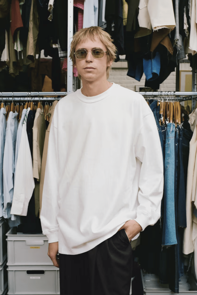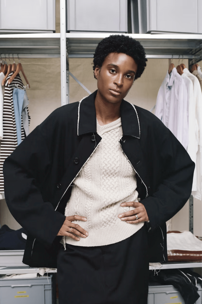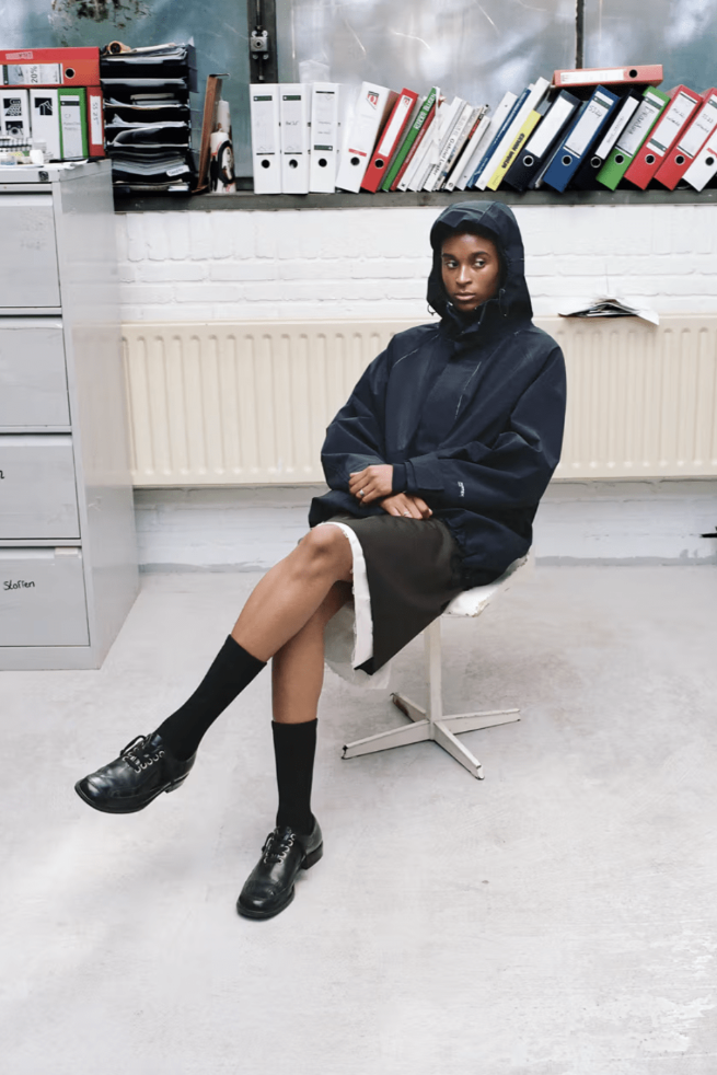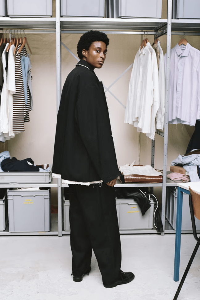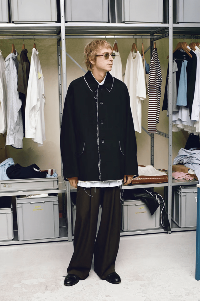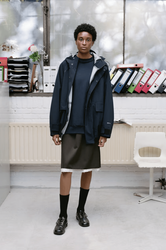 在 Graphpaper 成立 10 周年之际,该品牌携手阿姆斯特丹设计师品牌 Camiel Fortgens 推出了一个包含八件单品的胶囊系列。双方将日本的精准工艺与 Camiel Fortgens 标志性的解构风格融合,对 Graphpaper 的 BASIC 系列及典藏单品进行了重新设计:为其简洁的廓形注入了毛边、不规则缝线和外露内衬等元素。亮点包括一件以三层 Pertex 面料制成的冲锋衣——内缝采用压胶工艺,外缝则略微破损;饰以白色原色内衬的黑色外套;以及采用了不对称纽扣袢设计的厨师裤。