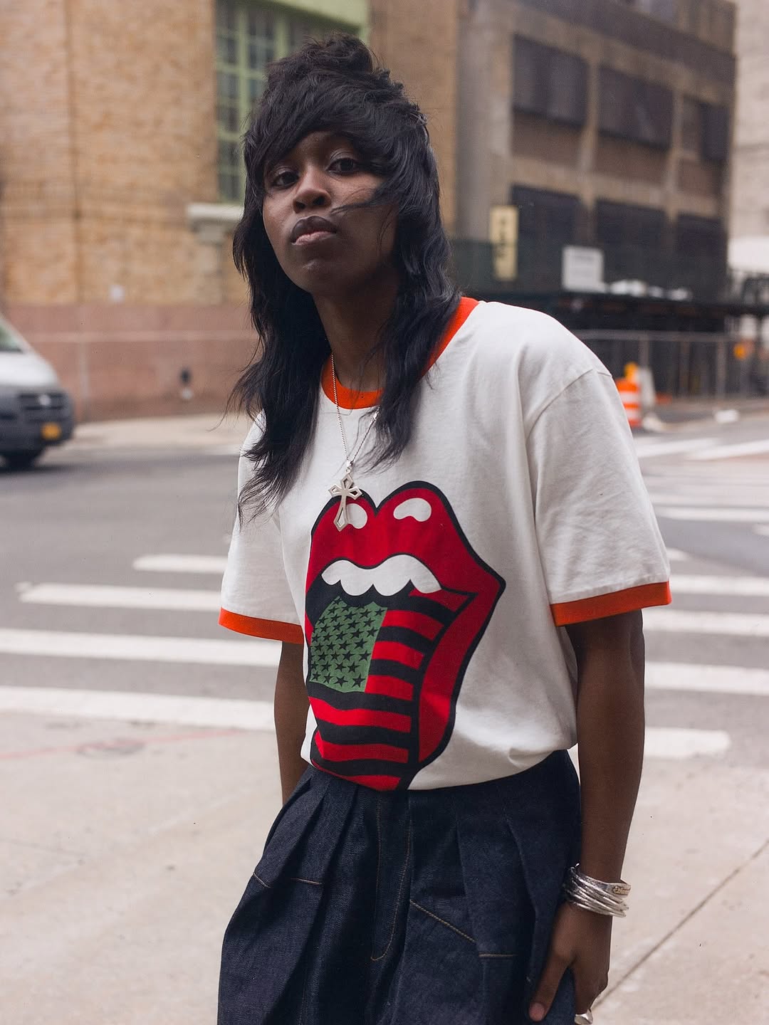 嘴唇图案被 Denim Tears 经典的「西瓜星条旗」进行重新渲染。